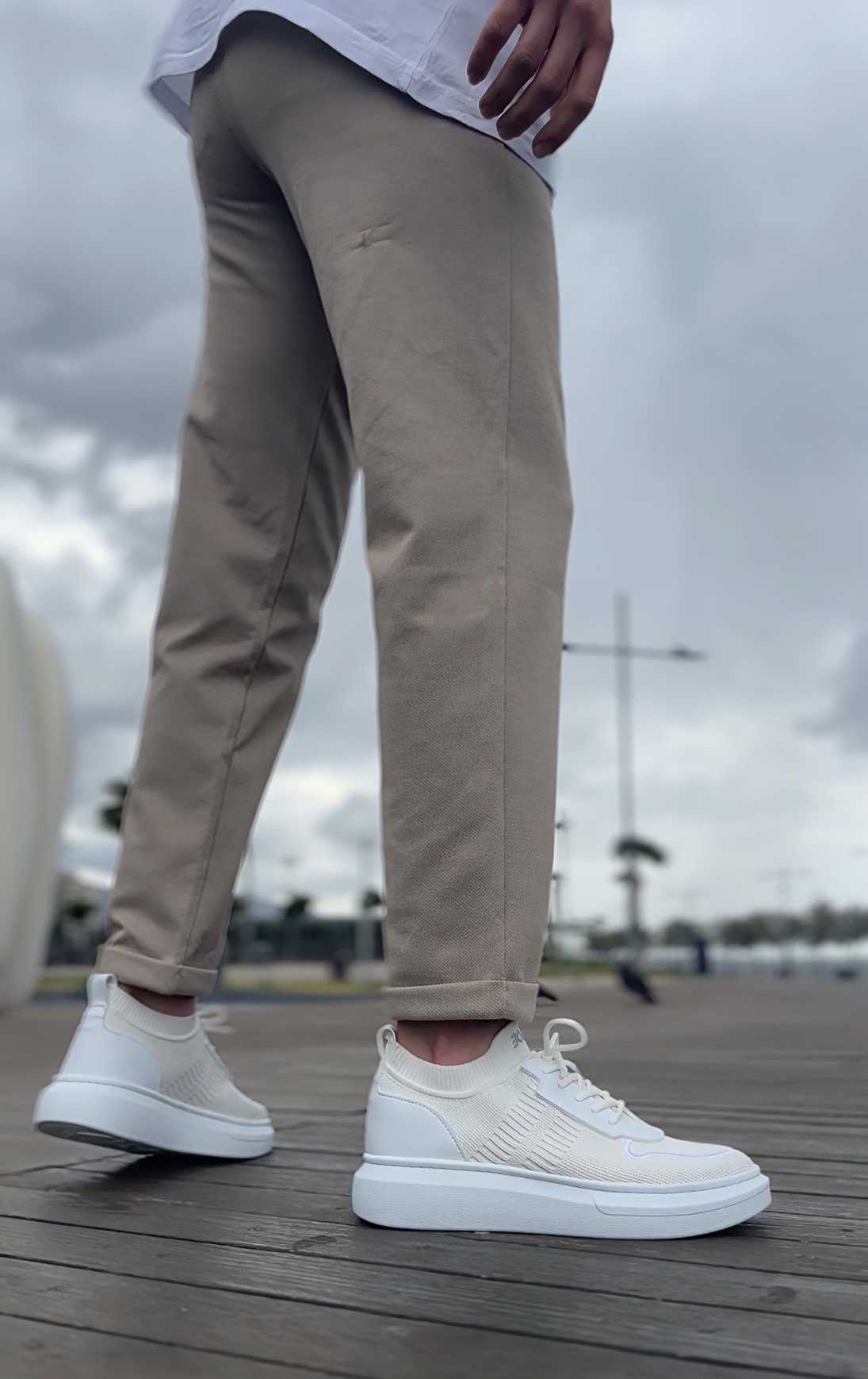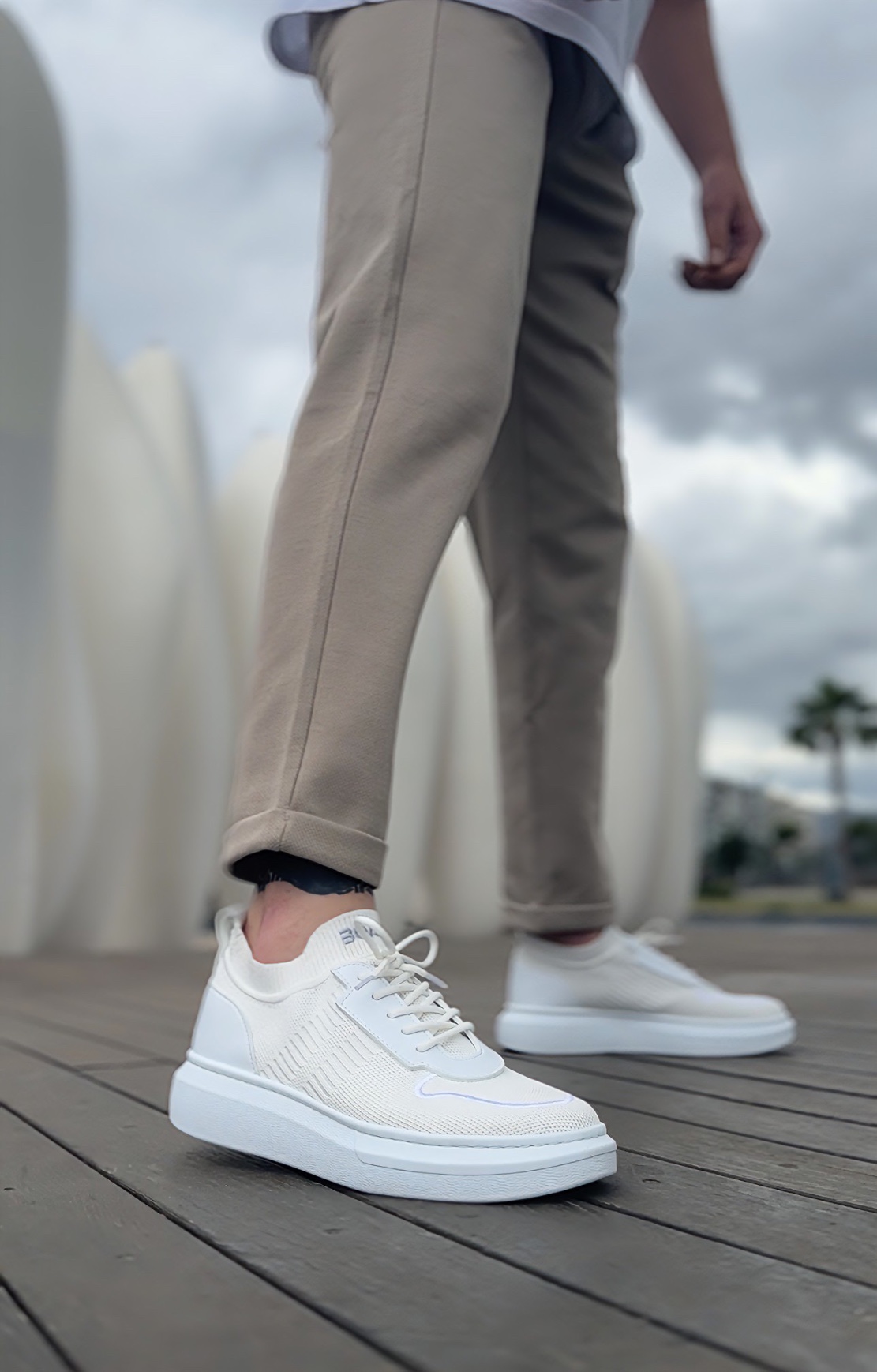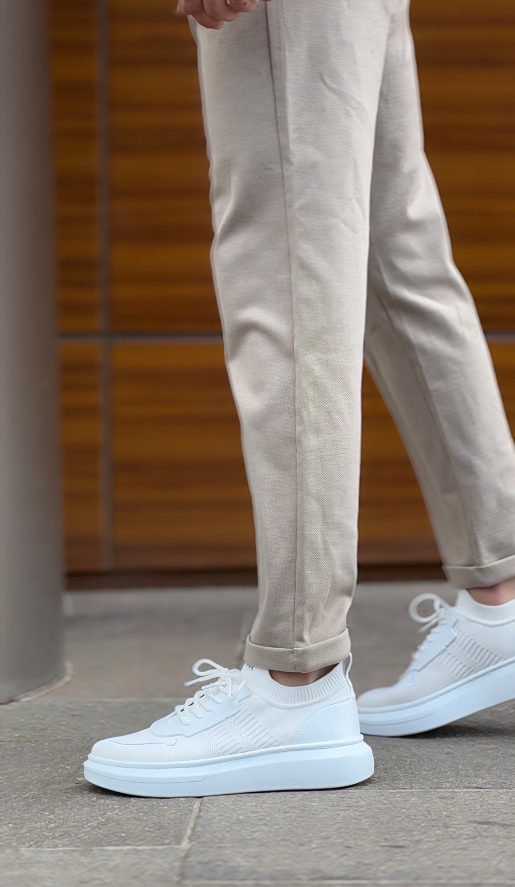 Tugerdi Beyaz Özel Örme Triko Beyaz Hafif Taban Tarz Erkek Spor Ayakkabı TGE230962