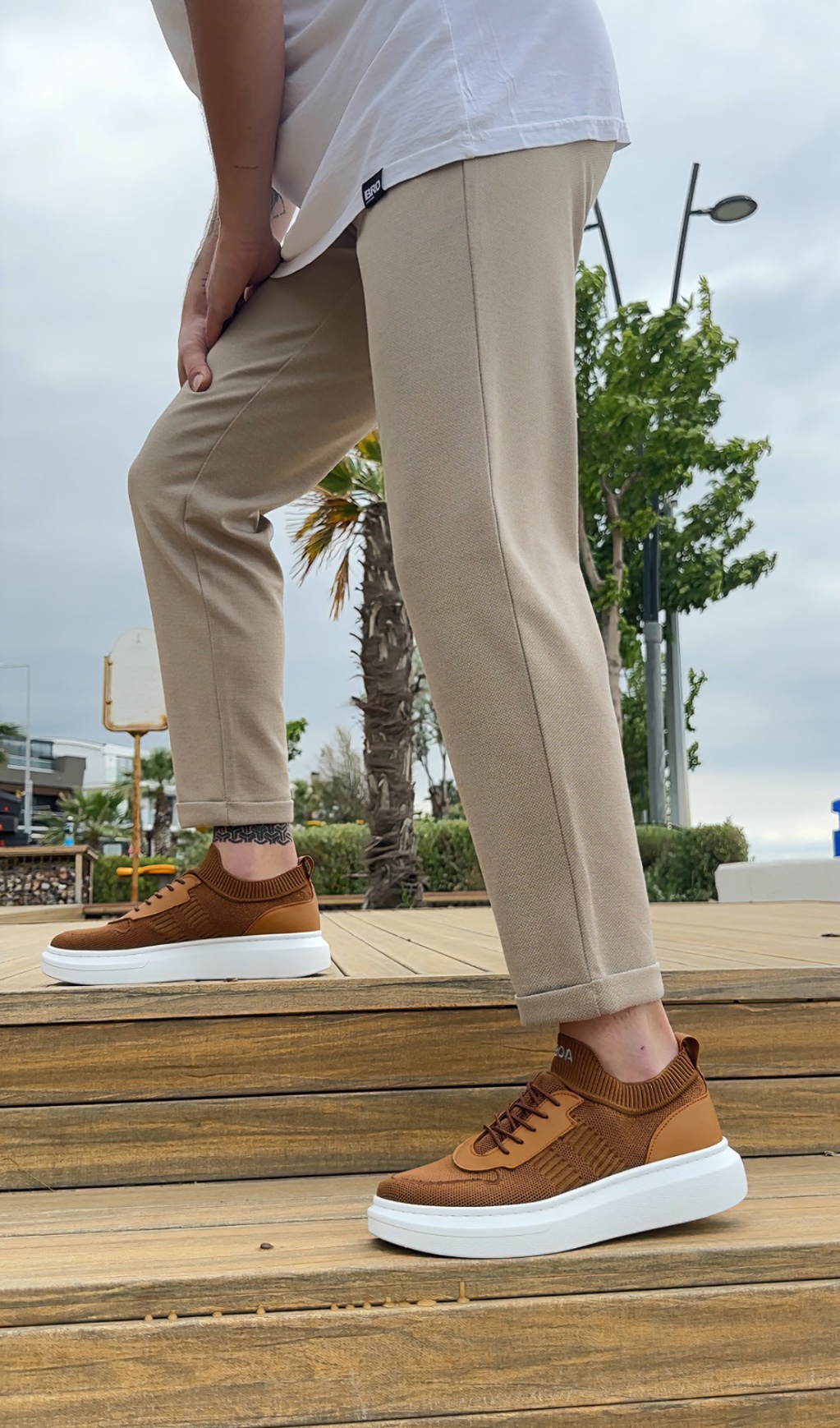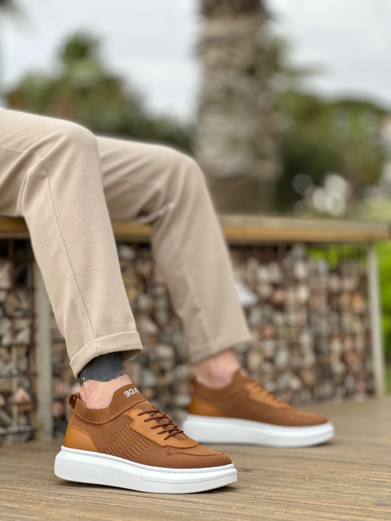 Tugerdi Taba Özel Örme Triko Bağcıklı Tarz Erkek Spor Ayakkabı TGE230962