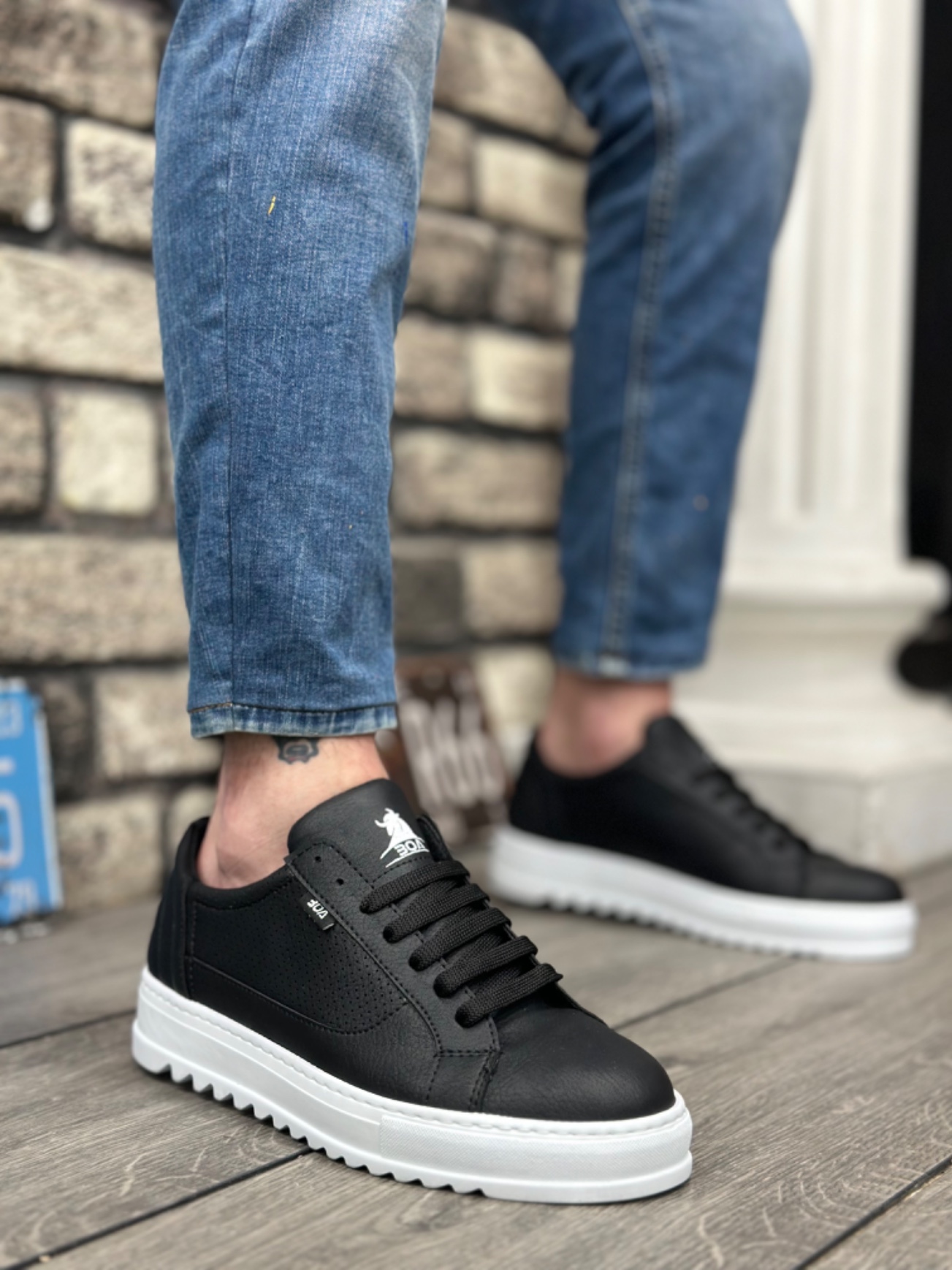 • Tugerdi Siyah Bağcıklı Kalın Tırtık Yüksek Beyaz Taban Erkek Spor Ayakkabı TGE06006473
