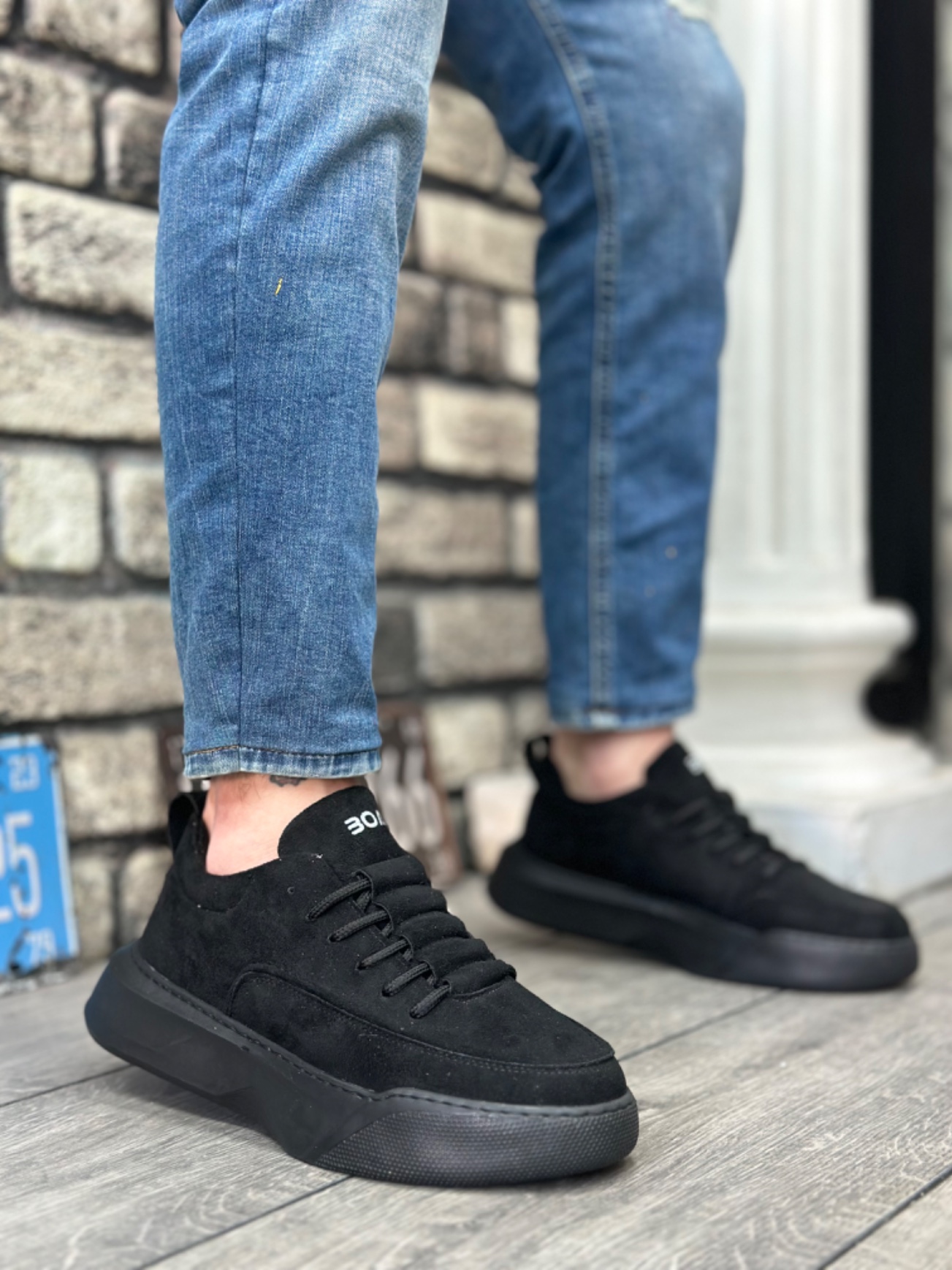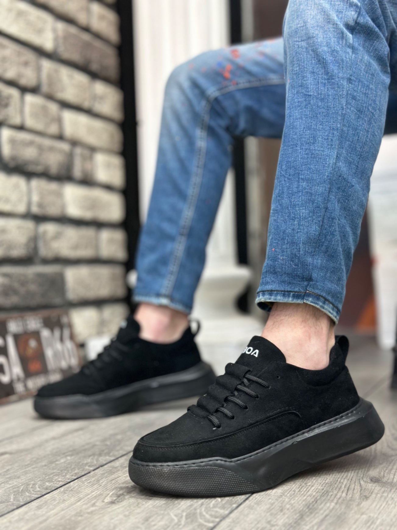 Tugerdi Siyah Süet Bağcıklı Merdiven Desenli Yüksek Taban Erkek Spor Ayakkabı TGE06006482