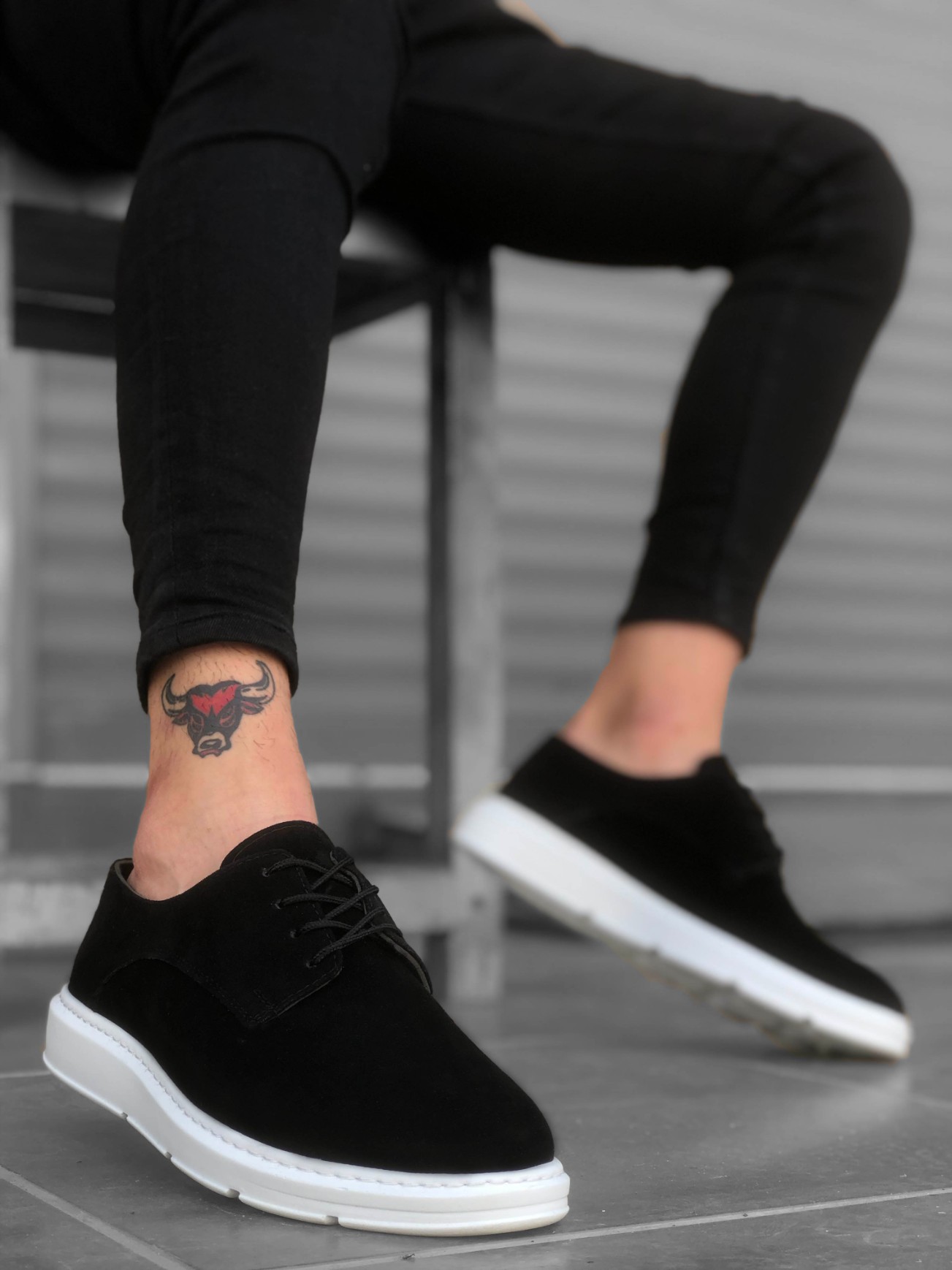 • Tugerdi Siyah Süet Bağcıklı Beyaz Yüksek Taban Klasik Günlük Erkek Ayakkabı TGE230153