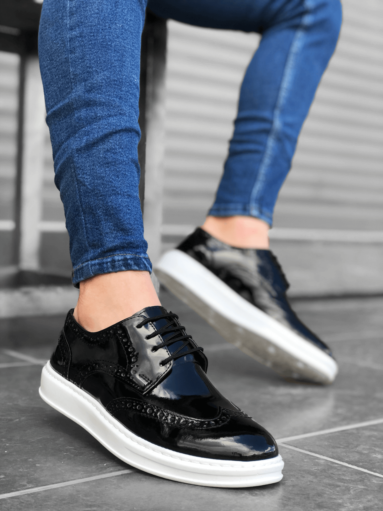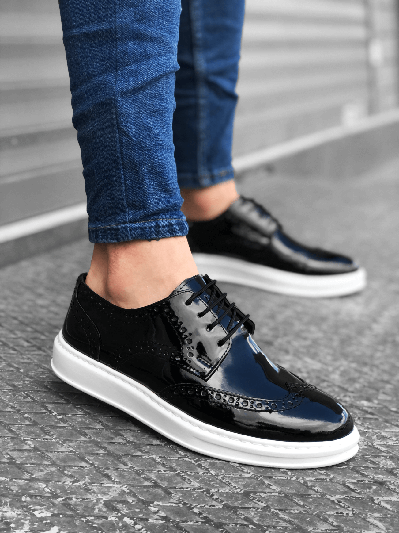 Tugerdi SiyahRugan Bağcıklı Beyaz Yüksek Taban Klasik Günlük Ayakkabı TGE06006153