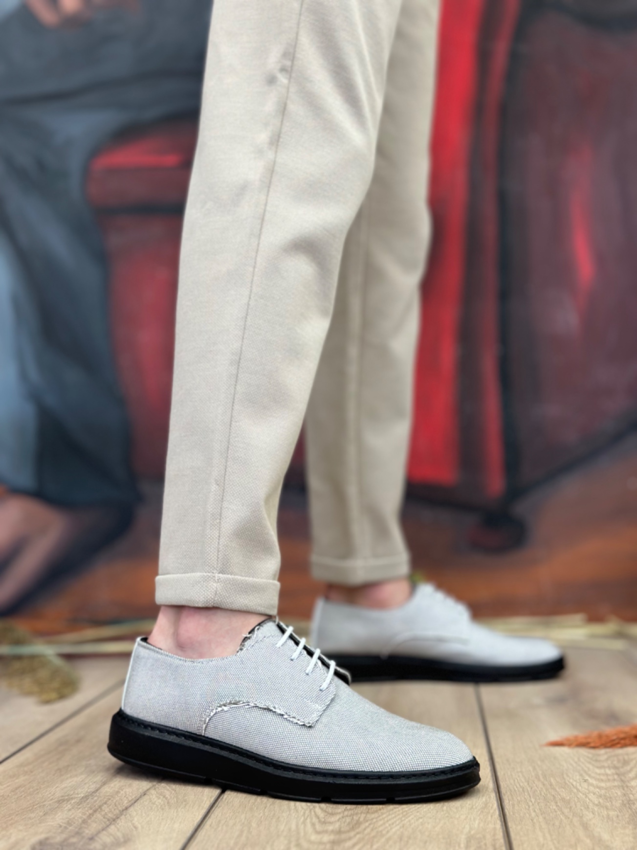 • Tugerdi Gri Keten Bağcıklı Siyah Yüksek Taban Klasik Erkek Günlük Ayakkabı TGE230153