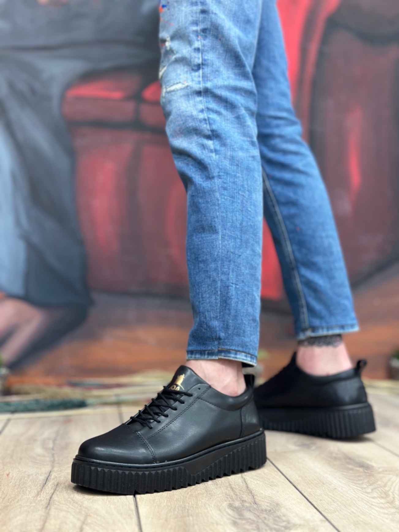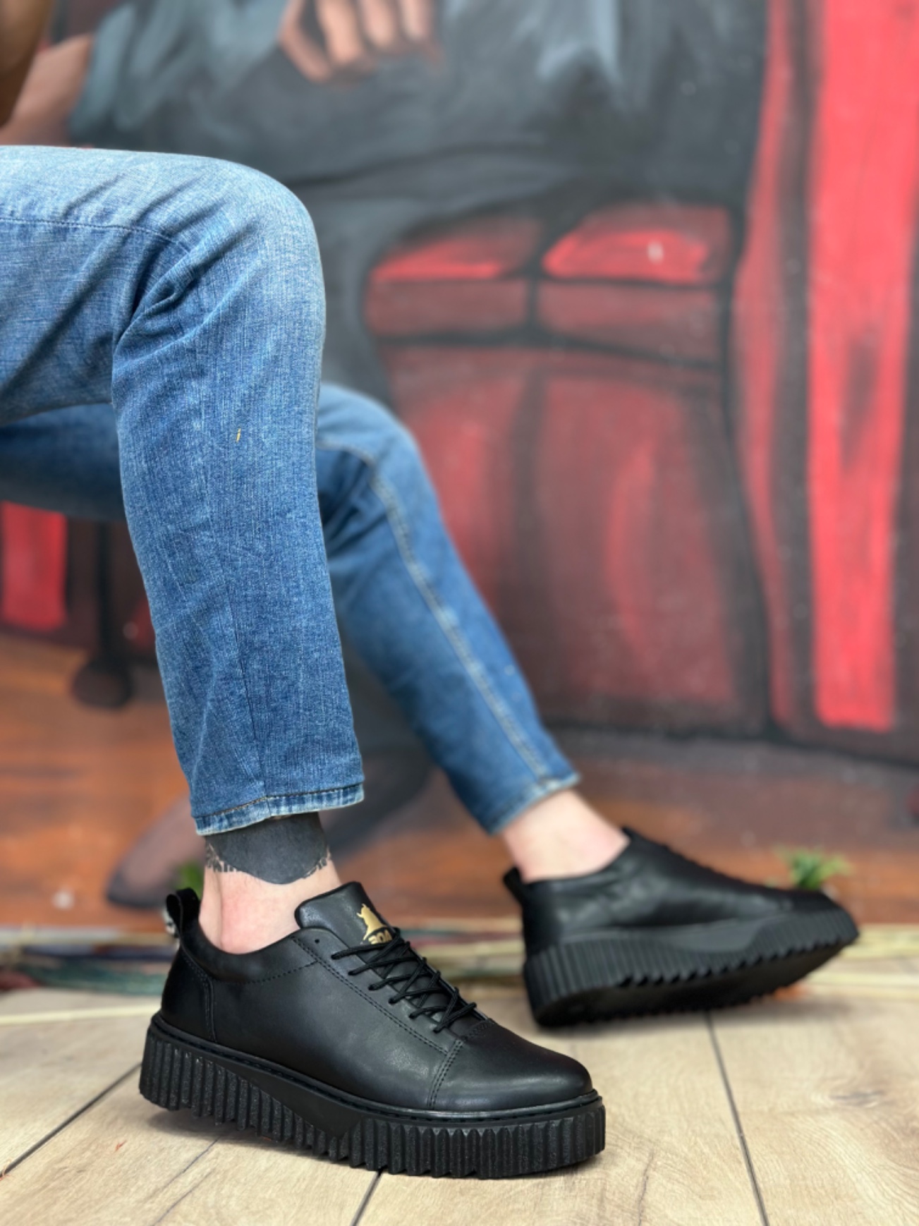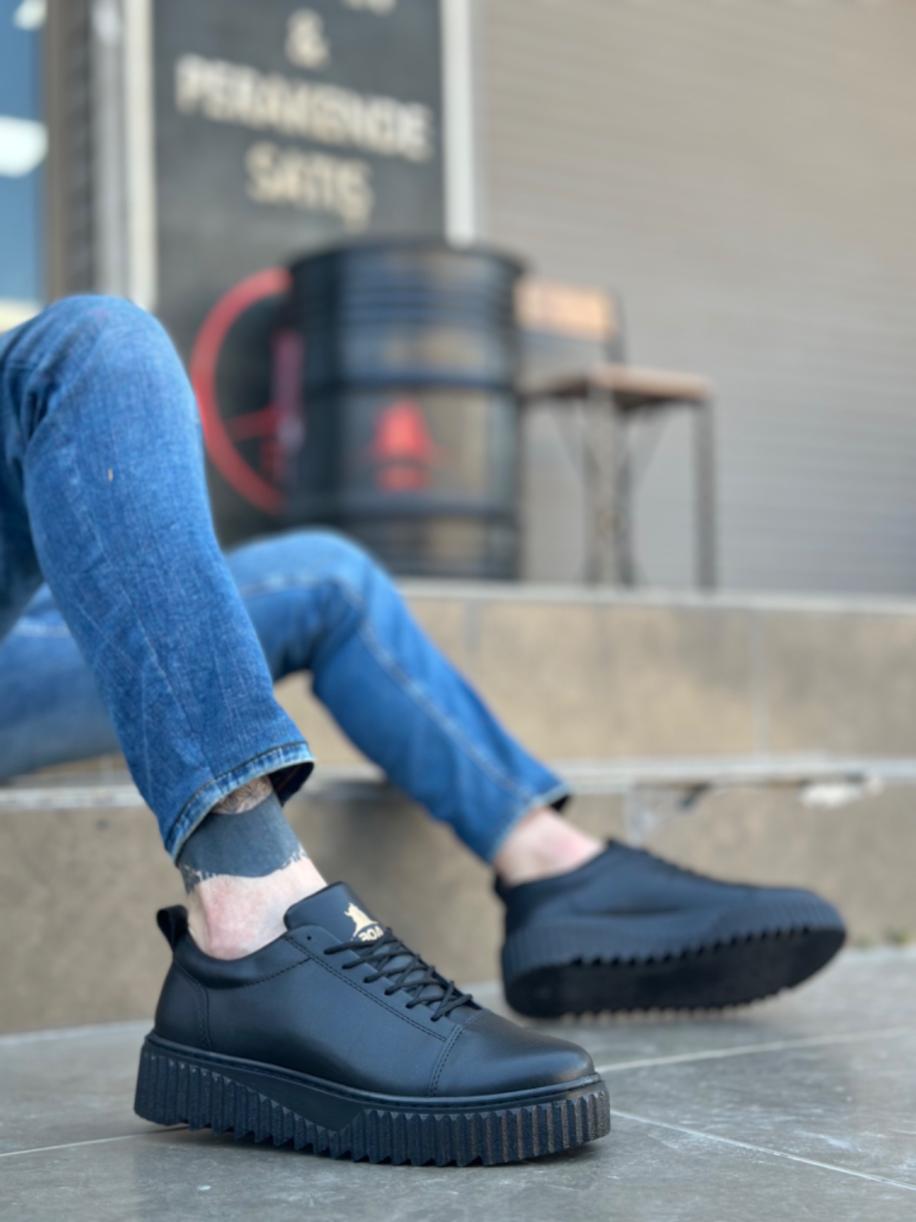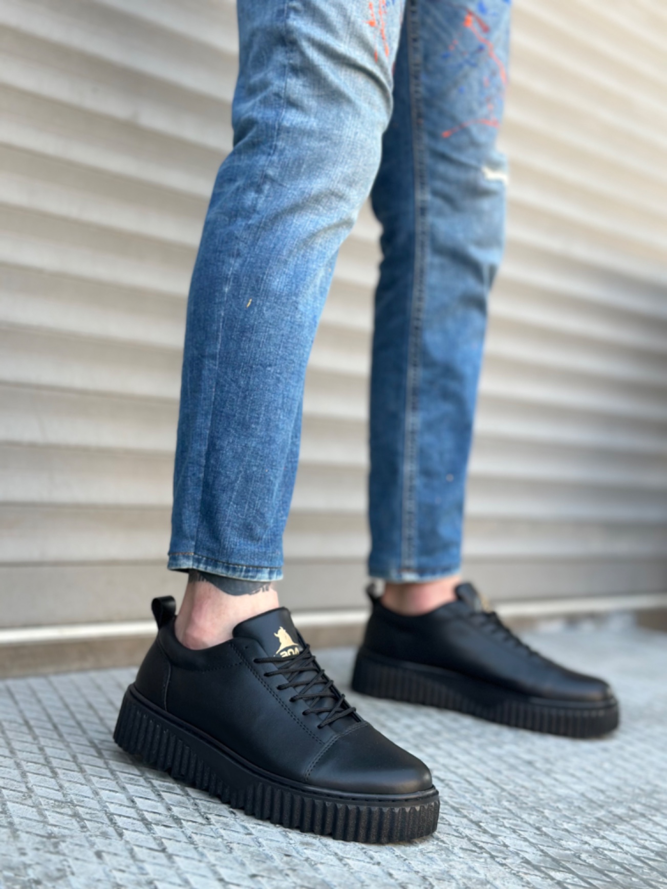 • Tugerdi Siyah Bağcıklı Yüksek Siyah Taban Tarz Erkek Ayakkabı TGE2308254