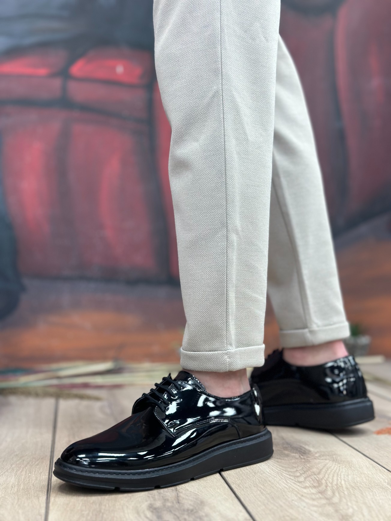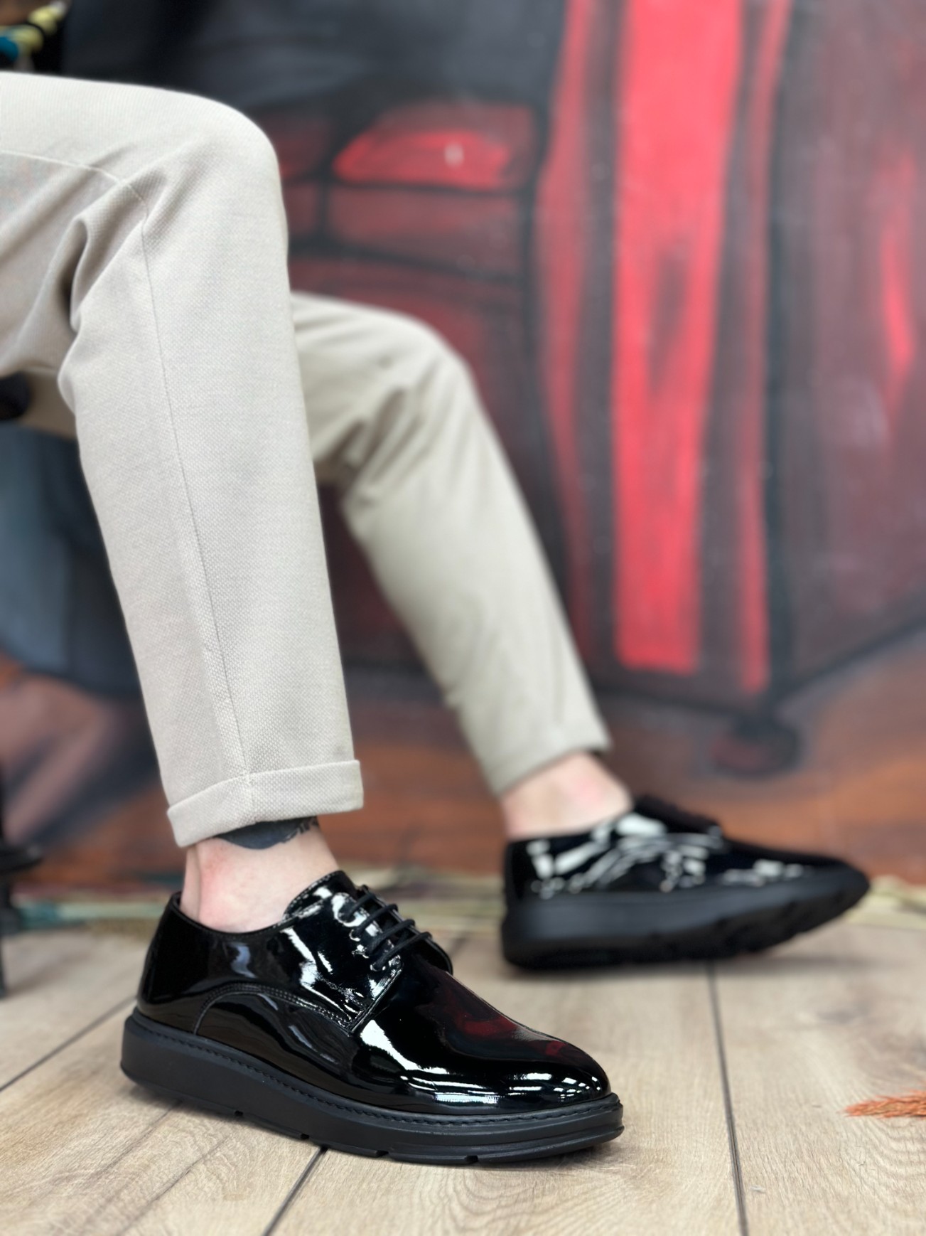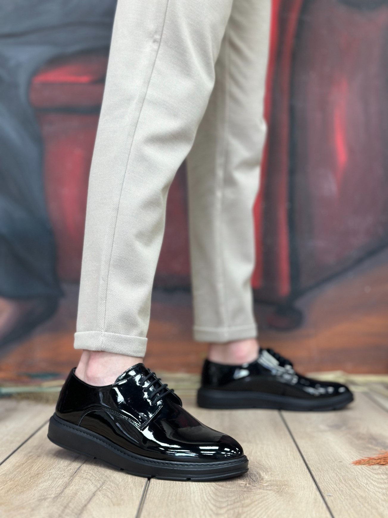 Tugerdi Siyah Rugan Bağcıklı Siyah Yüksek Taban Klasik Günlük Erkek Ayakkabı TGE230603