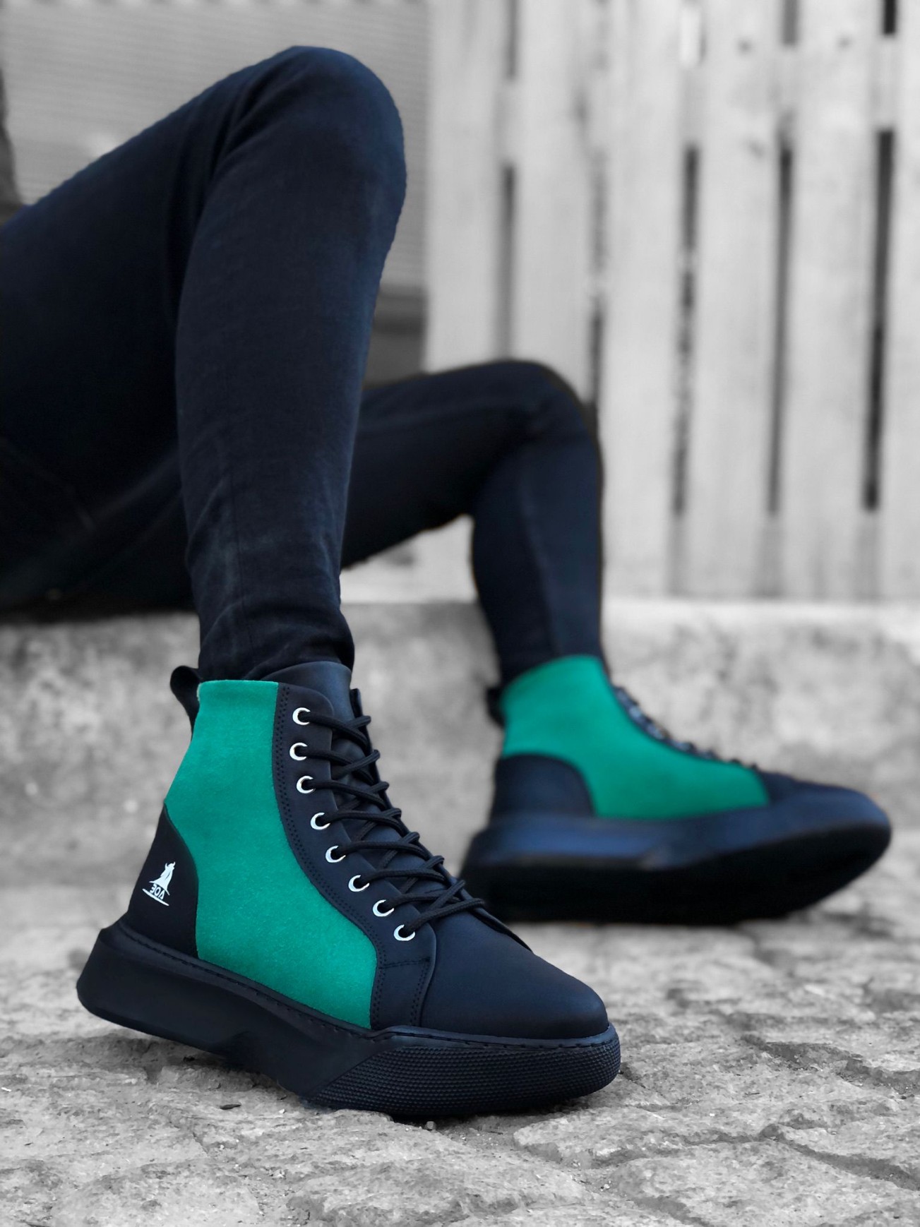 • Tugerdi Siyah Yeşil Bağcıklı Yüksek Taban Tarz Erkek Spor Bot TGE230756