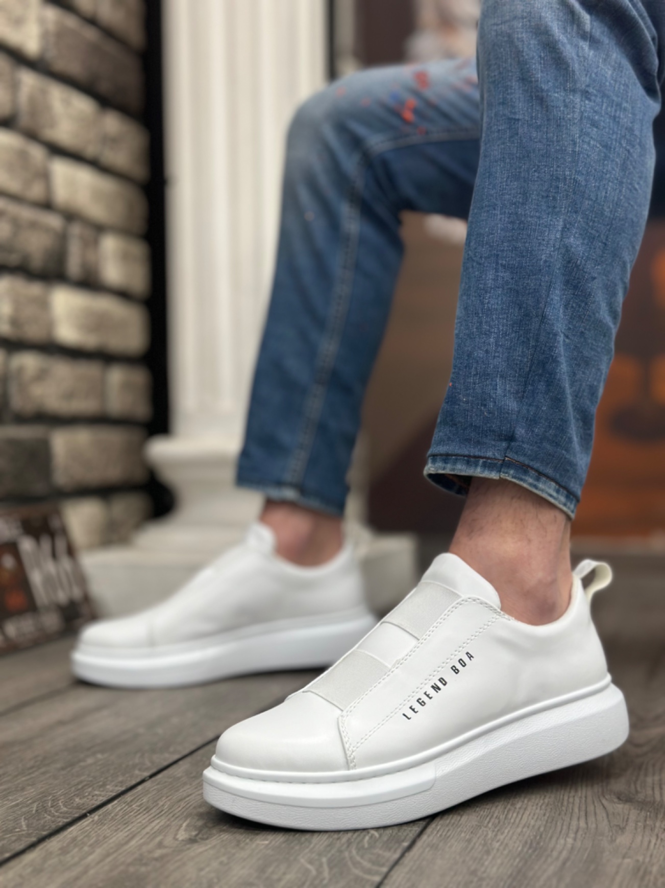 • Tugerdi Beyaz Çift Bant Kalın Yüksek Taban Tarz Erkek Ayakkabı TGE230754