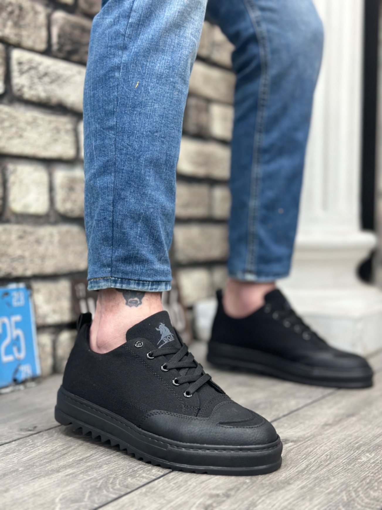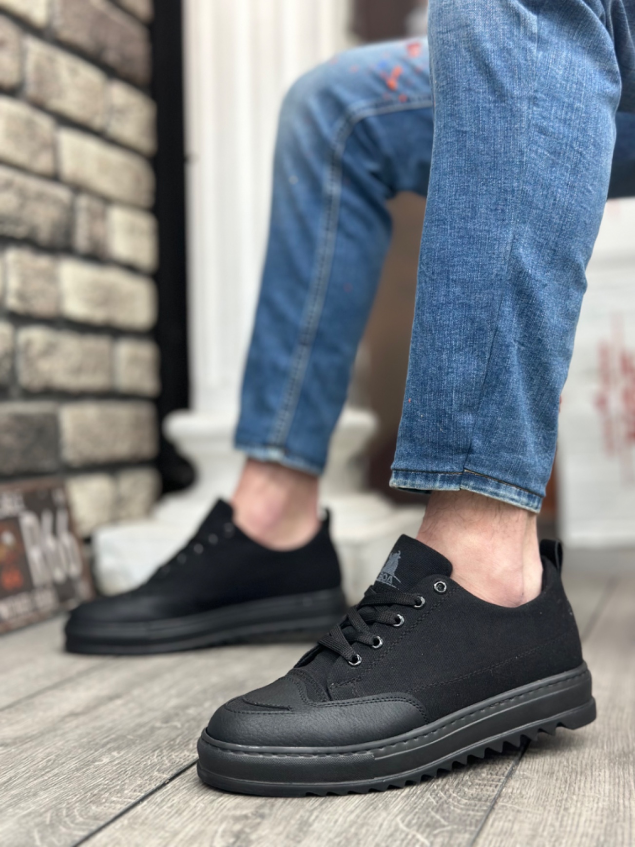 Tugerdi Siyah Smile Desenli Kalın Yüksek Taban Tarz Spor Erkek Ayakkabı TGE2301028