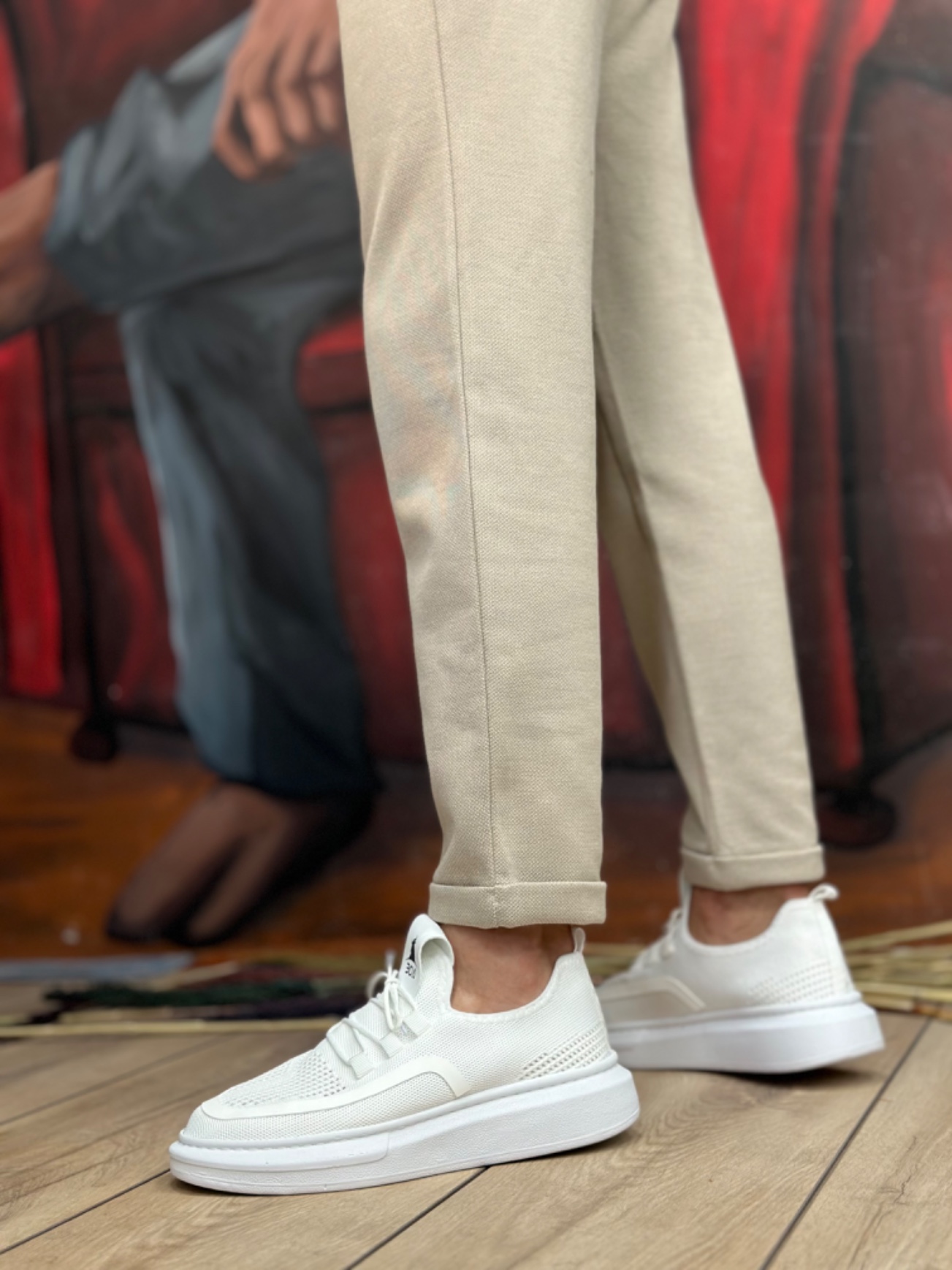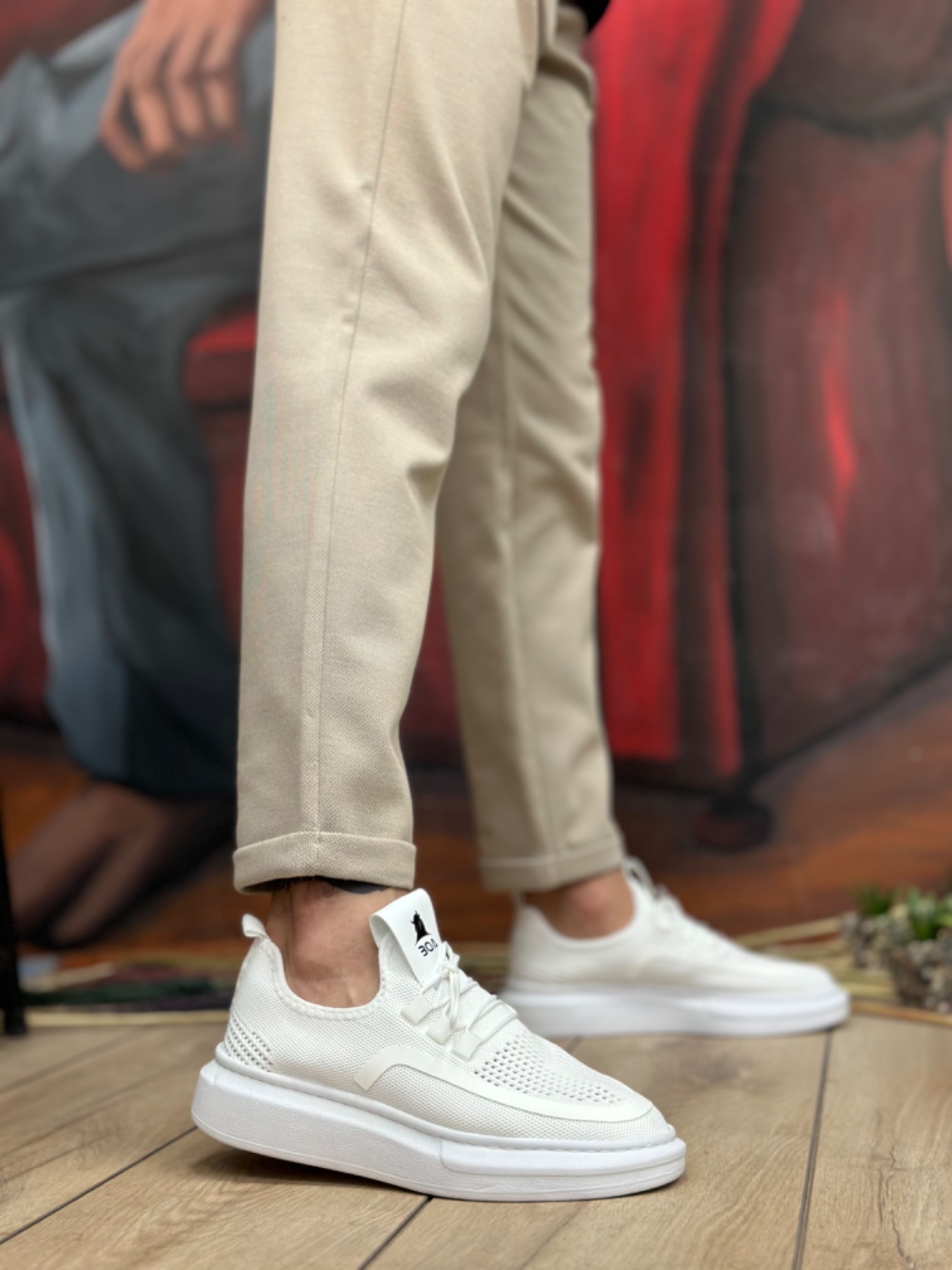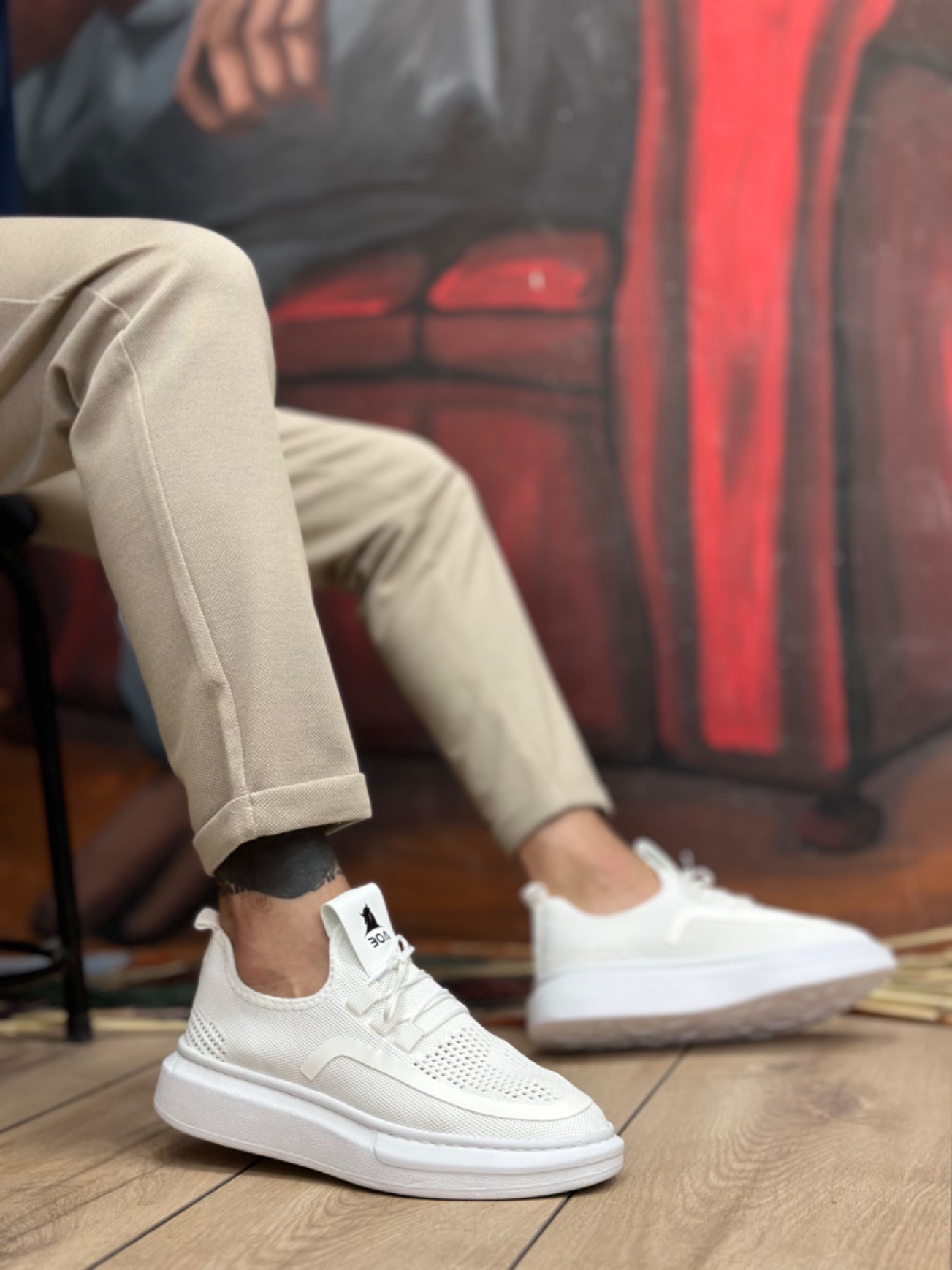 • Tugerdi Beyaz Özel Örme Triko Bağcıklı Beyaz Taban Tarz Spor Ayakkabı TGE230525