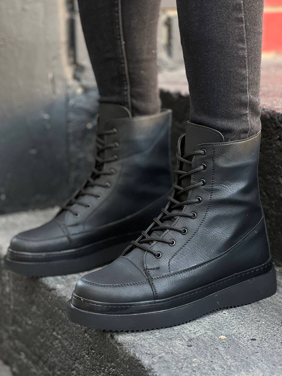 • Tugerdi Siyah Cilt Bağcıklı Siyah Yüksek Taban Tarz Erkek Postal Bot TGR2301141