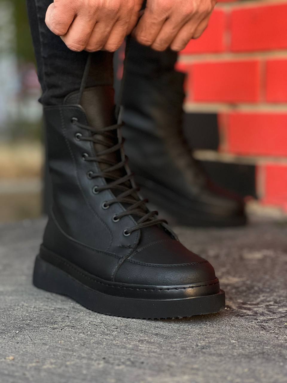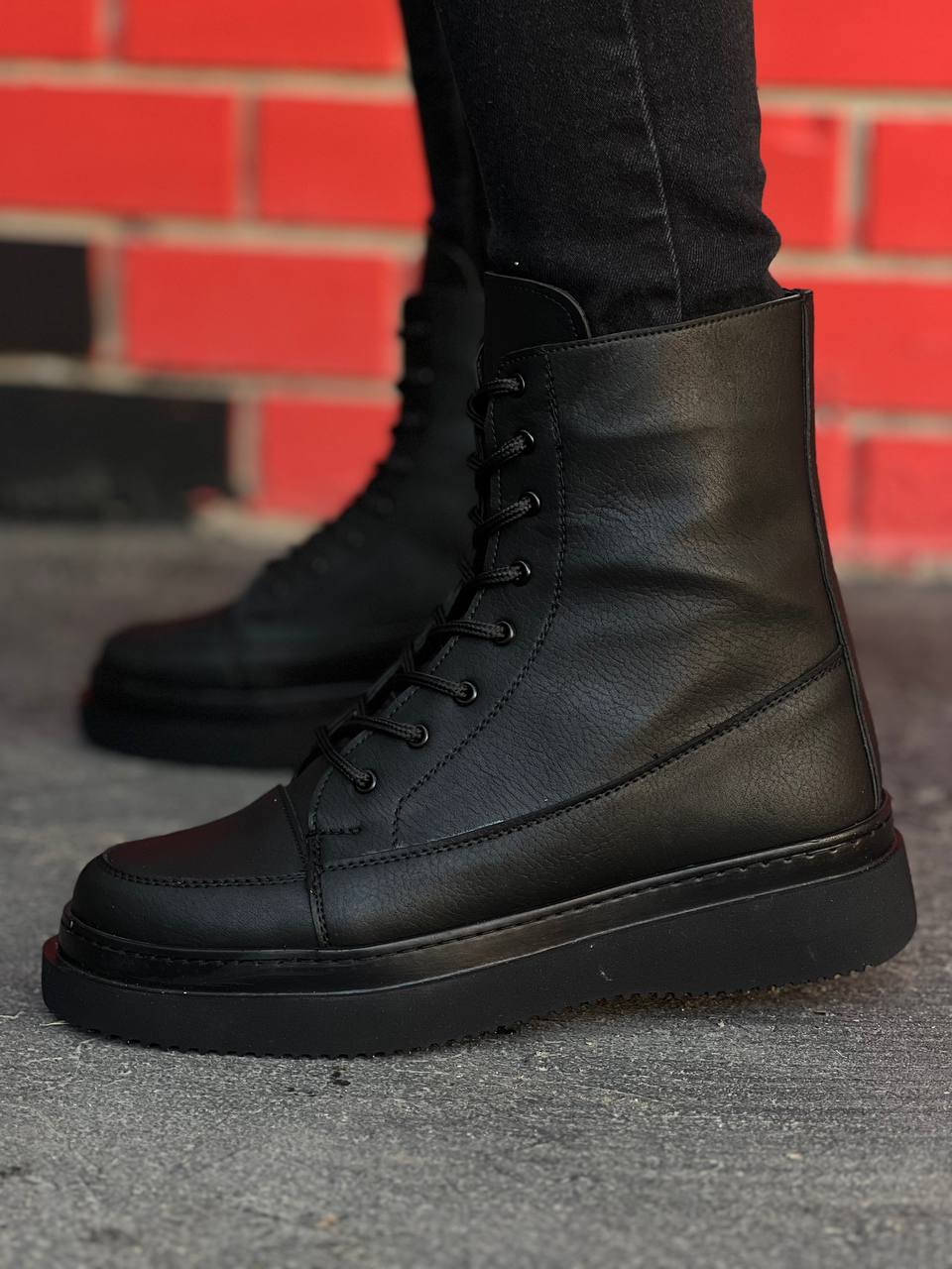 Tugerdi Siyah Cilt Bağcıklı Siyah Yüksek Taban Tarz Erkek Postal Bot TGR2301141
