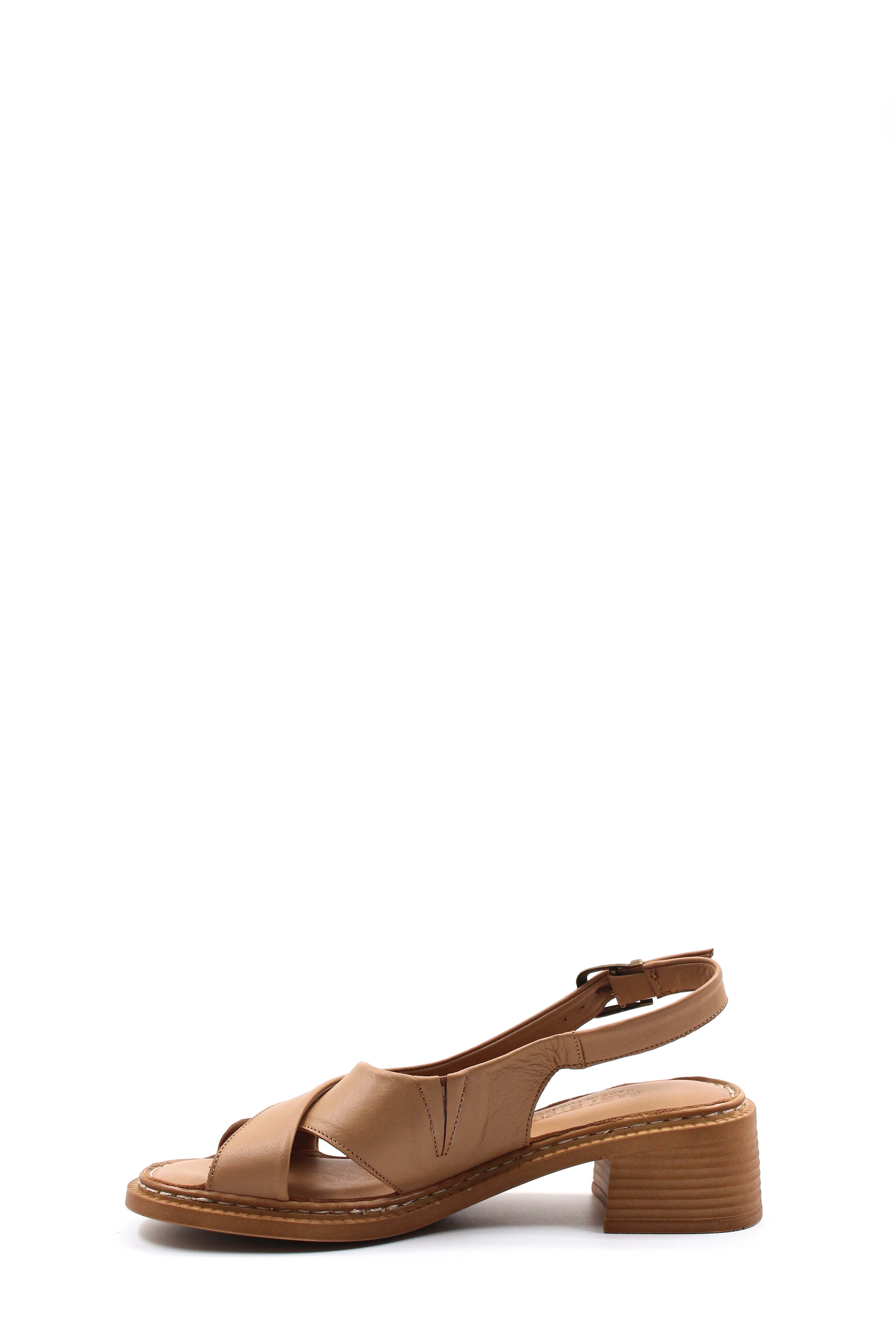 Tugerdi Cappuccino Hakiki Deri Yandan Kemerli Hafif Taban Kadın Sandalet TG096212611326