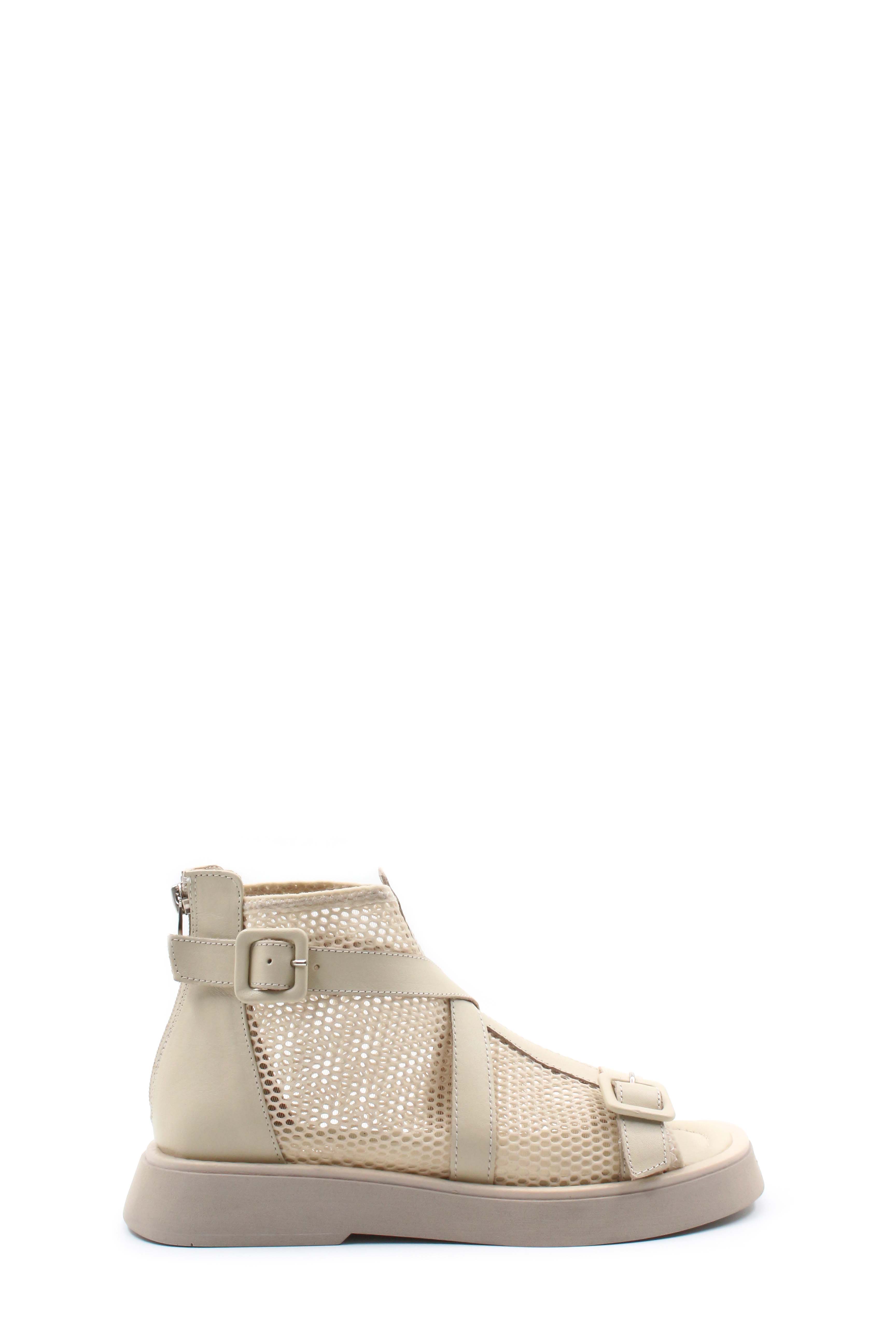 • Tugerdi Bej Hakiki Deri Hafif Taban Kemerli Kaliteli Kadın Sandalet TG09281261201183