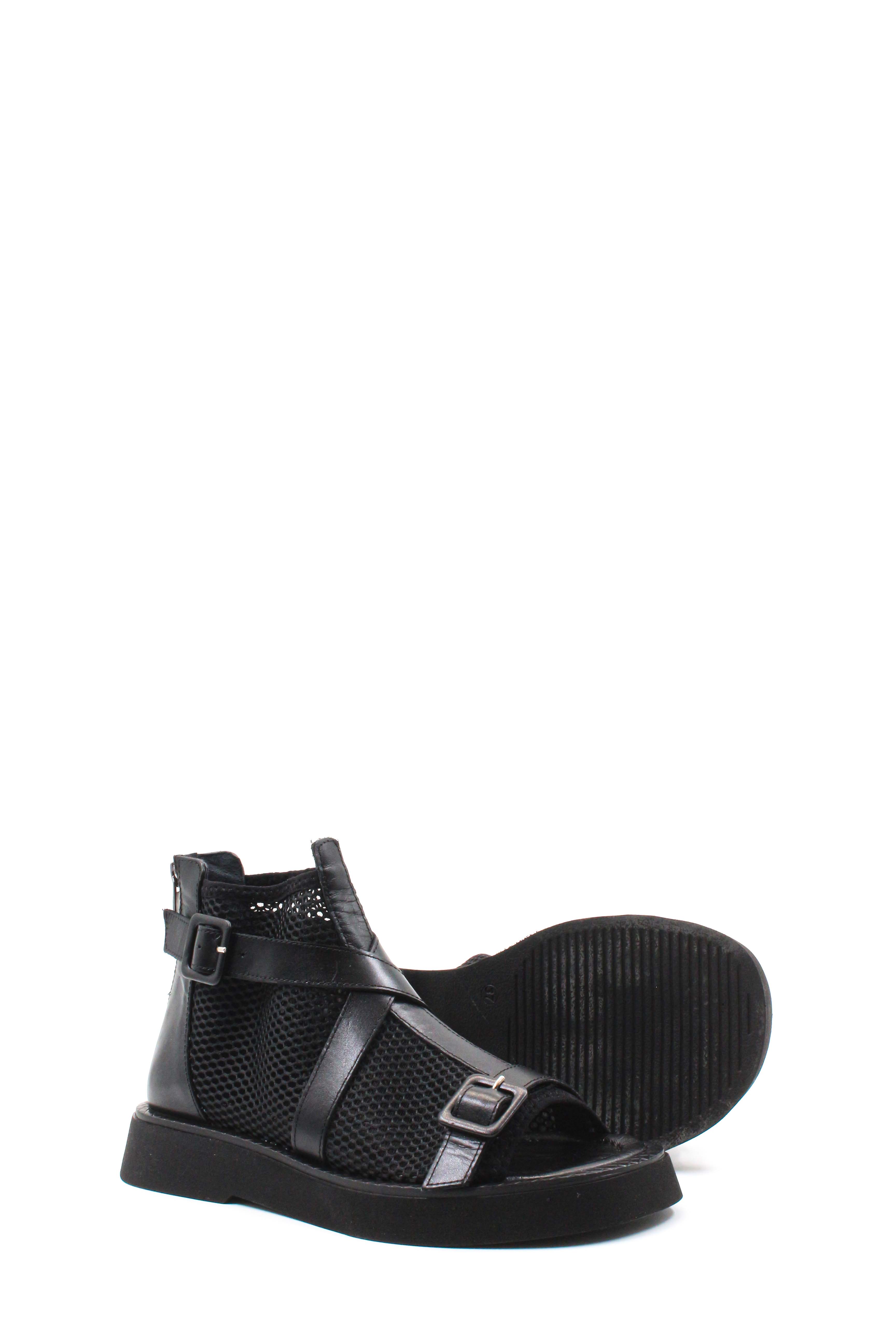 • Tugerdi Siyah Hakiki Deri Hafif Taban Kemerli Kaliteli Kadın Sandalet TG09281261201183