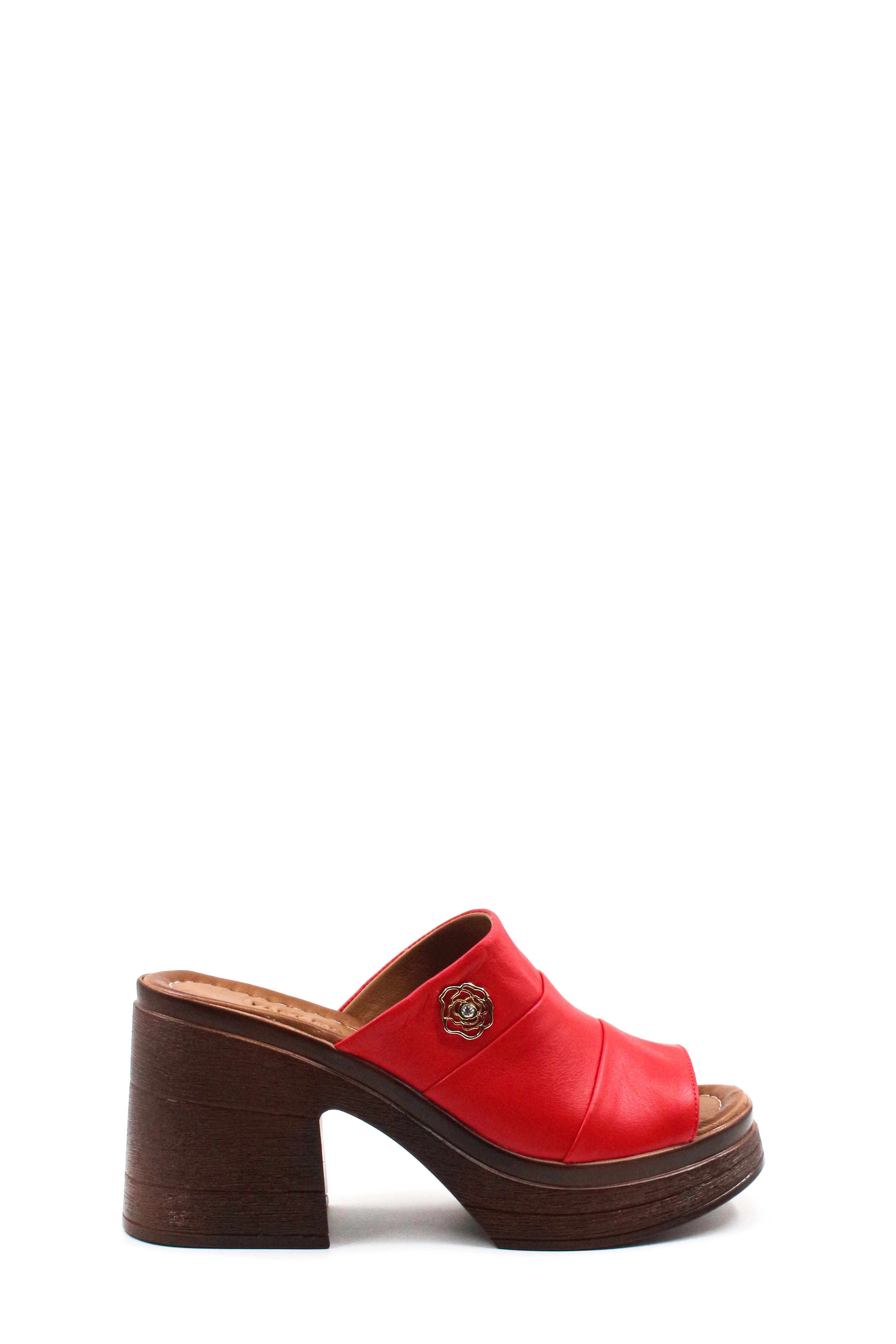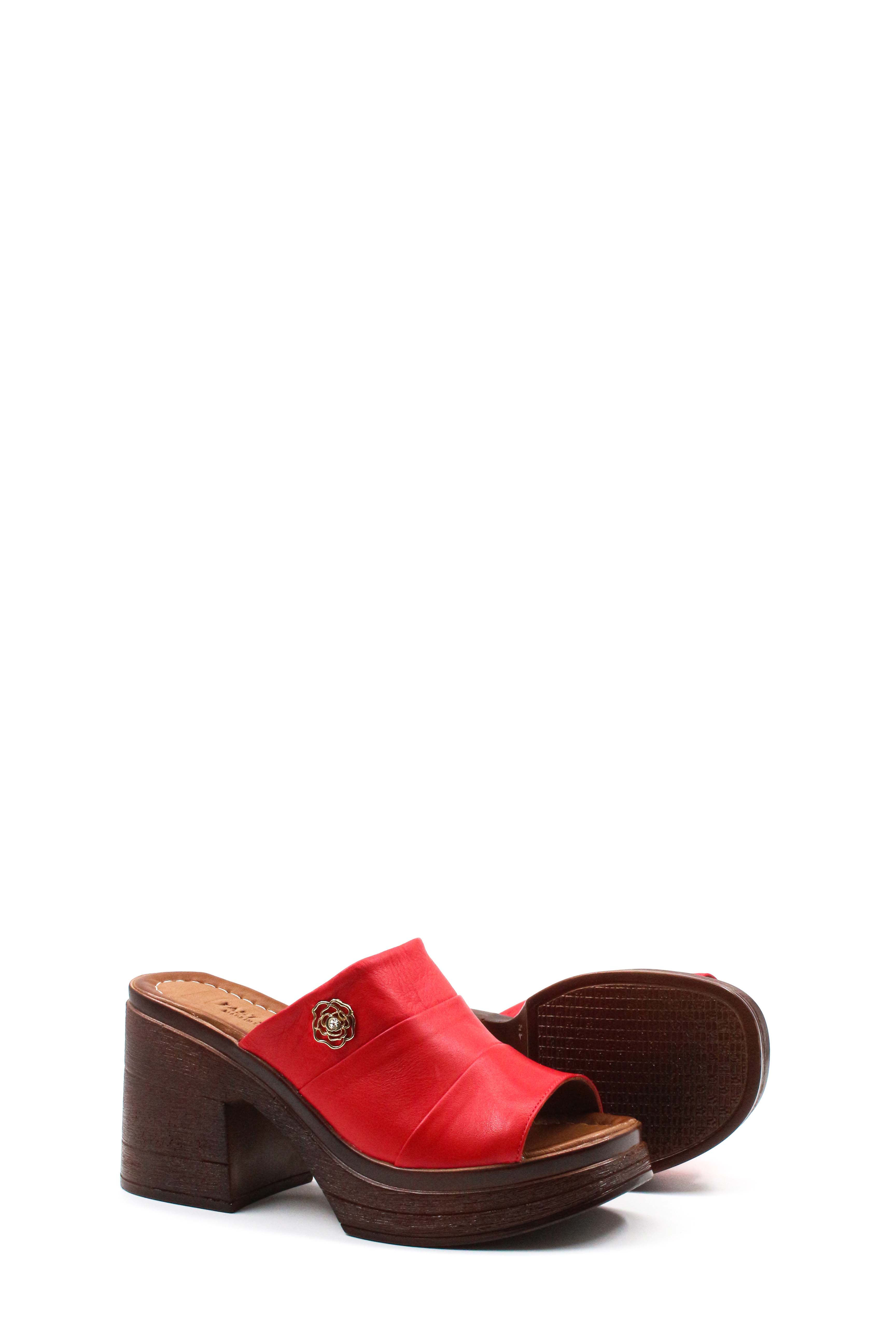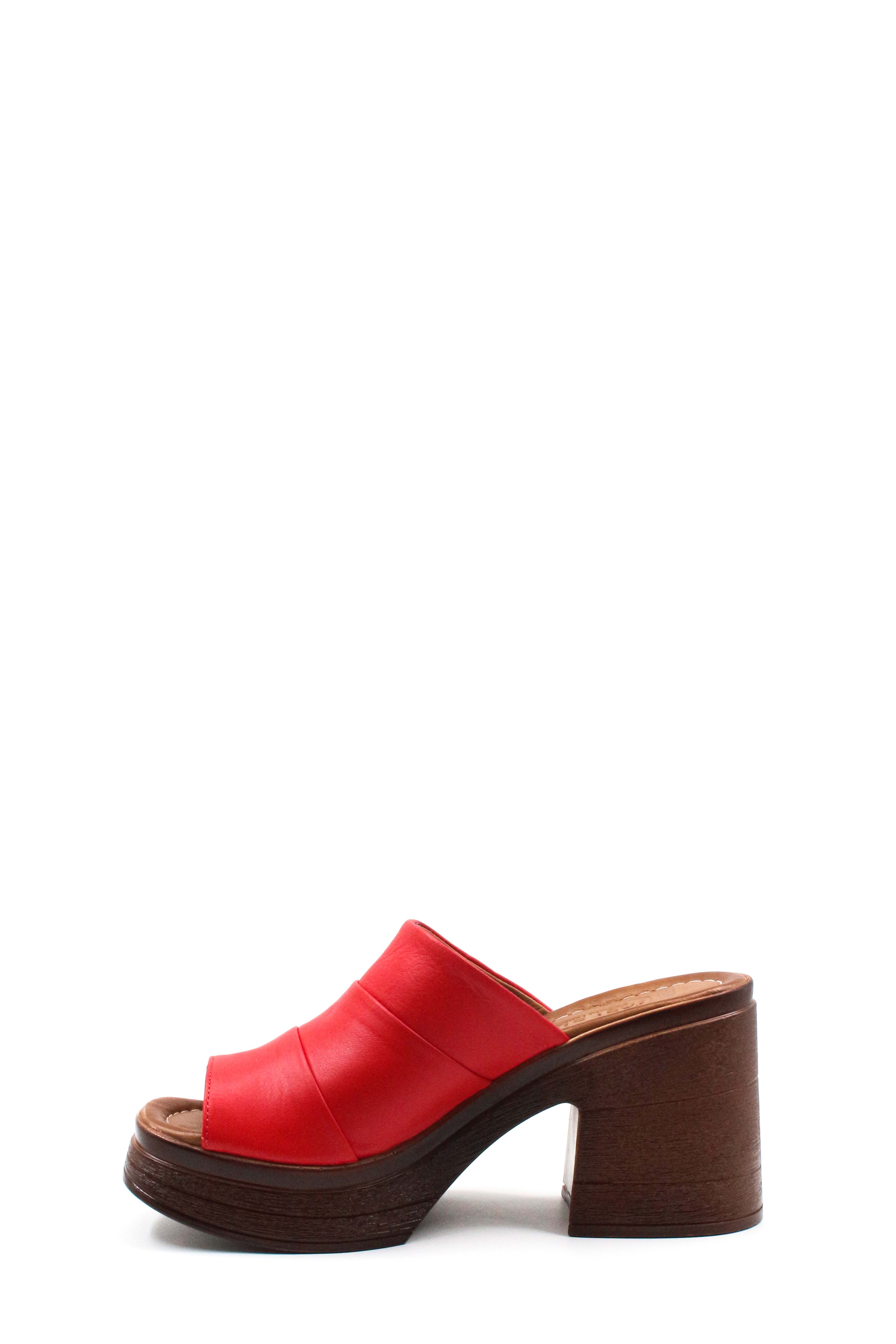 Tugerdi Kırmızı Hakiki Deri Hafif Taban Kalın Topuklu Kadın Terlik TG091242615581