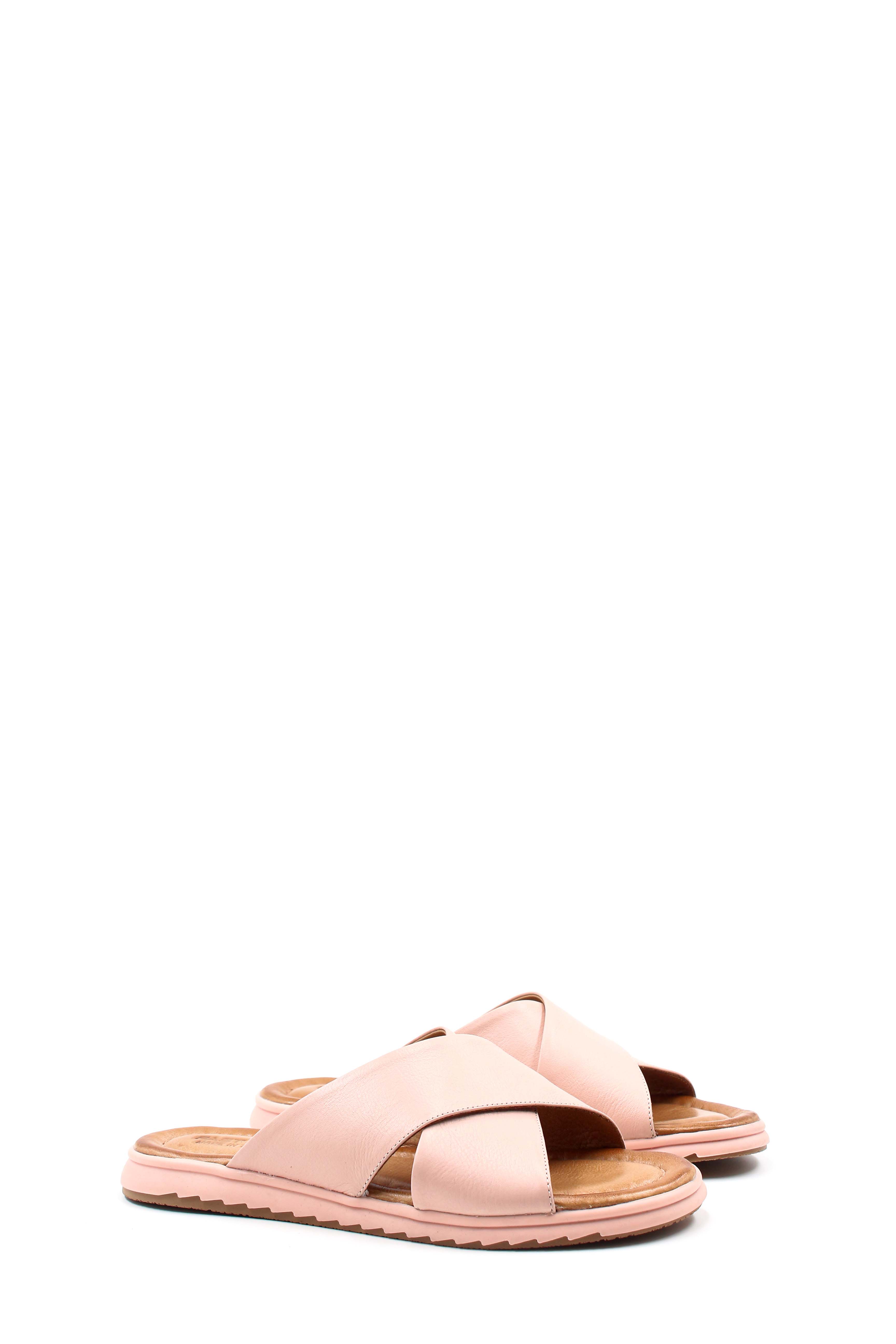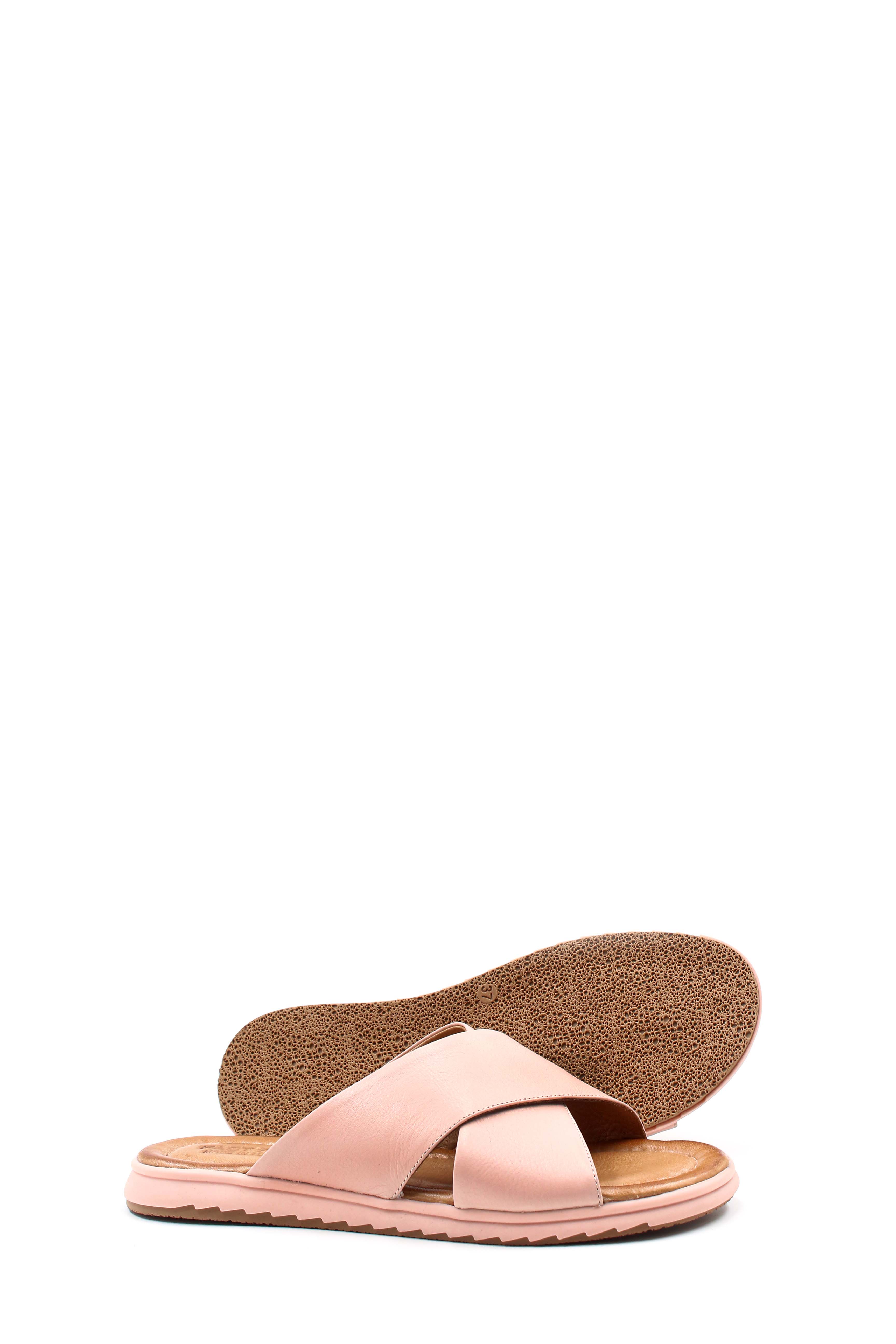 Tugerdi Pudra Hakiki Deri Hafif Taban Çapraz Kadın Düz Terlik TG096572612854