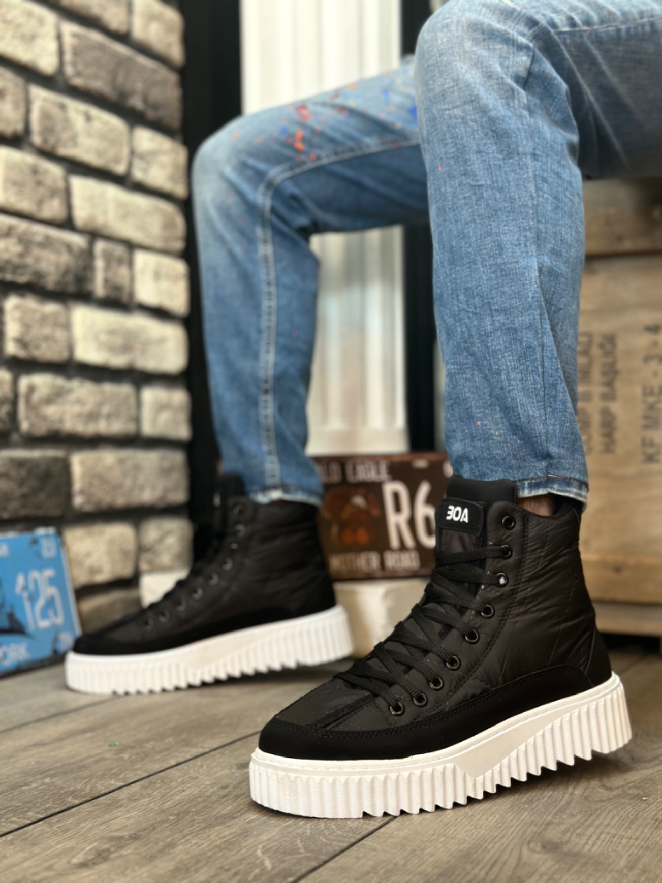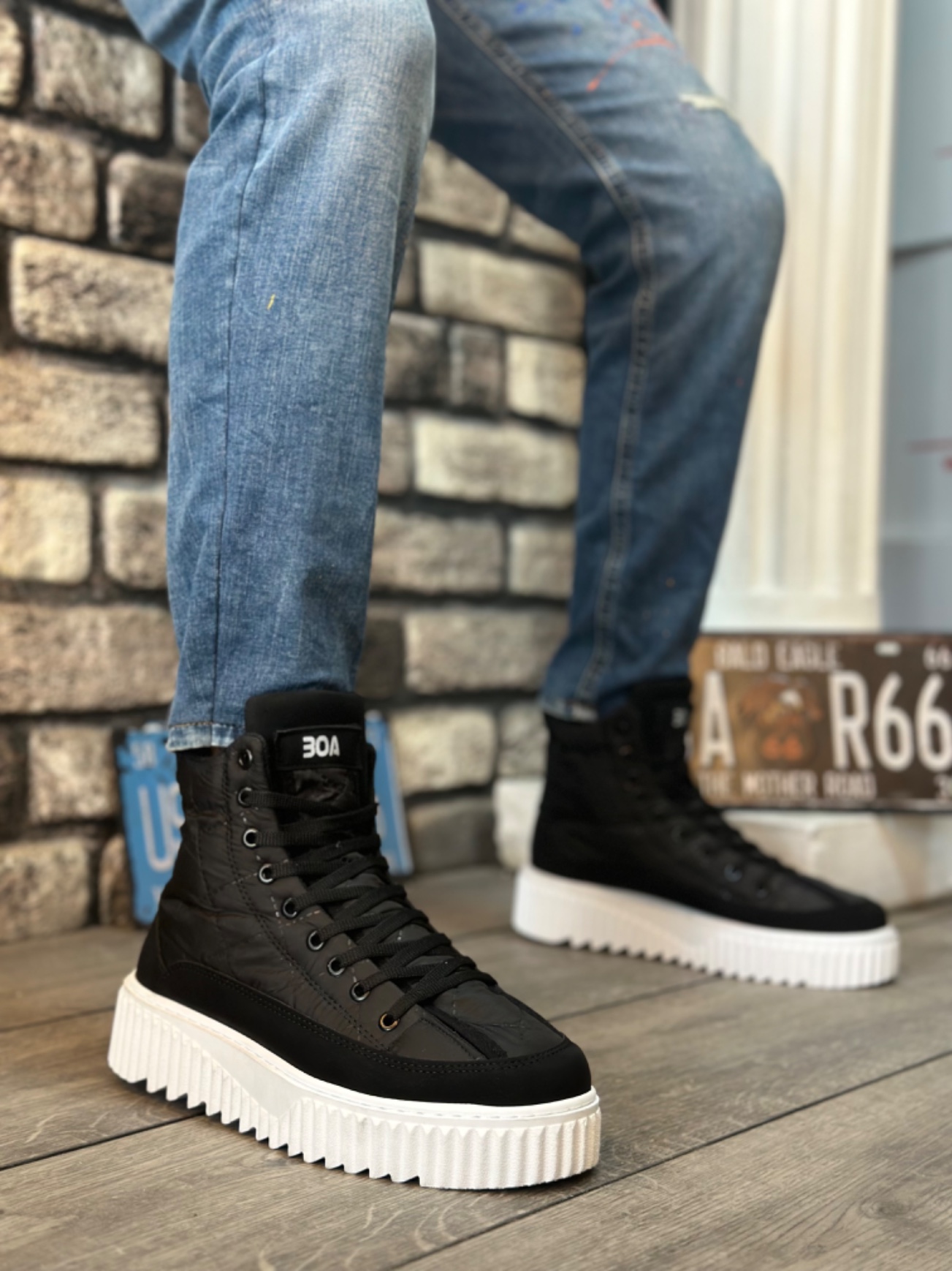 Tugerdi Siyah Paraşüt Kumaş Bağcıklı Yüksek Taban Yarım Bilek Erkek Spor Bot TGE230961