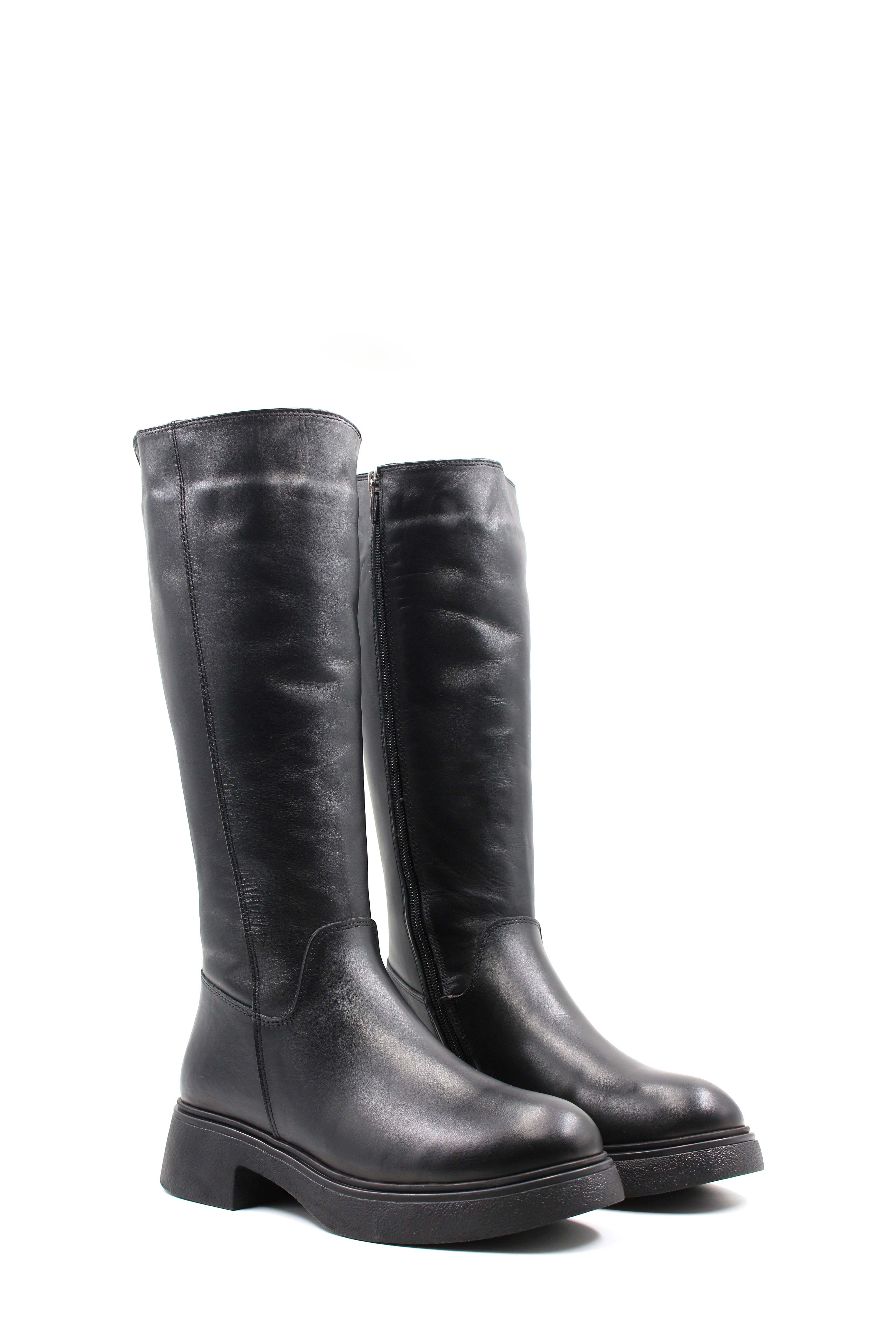 Tugerdi Siyah Hakiki Deri İçi Kürklü Fermuarlı Termo Taban Klasik Kadın Çizme TG09124112612724