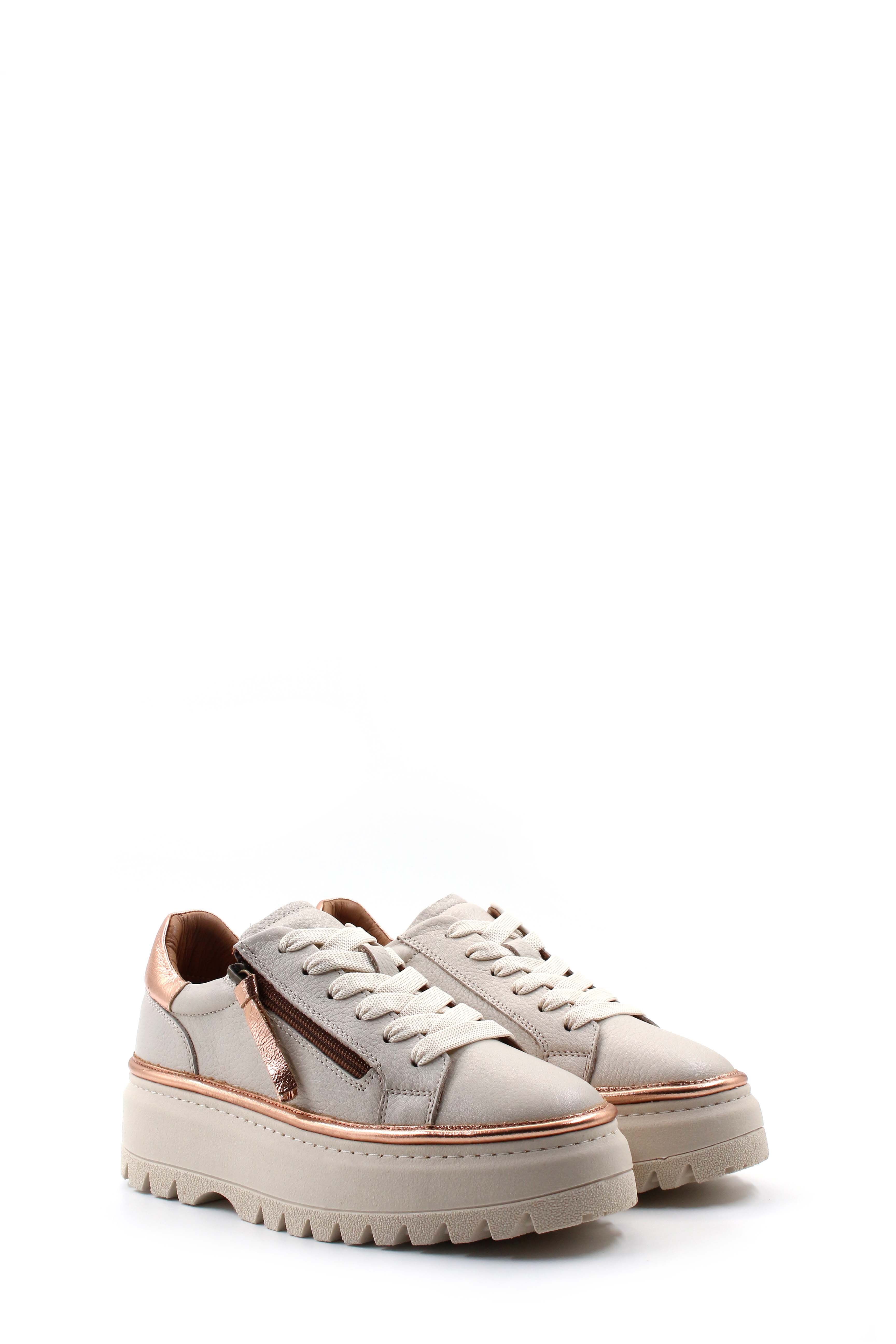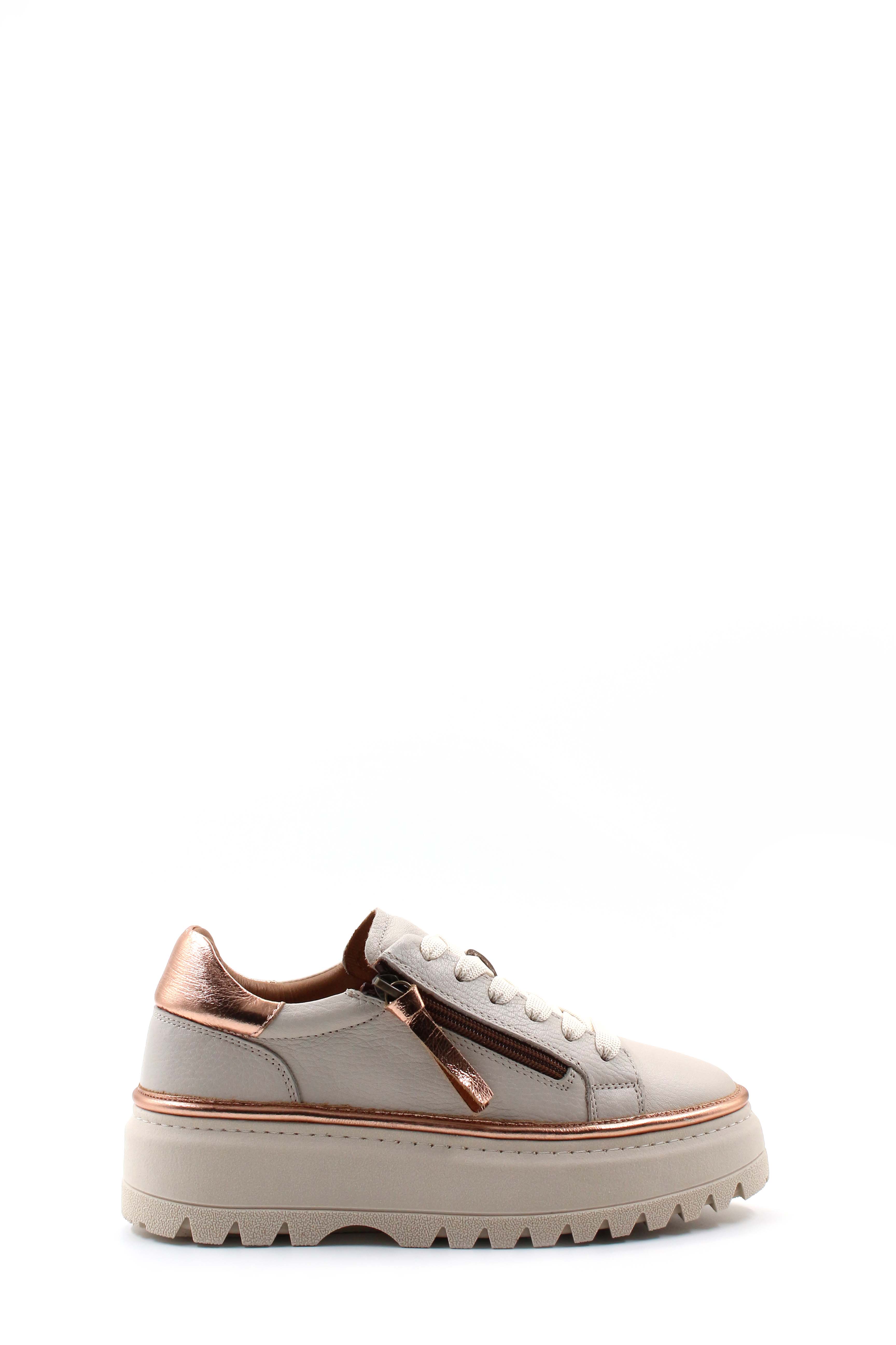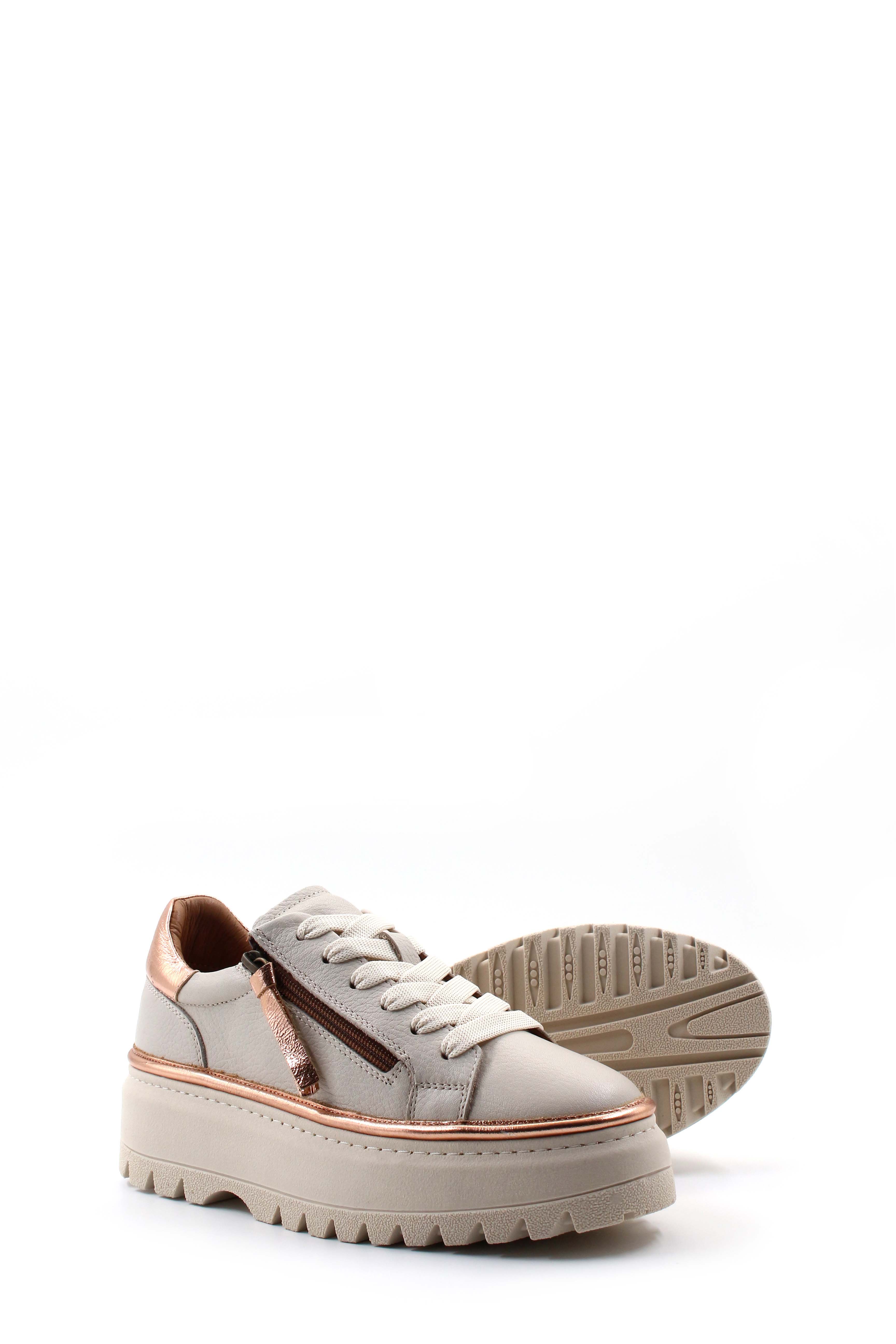 Tugerdi Bej Hakiki Deri Hafif Taban Bağcıklı Fermuarlı Kadın Casual Ayakkabı TG094092613512