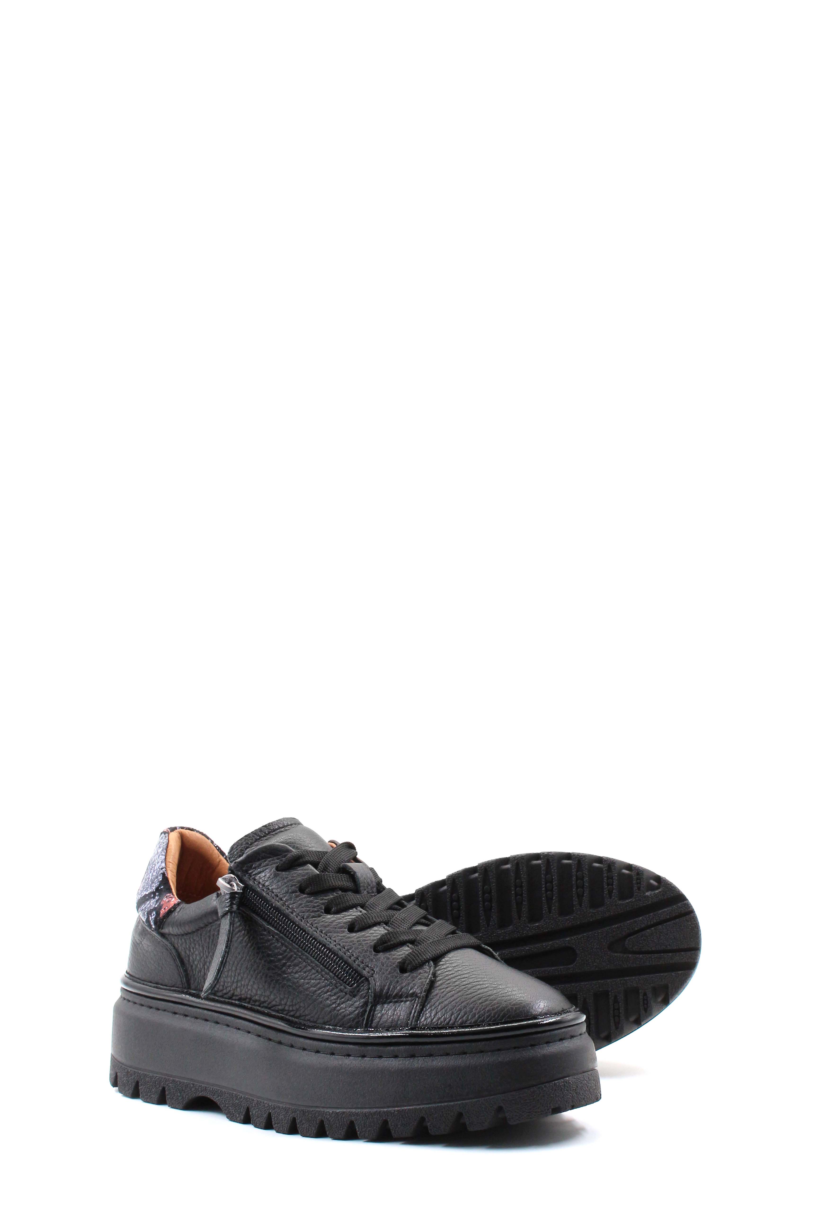 • Tugerdi Siyah Hakiki Deri Hafif Taban Bağcıklı Günlük Kadın Spor Ayakkabı TG094092613512