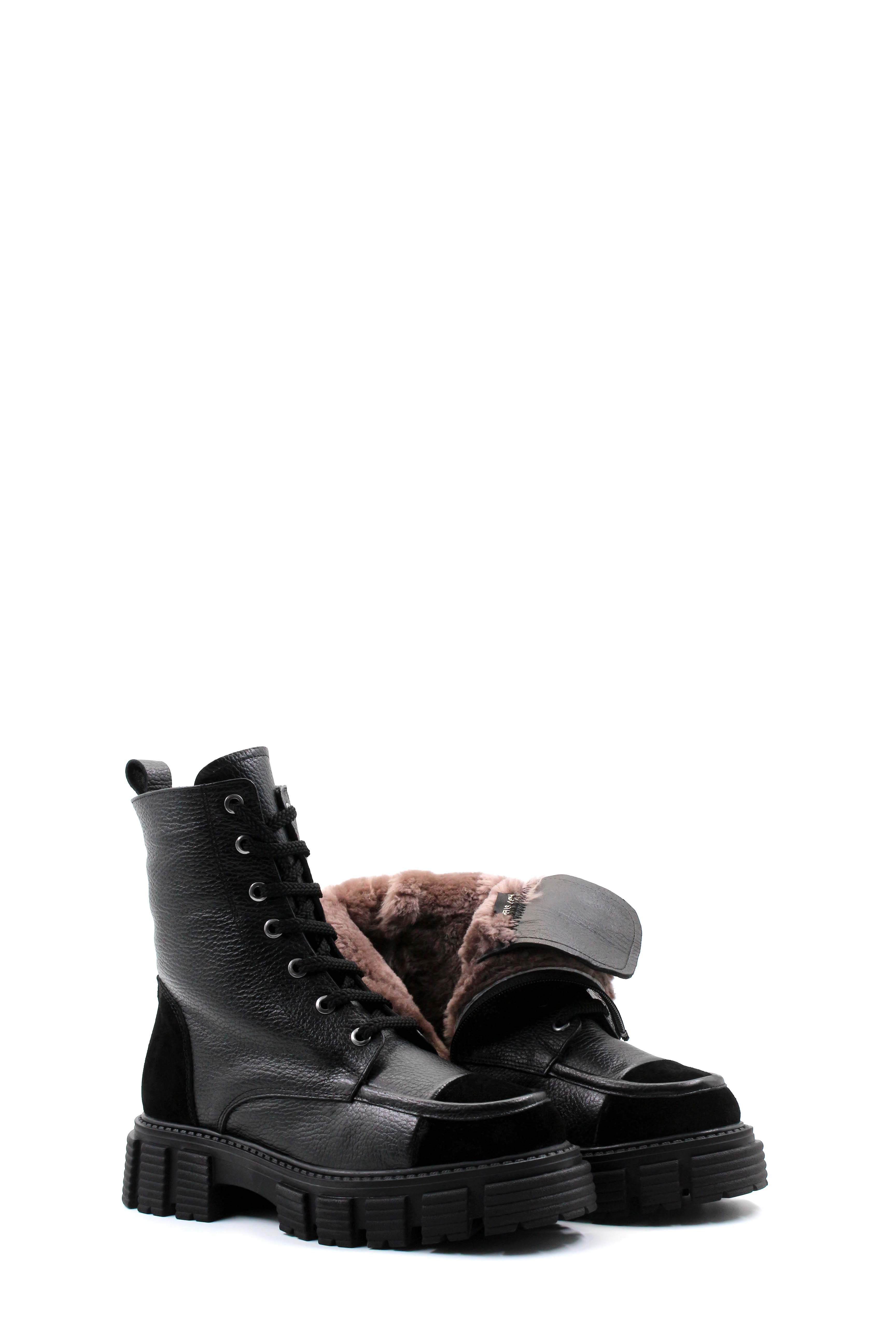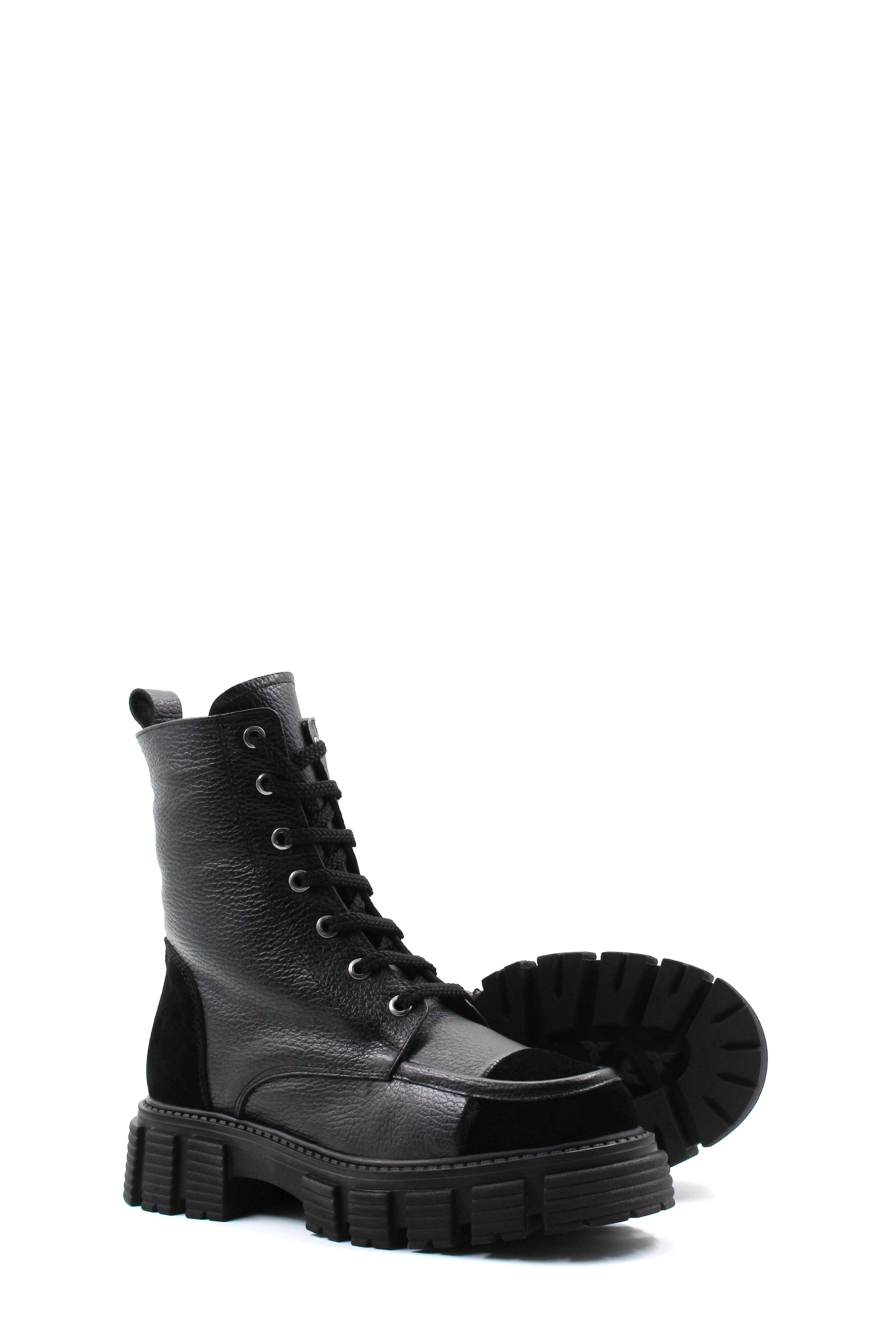 • Tugerdi Siyah İçi Kürklü Hakiki Deri Bağcıklı Fermuarlı Termo Taban Kadın Bot TG090101126181063