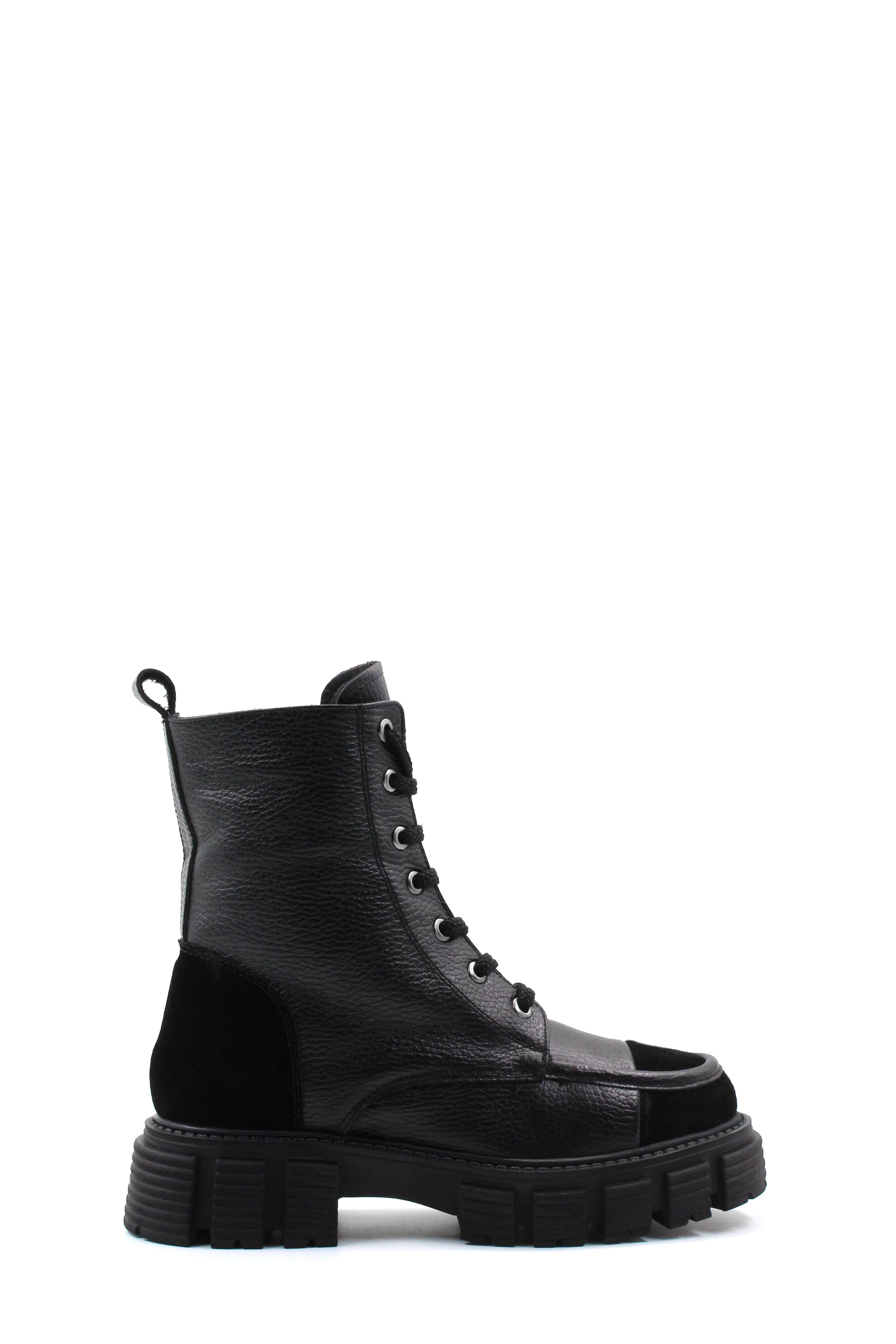 Tugerdi Siyah İçi Kürklü Hakiki Deri Bağcıklı Fermuarlı Termo Taban Kadın Bot TG090101126181063