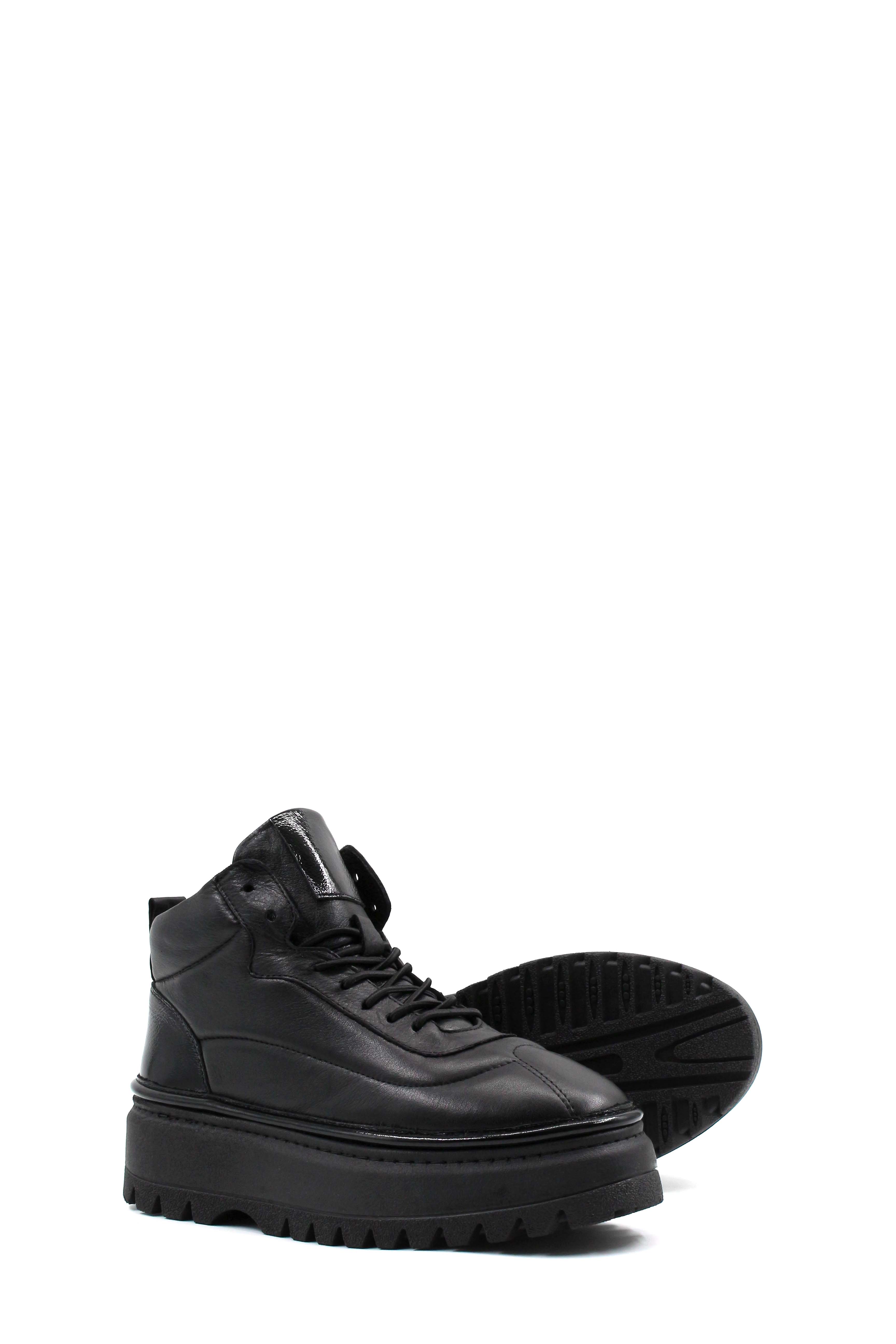 • Tugerdi Siyah Hakiki Deri Hafif Taban Bağcıklı Kadın Spor Bot TG09409192613526