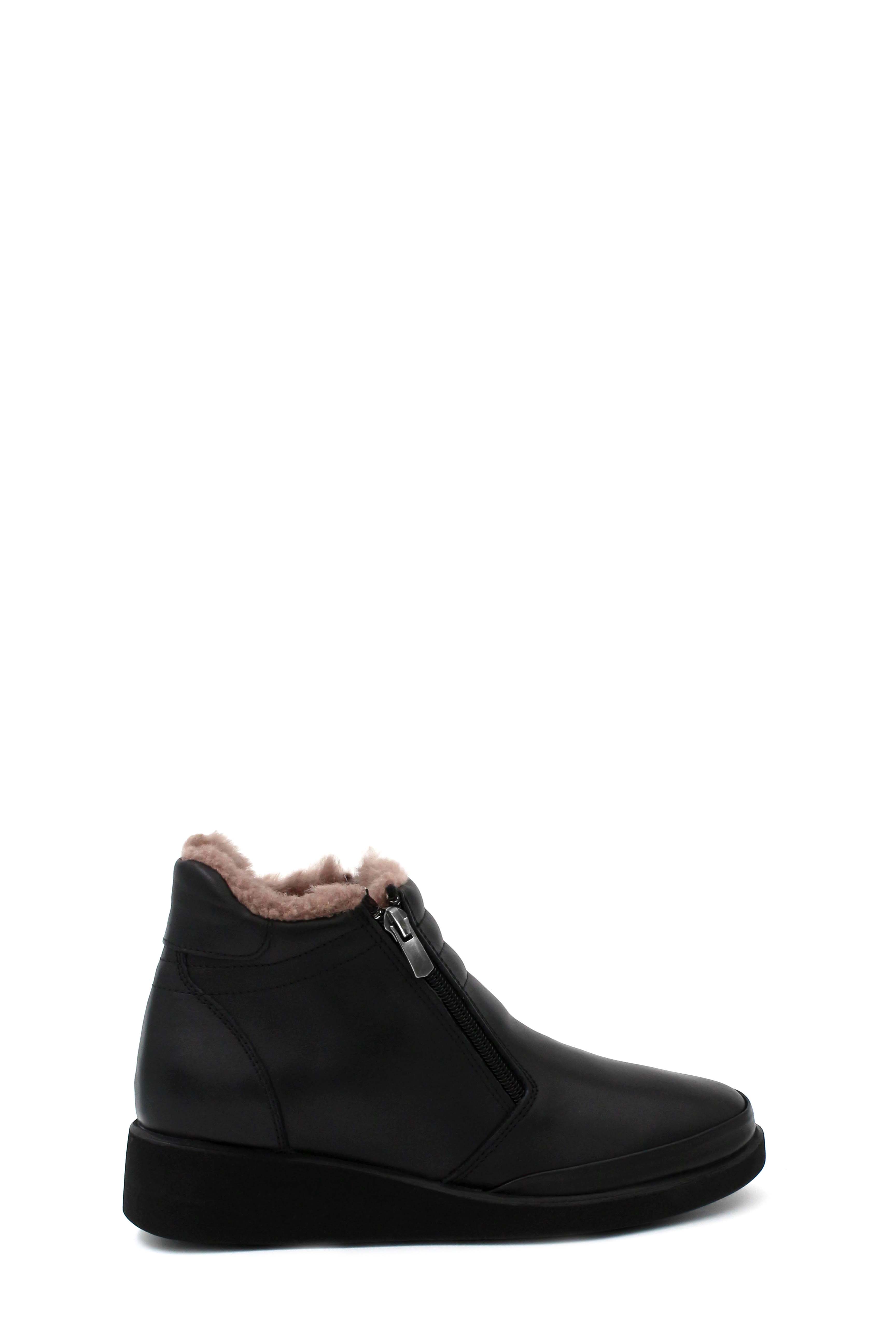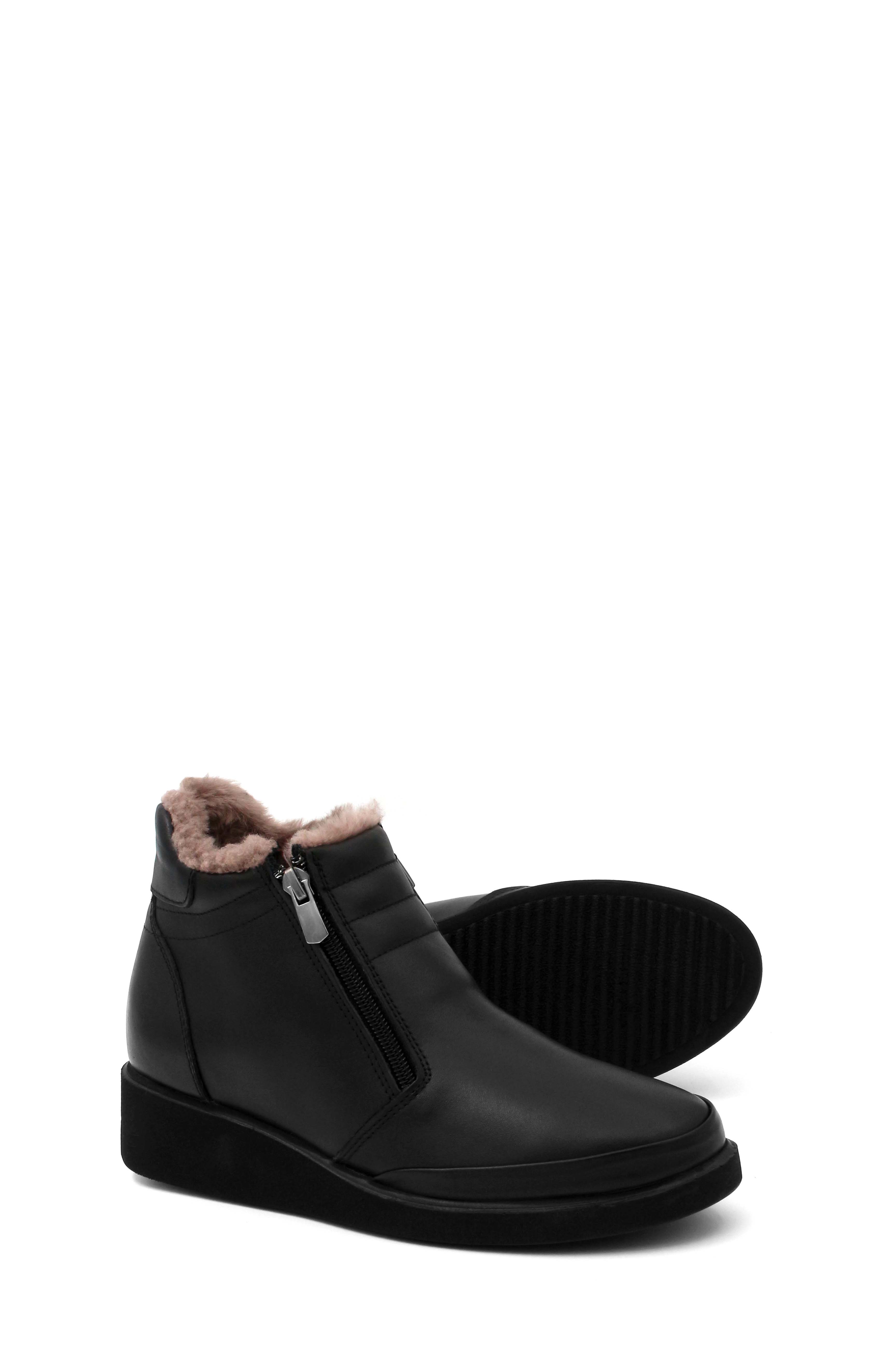 Tugerdi Siyah İçi Kürklü Hakiki Deri Hafif Taban Fermuarlı Kadın Bot TG09411112611117