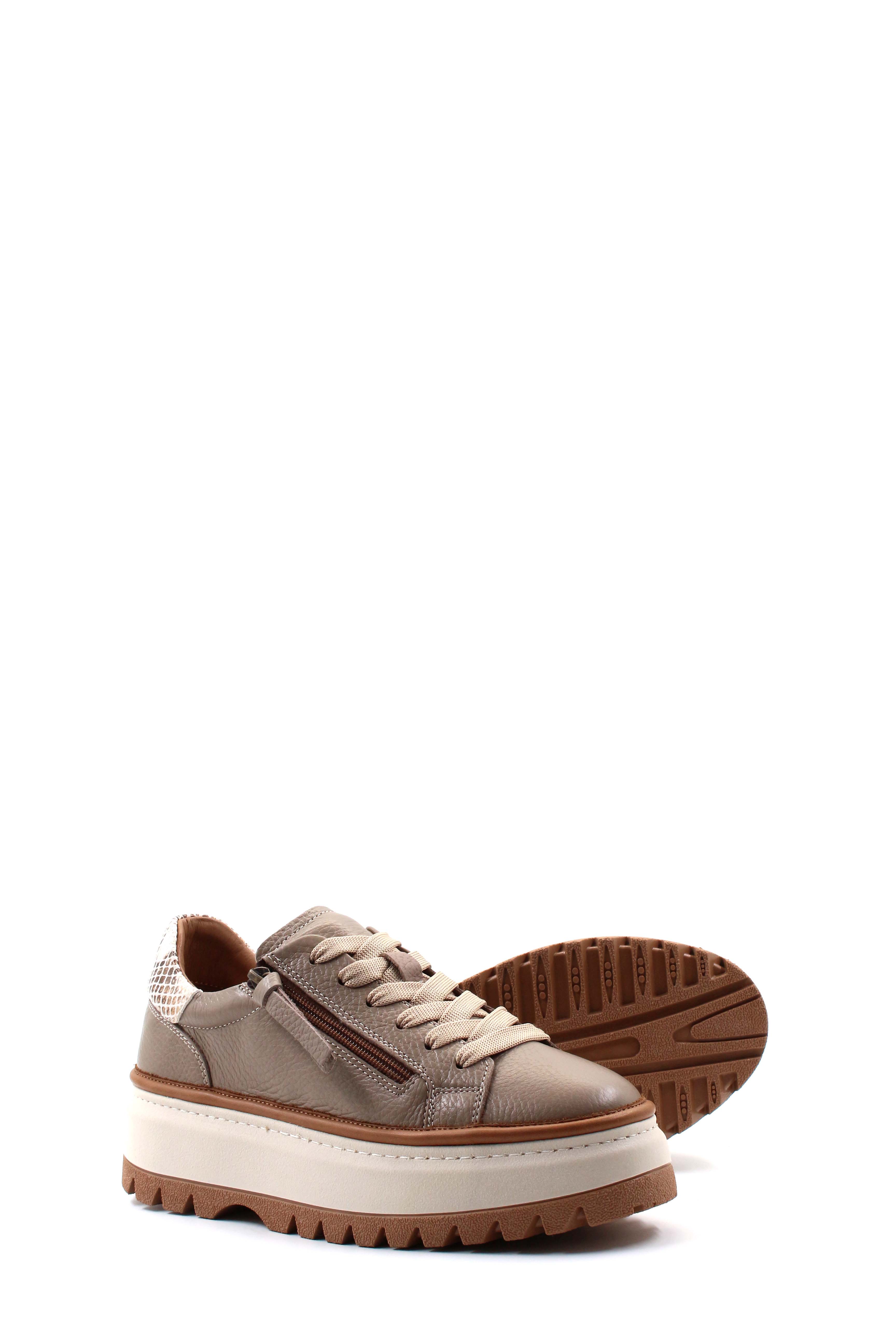 Tugerdi Vizon Hakiki Deri Bağcıklı Fermuarlı Hafif Taban Kadın Spor Ayakkabı TG094092613514