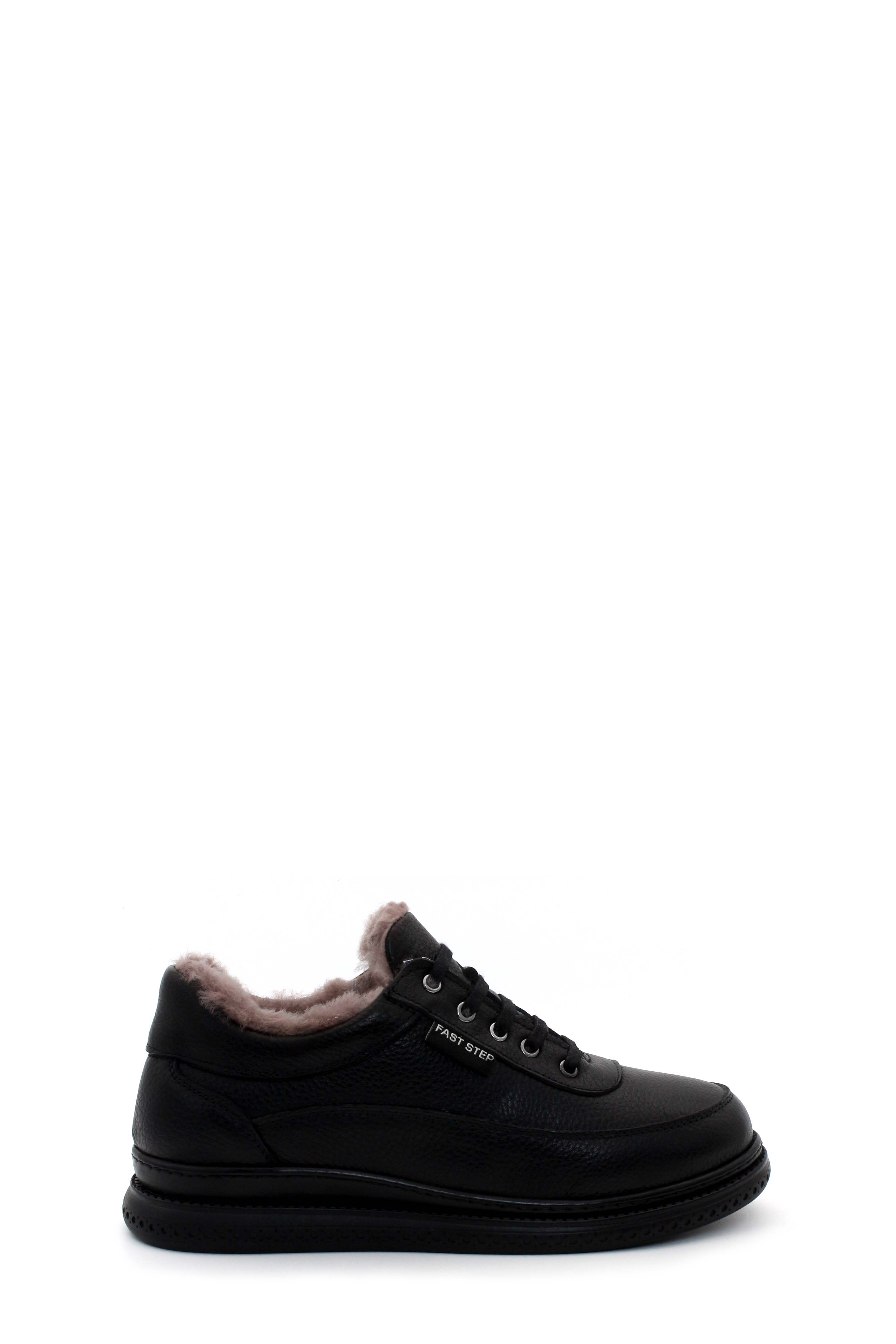 Tugerdi Siyah Floter İçi Kürklü Hakiki Deri Hafif Taban Bağcıklı Kadın Casual Ayakkabı TG09583112617435