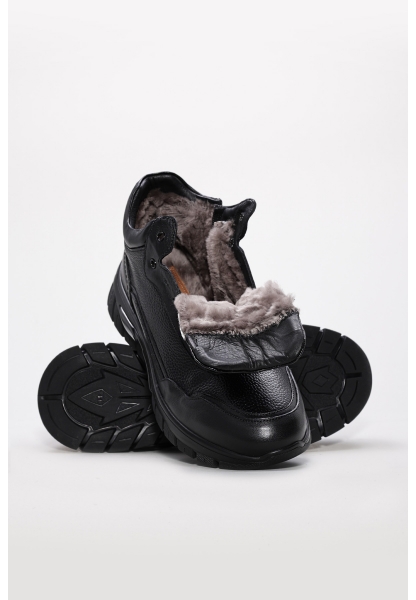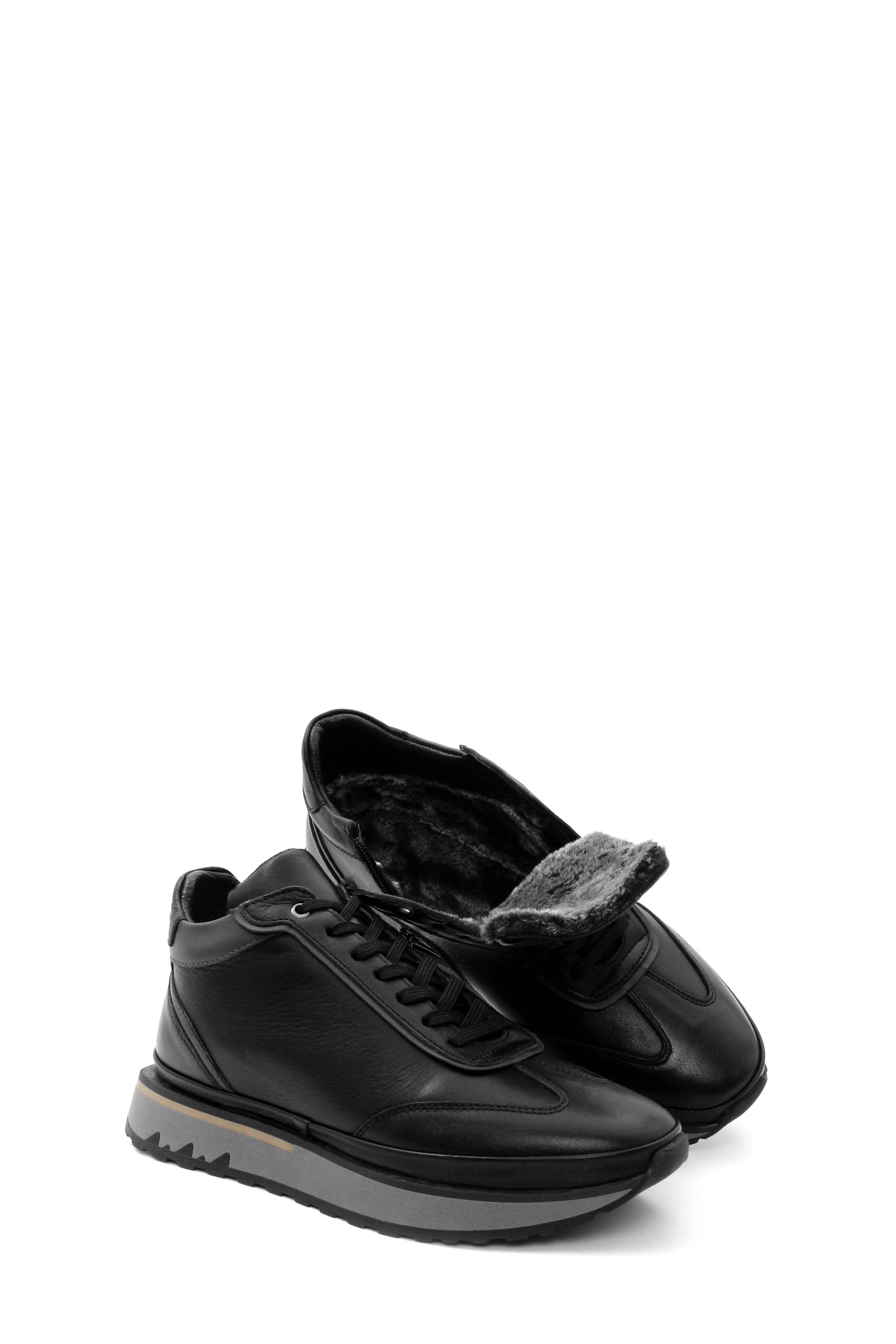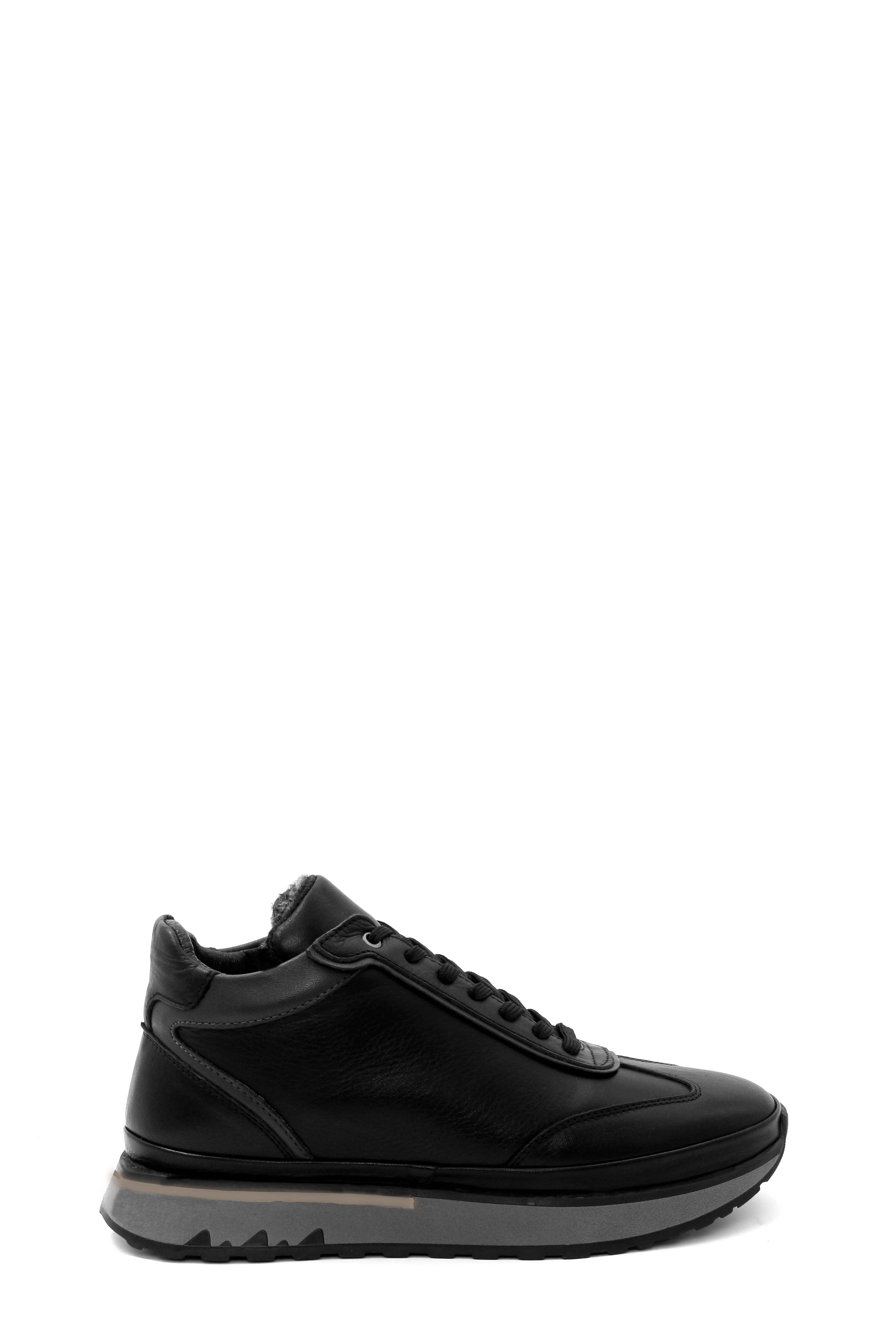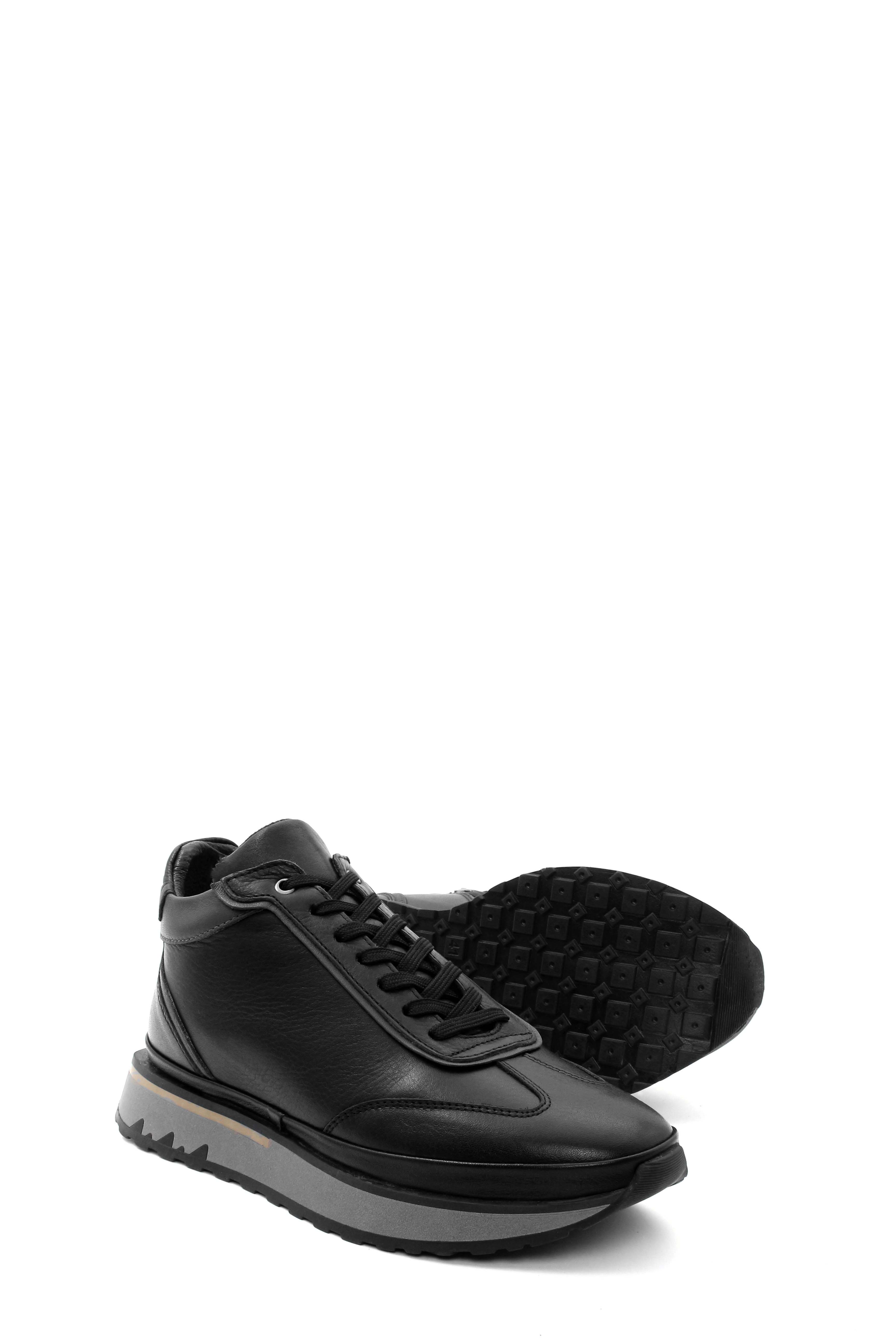 • Tugerdi Siyah Hakiki Deri İçi Kürklü Bağcıklı Fermuarlı Klasik Erkek Bot TG09855191313476