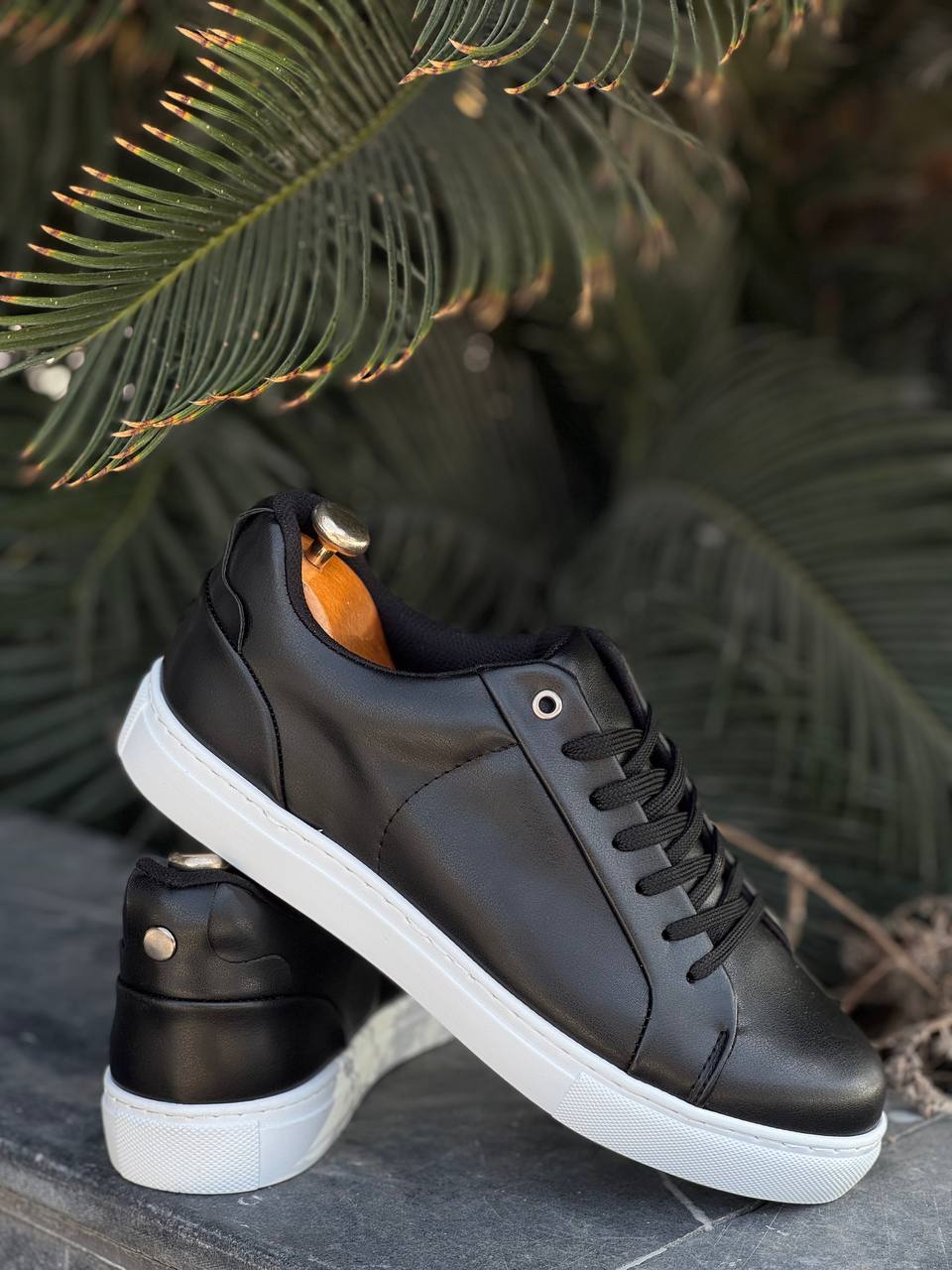 • Tugerdi Siyah Cilt Bağcıklı Beyaz Yüksek Taban Tarz Günlük Erkek Ayakkabı TGR230151