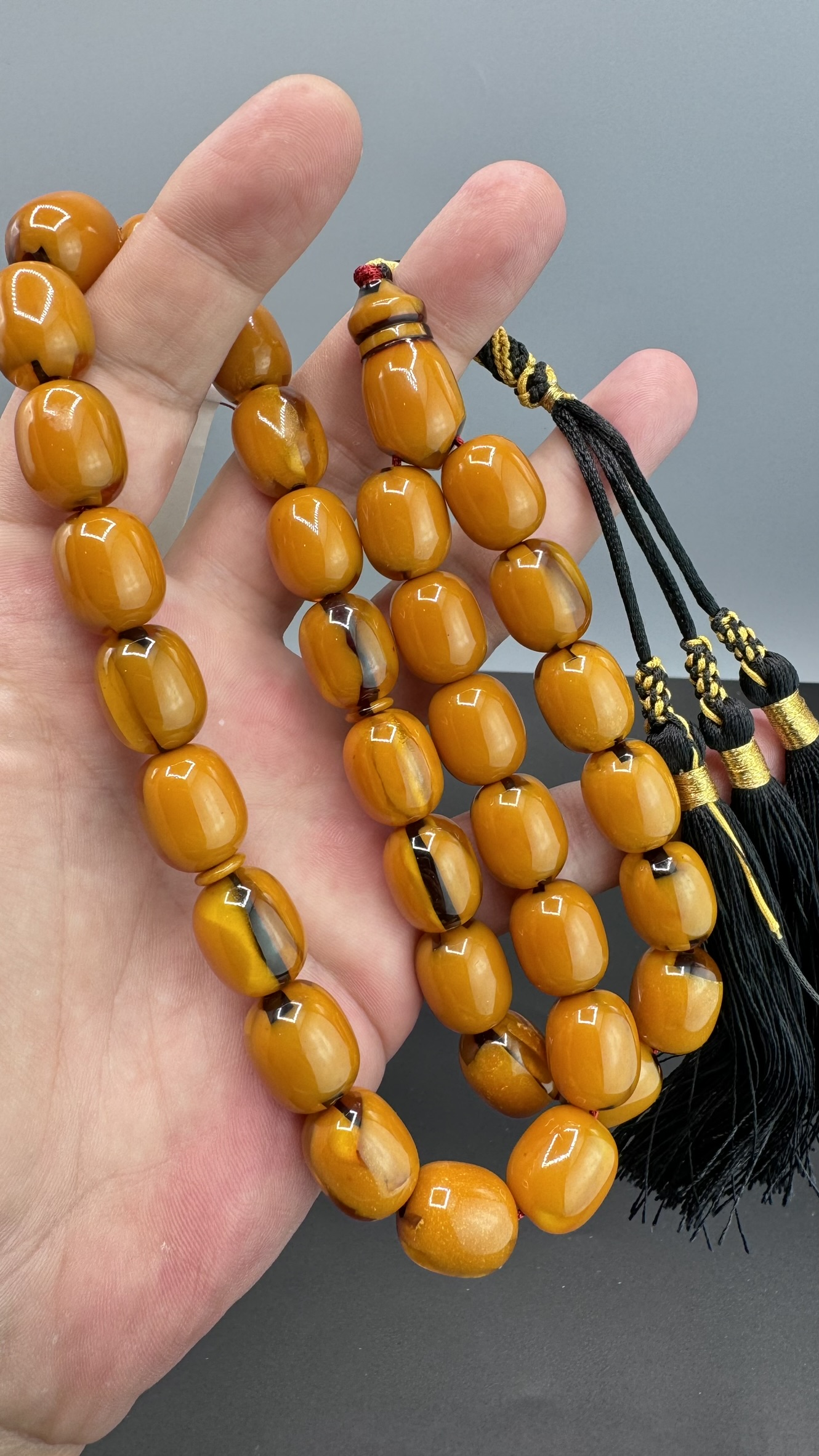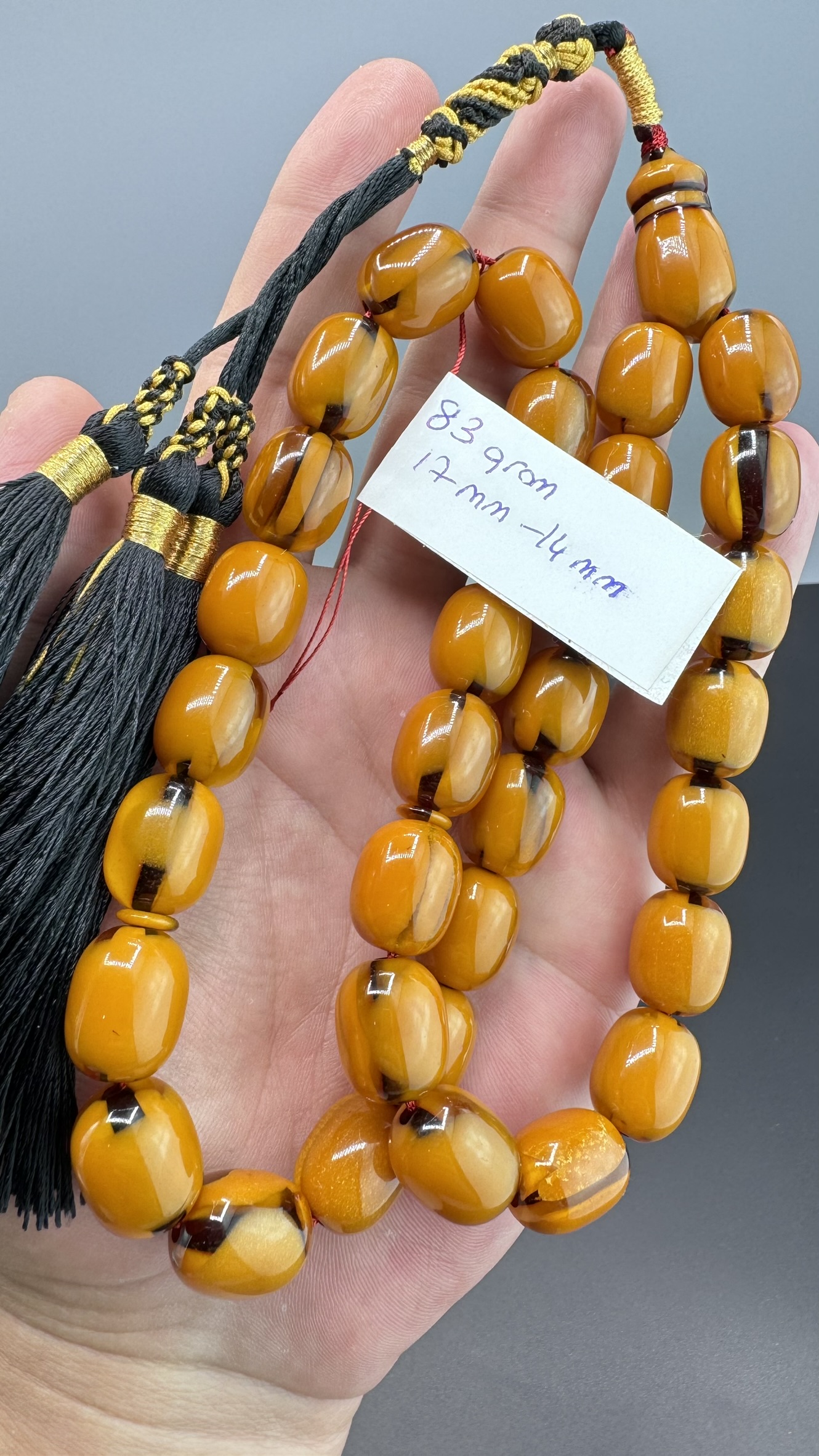 • Kesimi : Teker Kesim Sıkma Kehribarı Tesbih