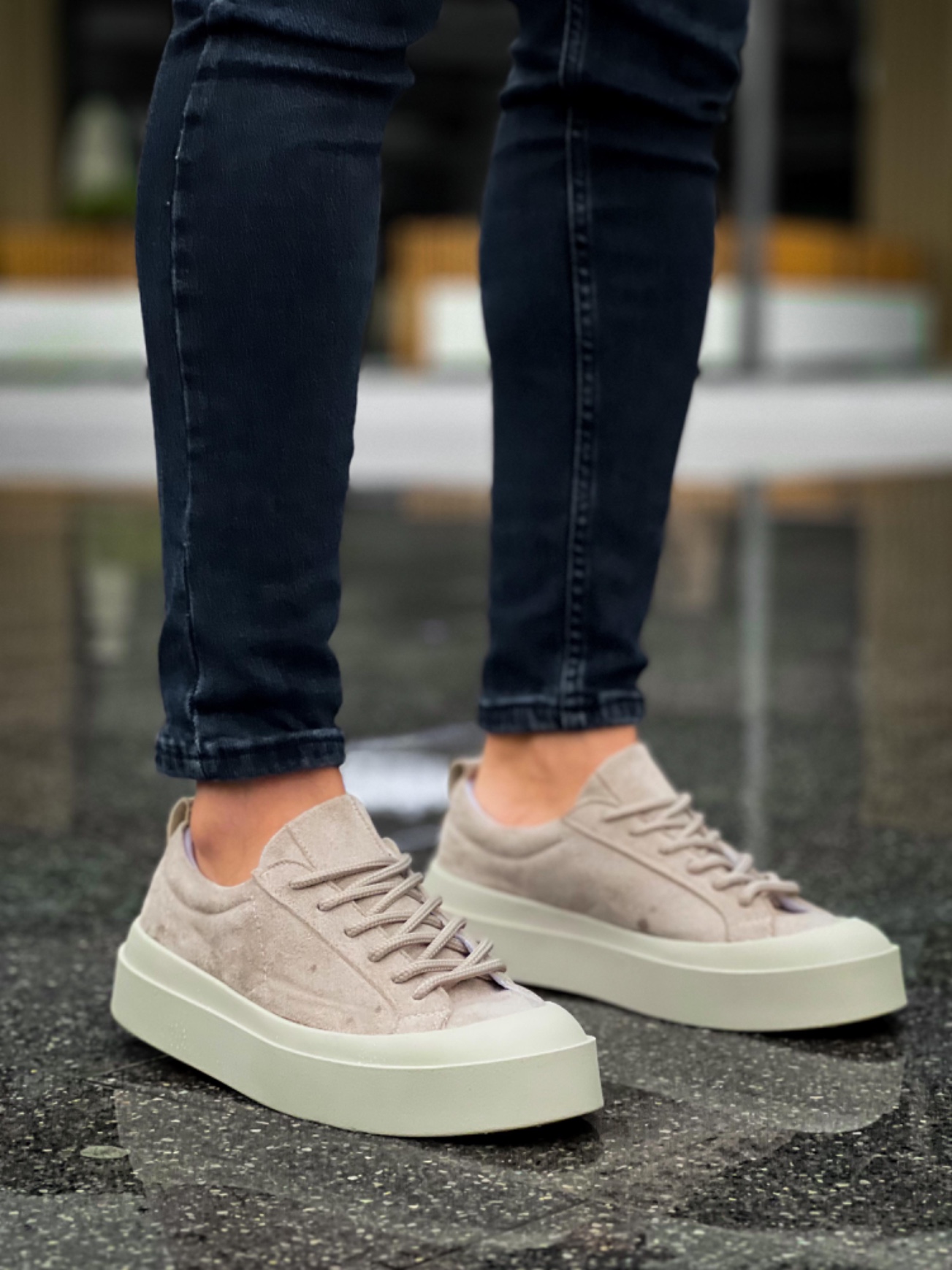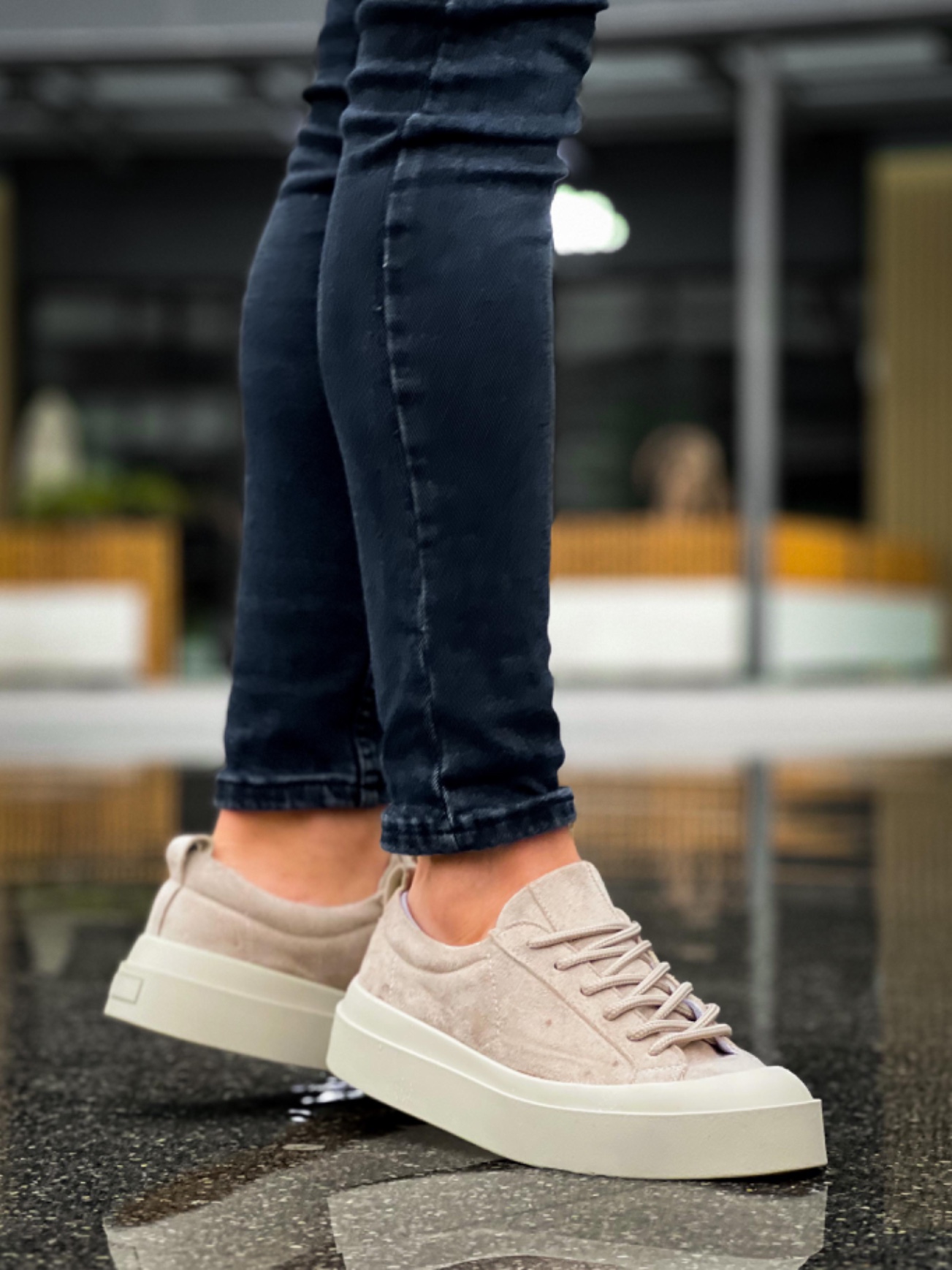 • Tugerdi Krem Süet Özel Termo Taban Bağcıklı Tarz Casual Erkek Ayakkabı TGE230650