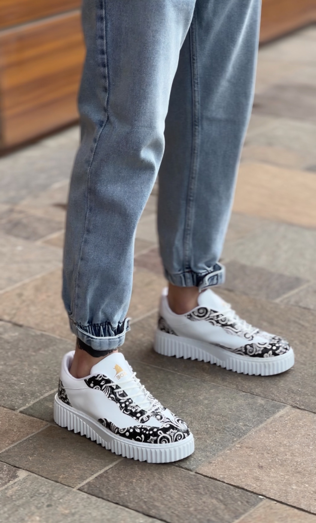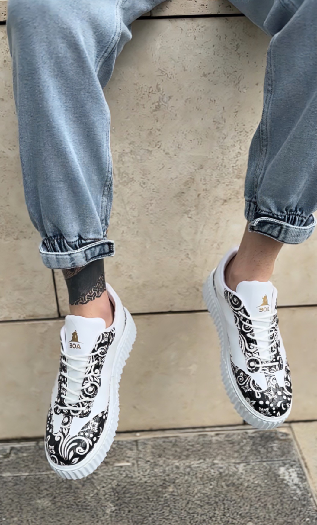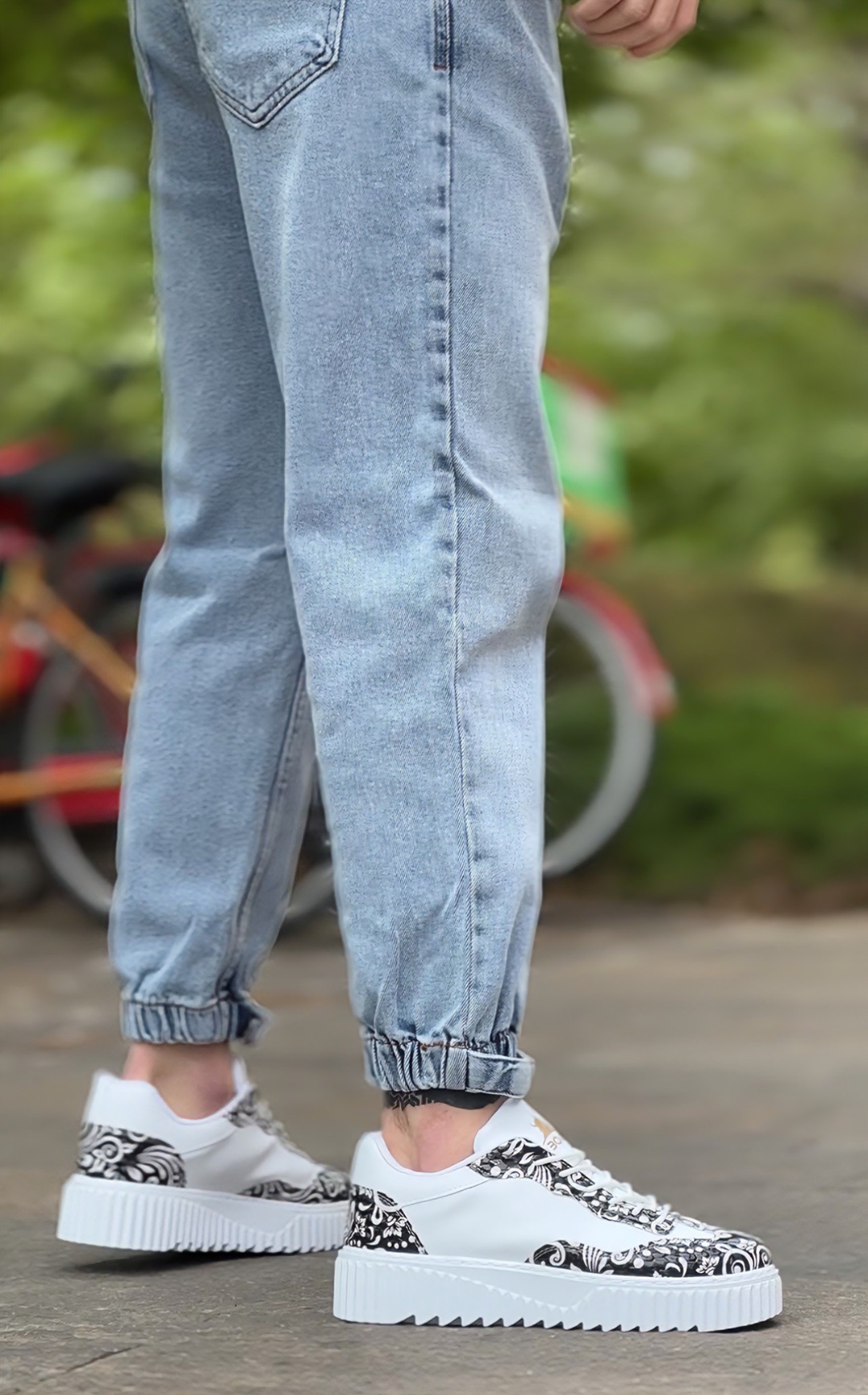 • Tugerdi Beyaz Gotik Desenli Yüksek Taban Bağcıklı Tarz Erkek Günlük Ayakkabı TGE230952