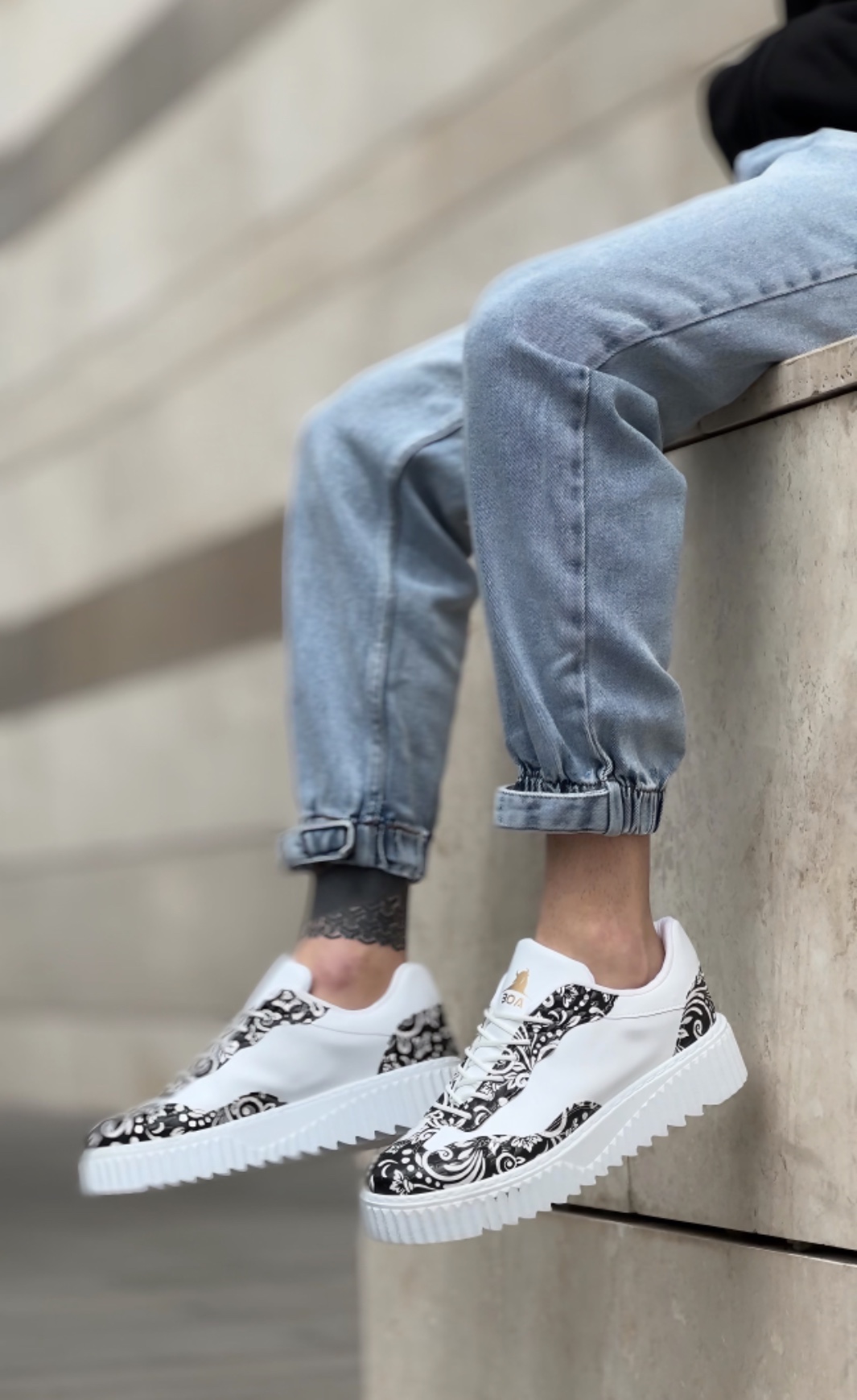 Tugerdi Beyaz Gotik Desenli Yüksek Taban Bağcıklı Tarz Erkek Günlük Ayakkabı TGE230952