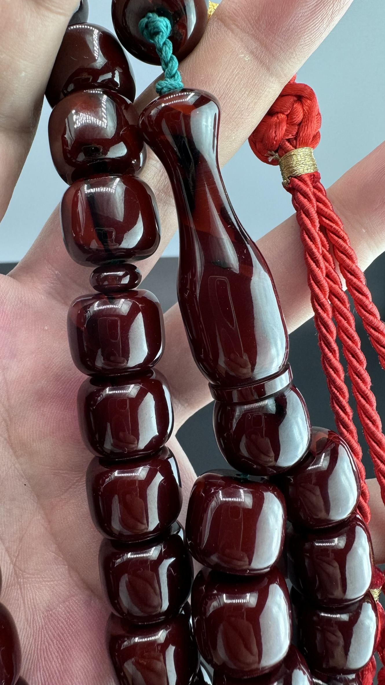 Tugerdi Vişne 123 Gr Püsküllü Eski Döküm Rüzgar Gülü Hareli Sıkma Kehribar Tespih TGETES600644