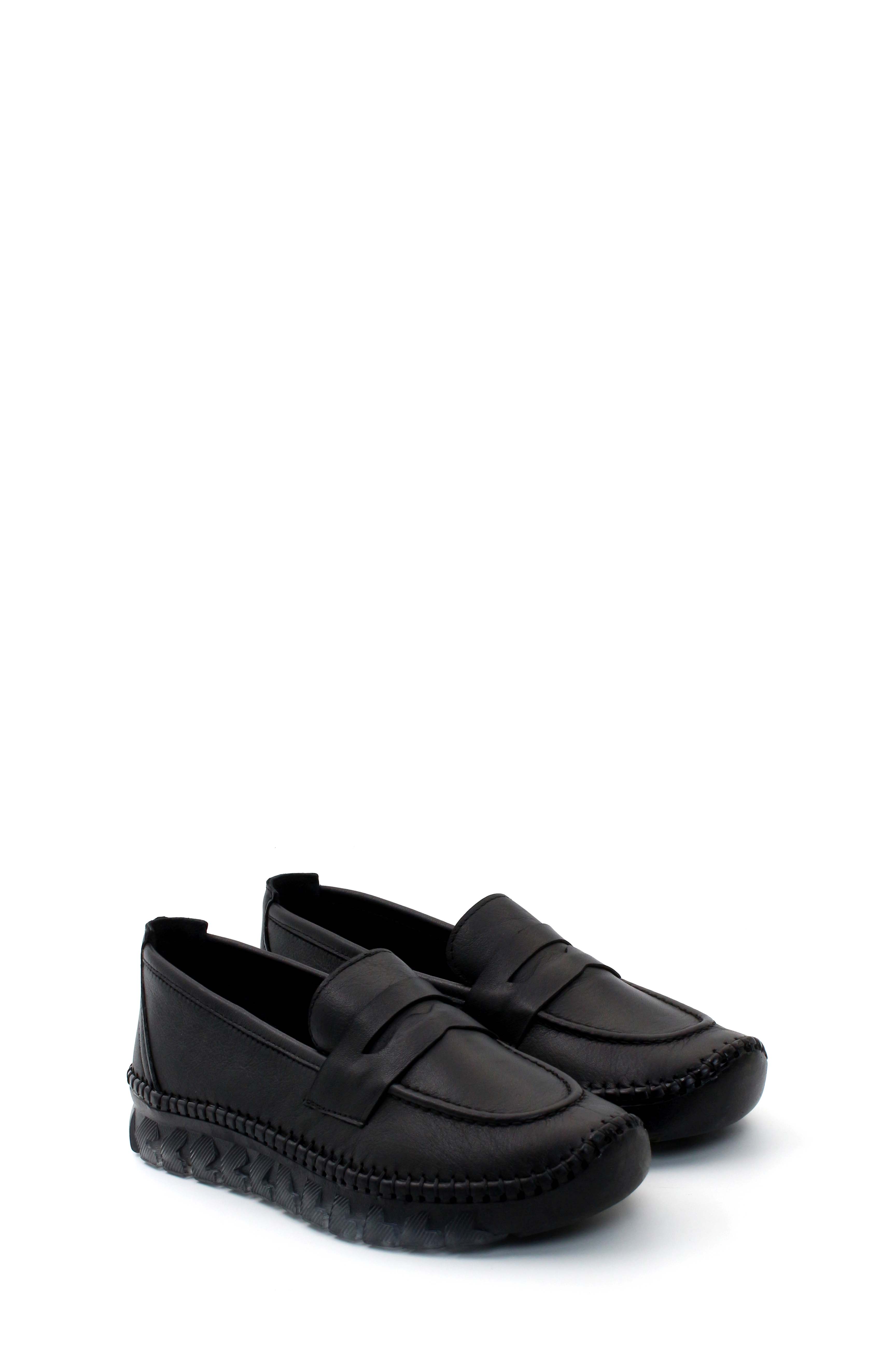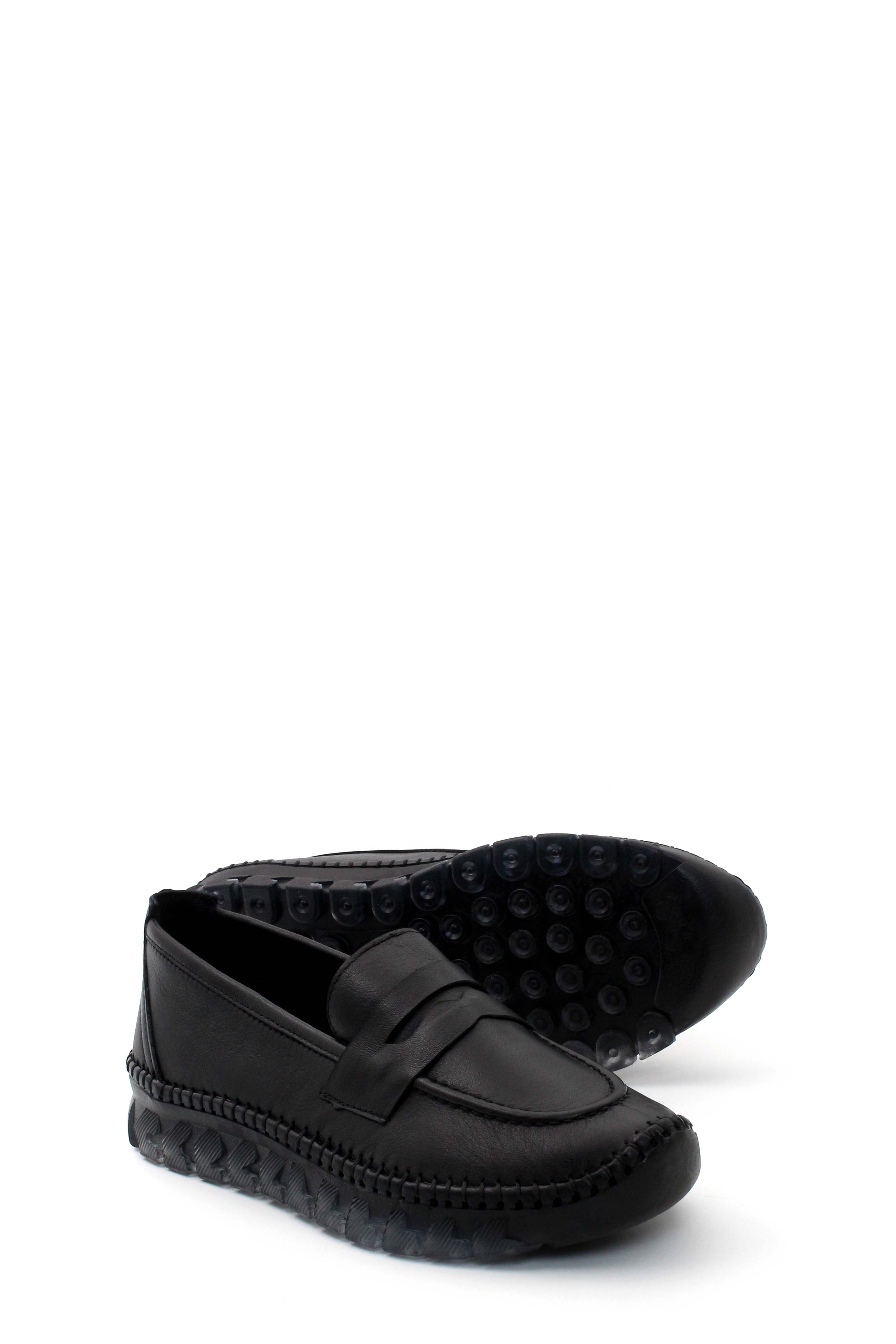 • Tugerdi Siyah Hakiki Deri Siyah Kauçuk Taban Kadın Casual Ayakkabı TG096092611150