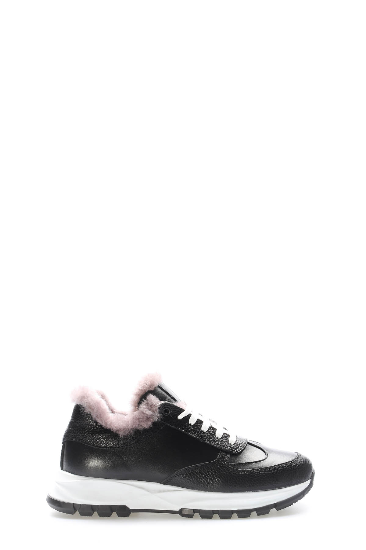 Tugerdi Siyah Hakiki Deri İçi Kürklü Bağcıklı Termo Taban Günlük Kadın Ayakkabı TG0919711261514
