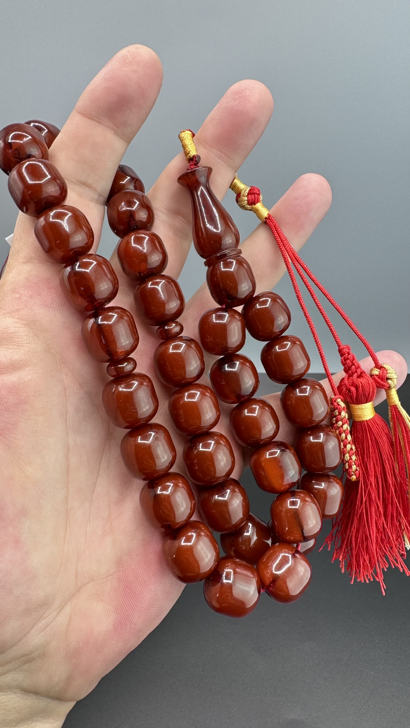 • Kesimi : Basık Kapsül Sıkma Kehribarı Tesbih