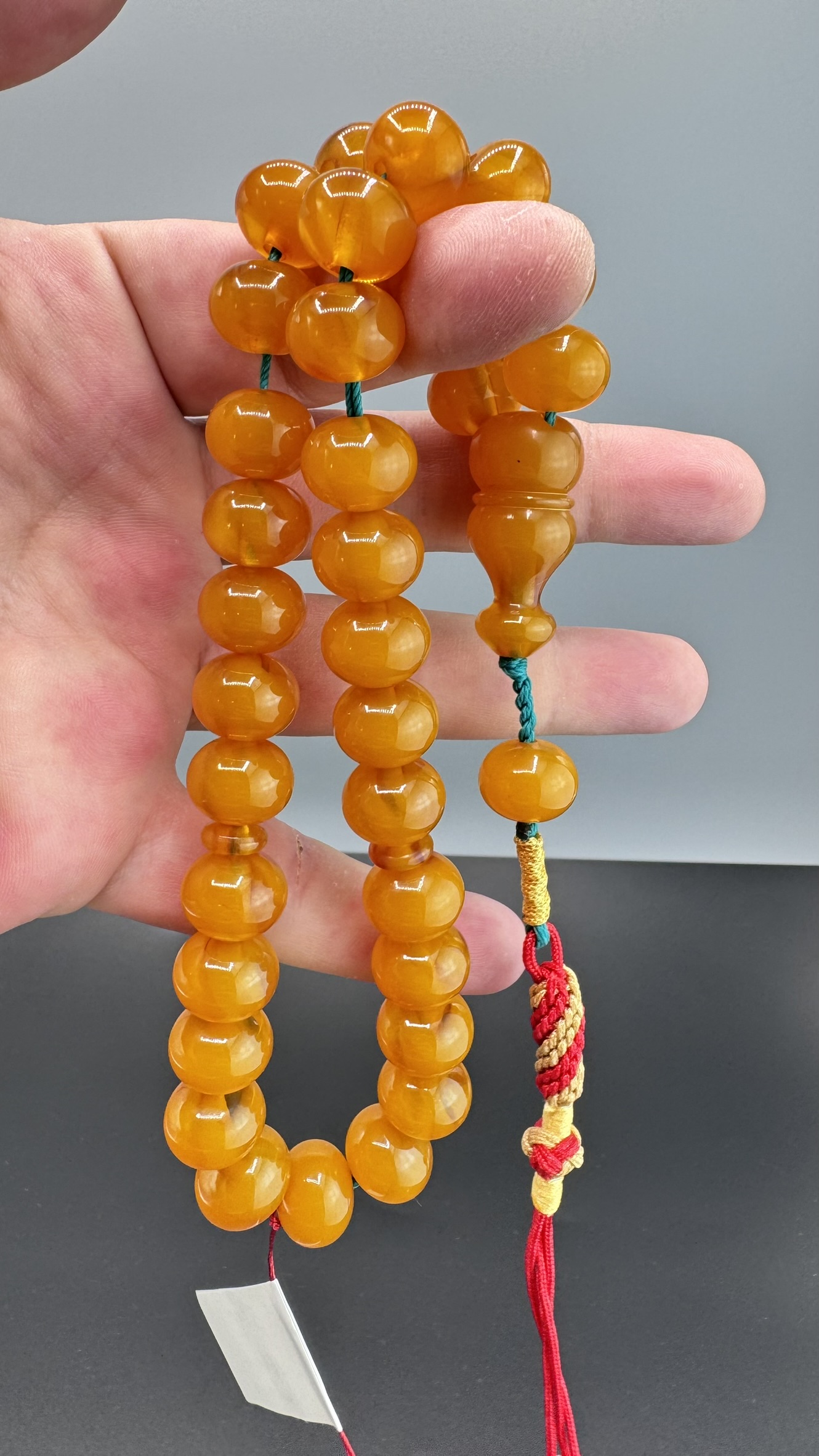 • Kesimi : Basık Küre Sıkma Kehribarı Tesbih