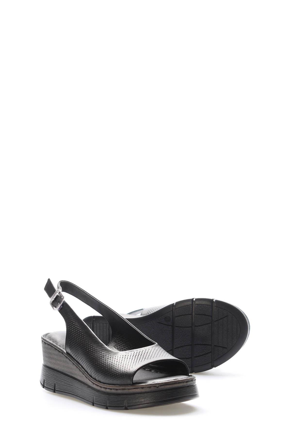 • Tugerdi Siyah Hakiki Deri Yandan Kemerli Hafif Taban Klasik Kadın Sandalet TG096212611536