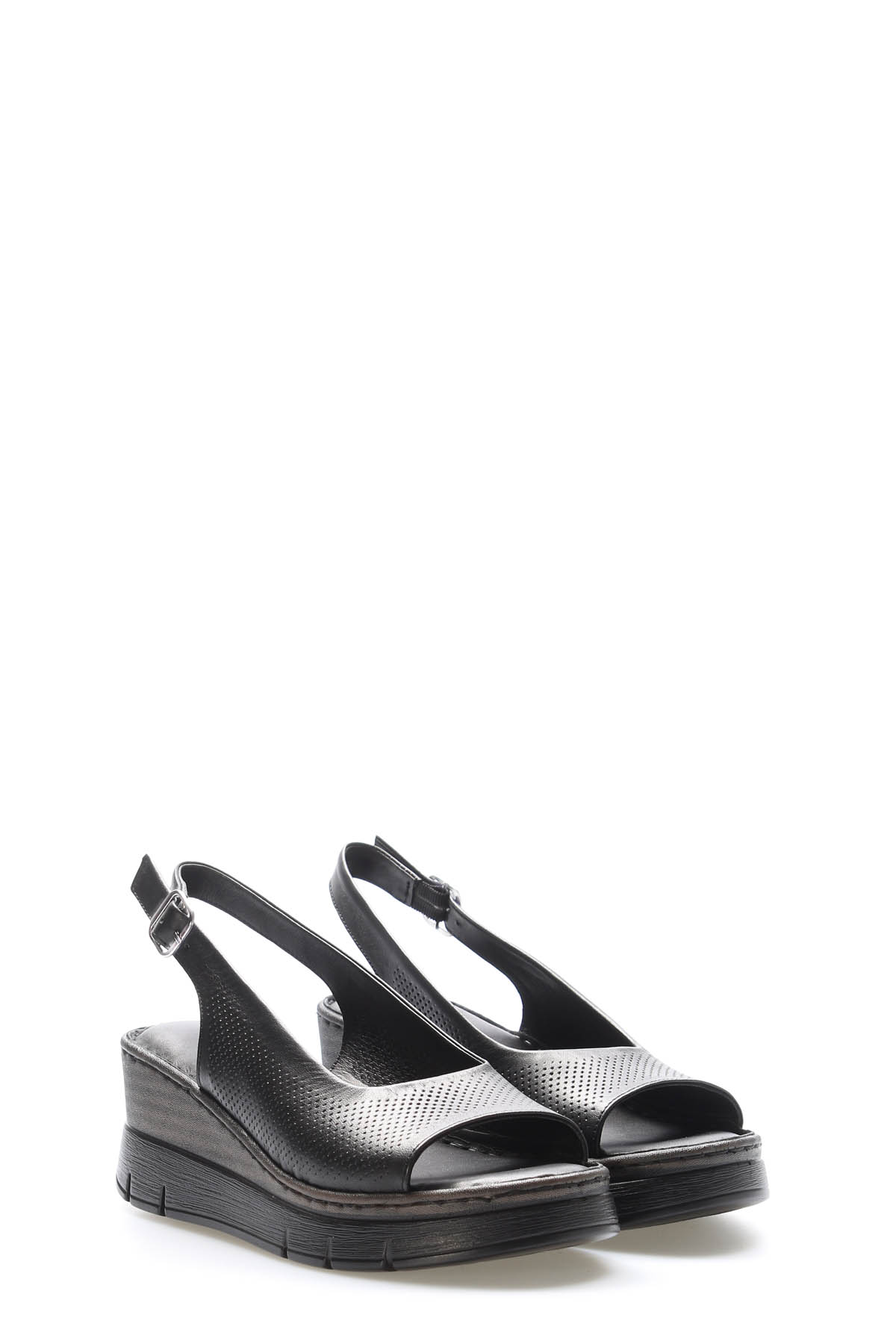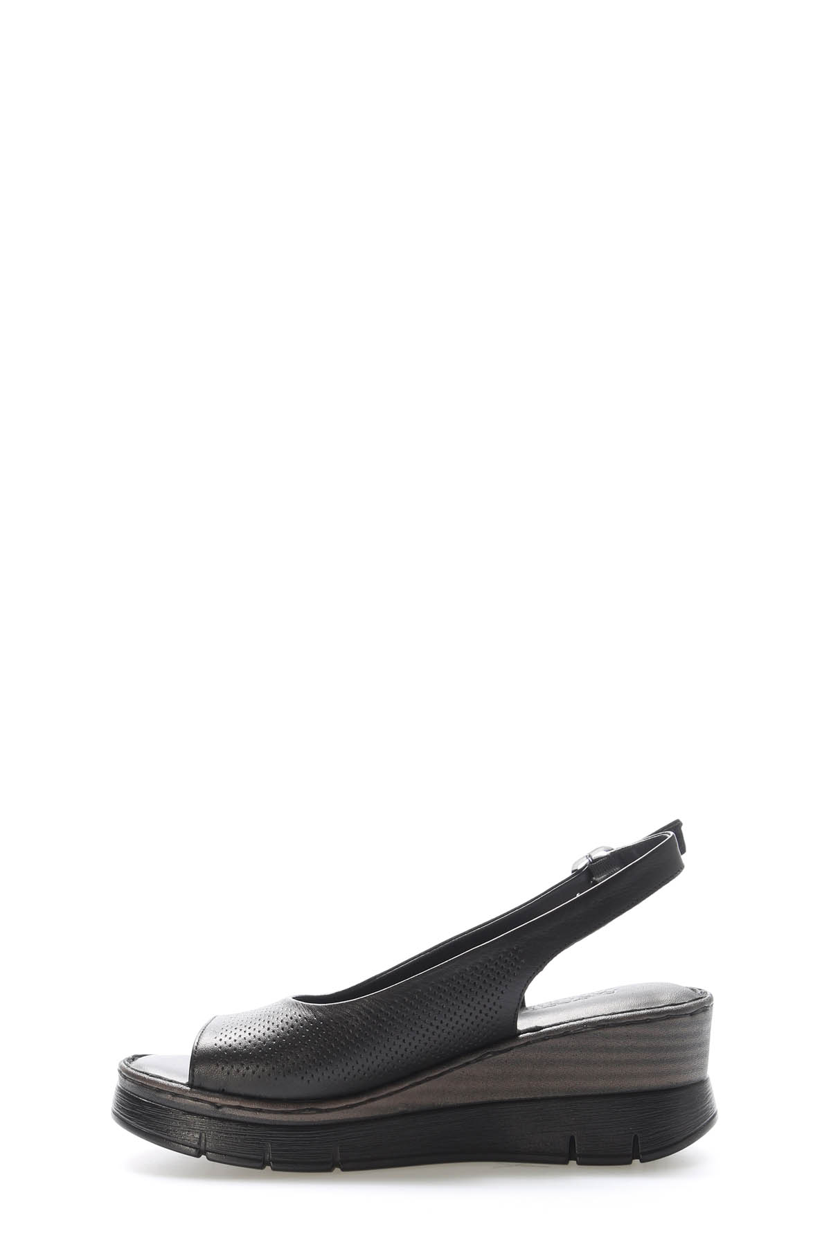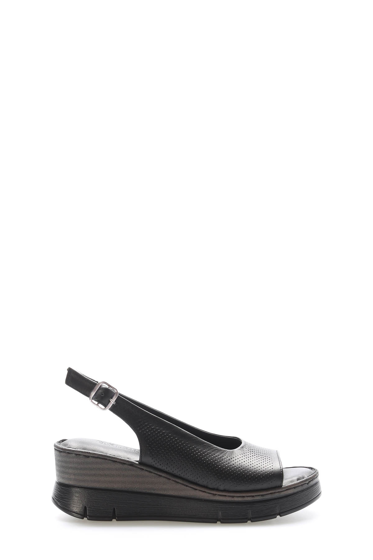 Tugerdi Siyah Hakiki Deri Yandan Kemerli Hafif Taban Klasik Kadın Sandalet TG096212611536