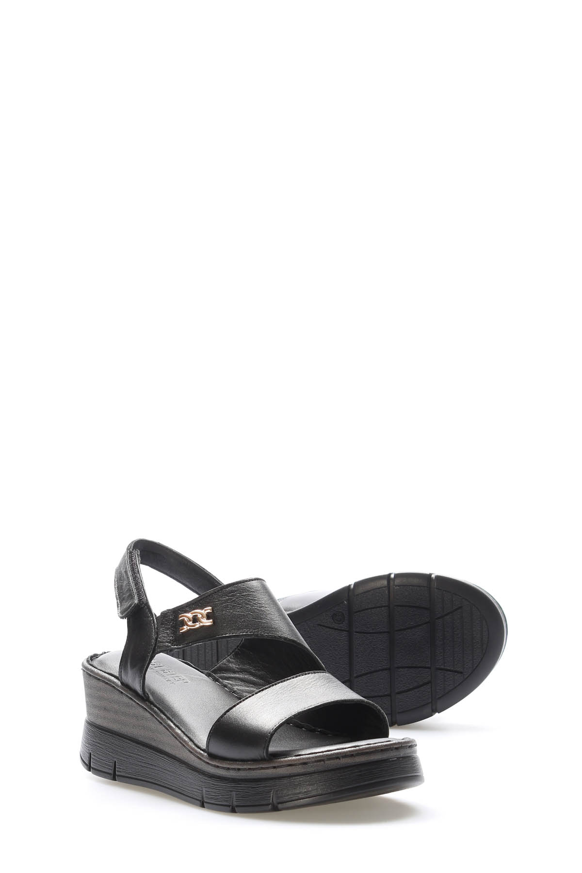 • Tugerdi Siyah Hakiki Deri Hafif Taban Kaliteli Klasik Kadın Sandalet TG096212611537