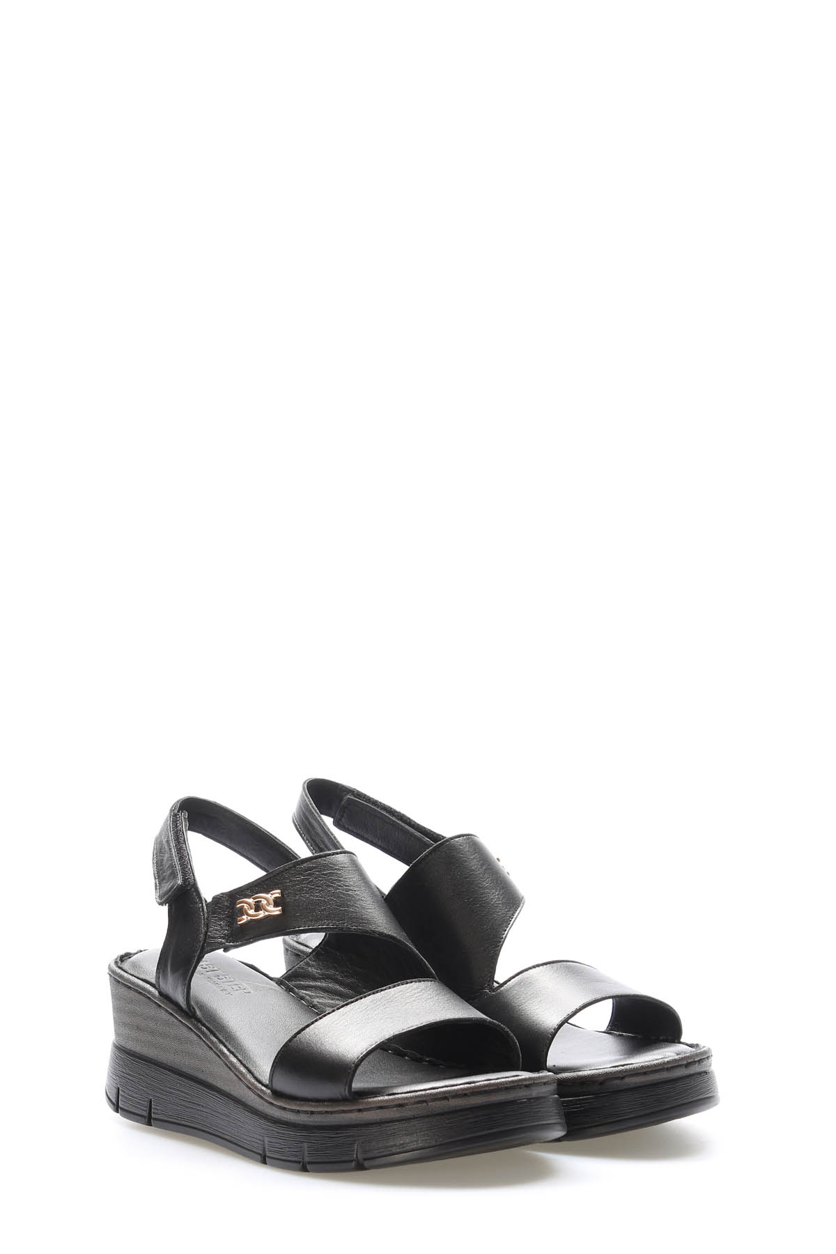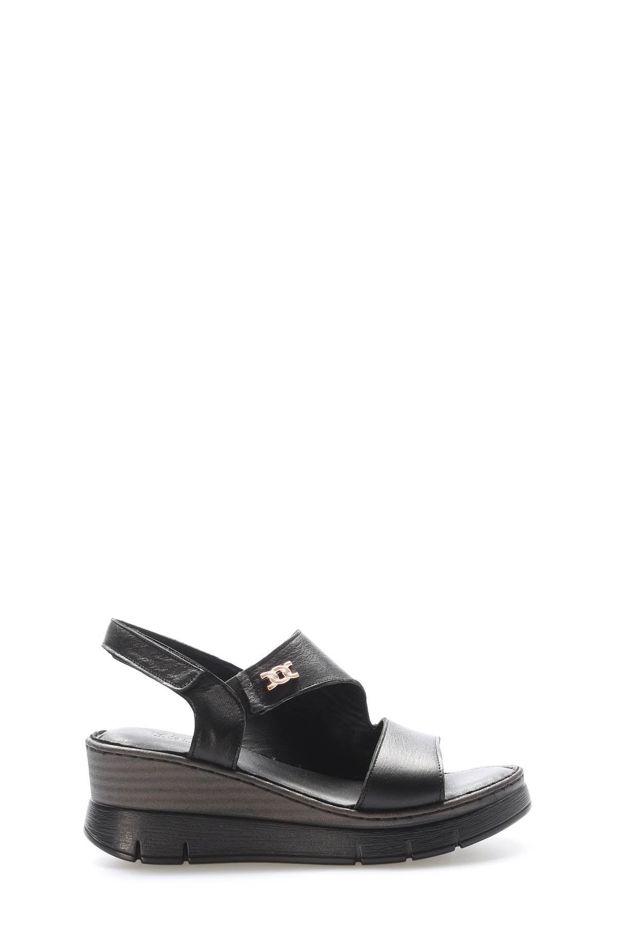 Tugerdi Siyah Hakiki Deri Hafif Taban Kaliteli Klasik Kadın Sandalet TG096212611537