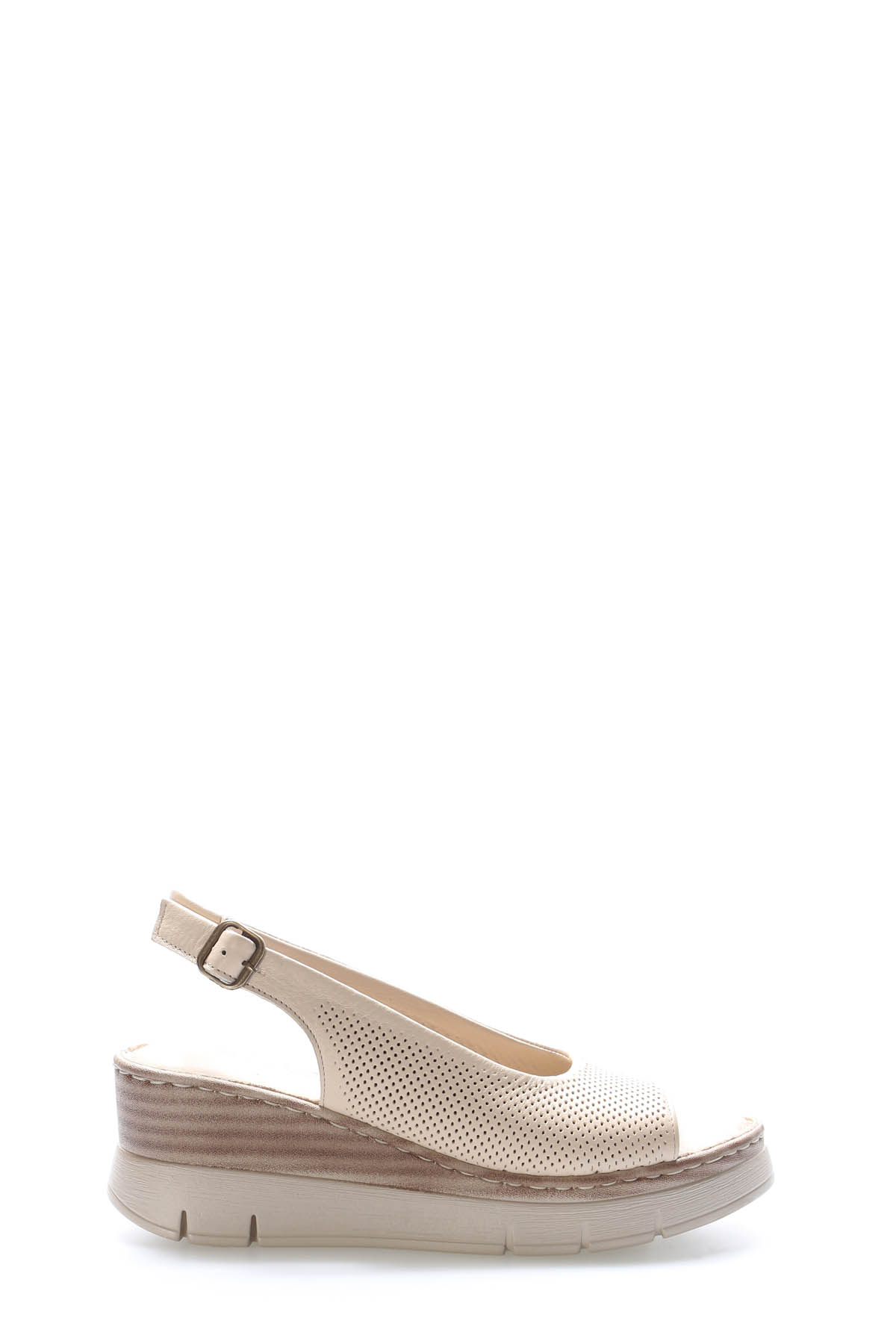 Tugerdi Bej Hakiki Deri Hafif Taban Yandan Kemerli Klasik Kadın Sandalet TG096212611536