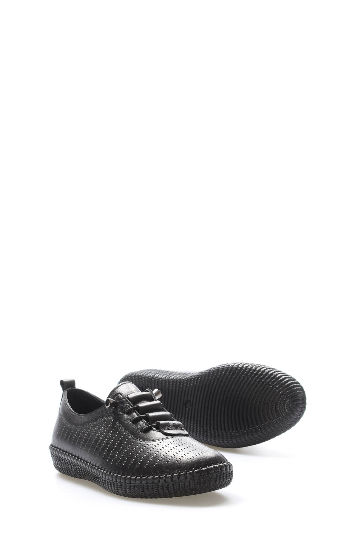 • Tugerdi Siyah Hakiki Deri Siyah Hafif Taban Bağcıklı Kadın Casual Ayakkabı TG091642615438