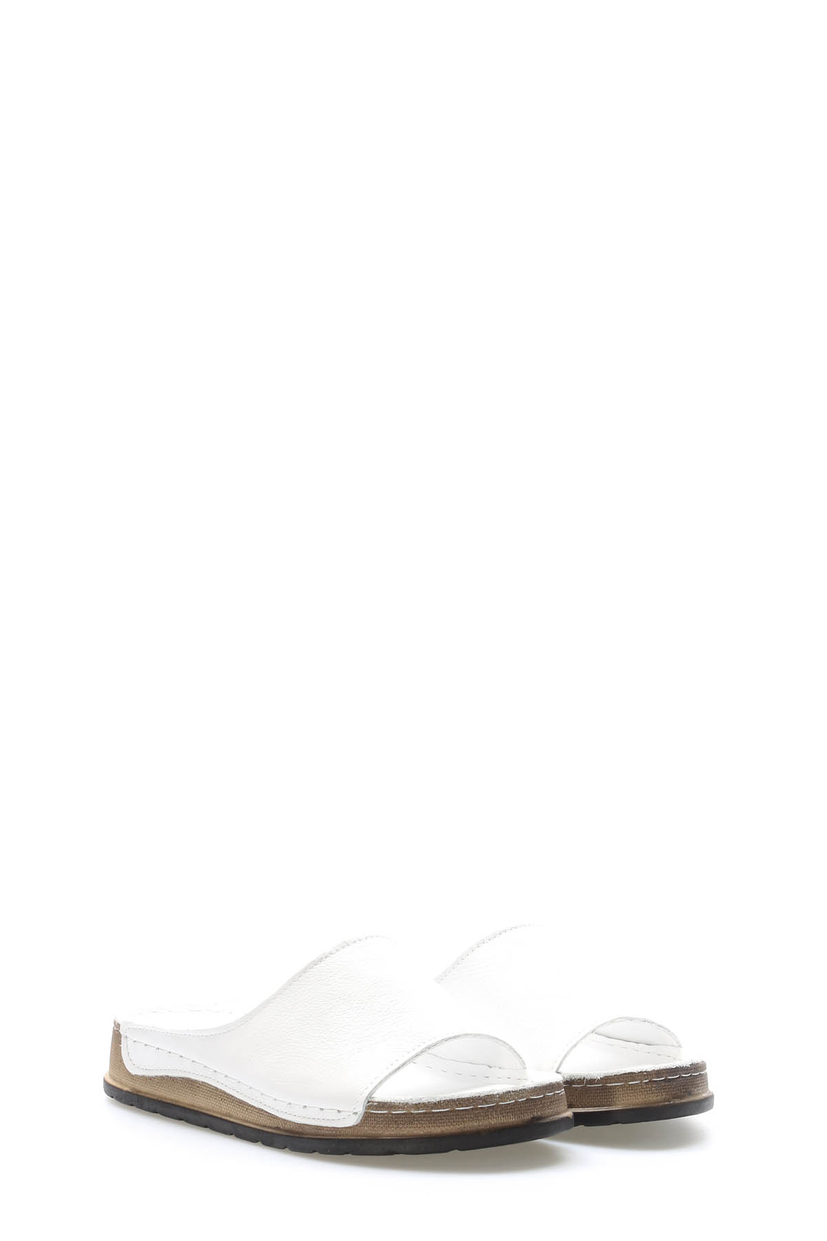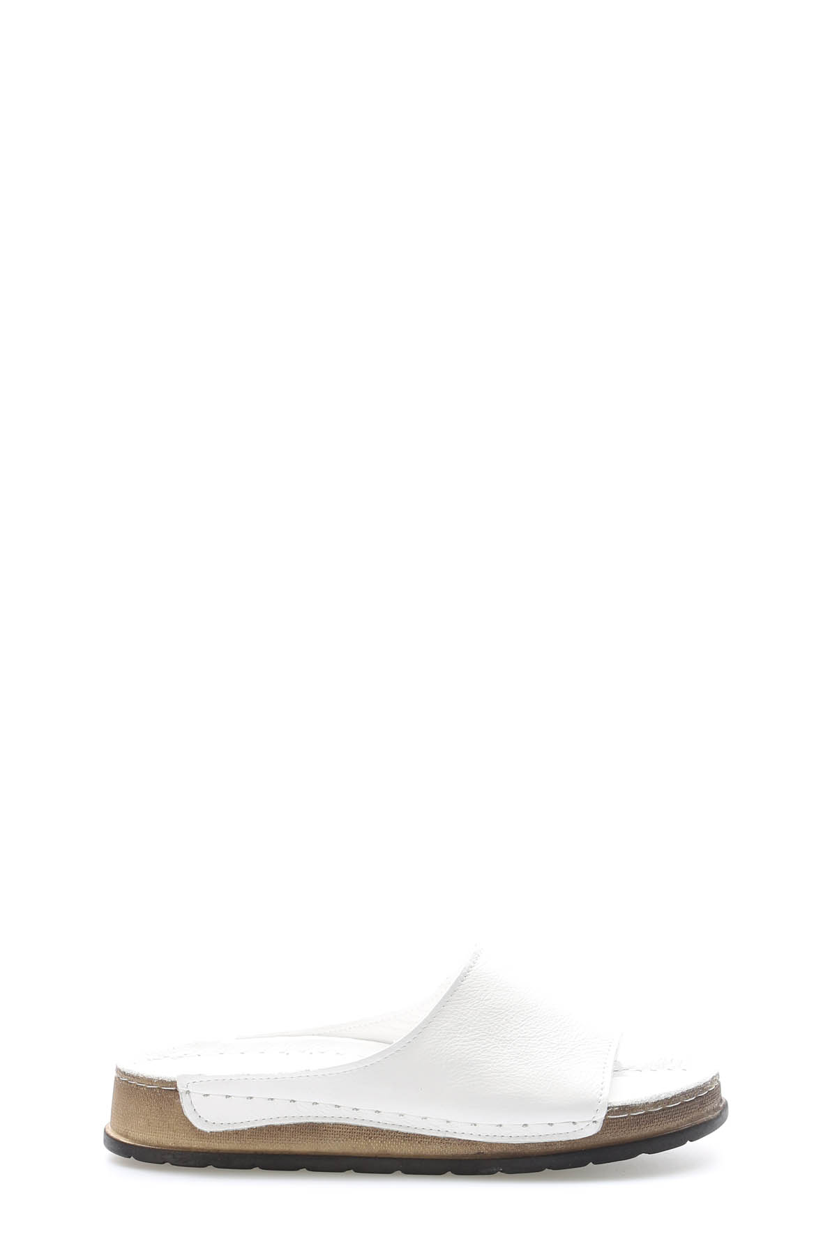 Tugerdi Beyaz Hakiki Deri Hafif Taban Kaliteli Kadın Terlik TG09972261719