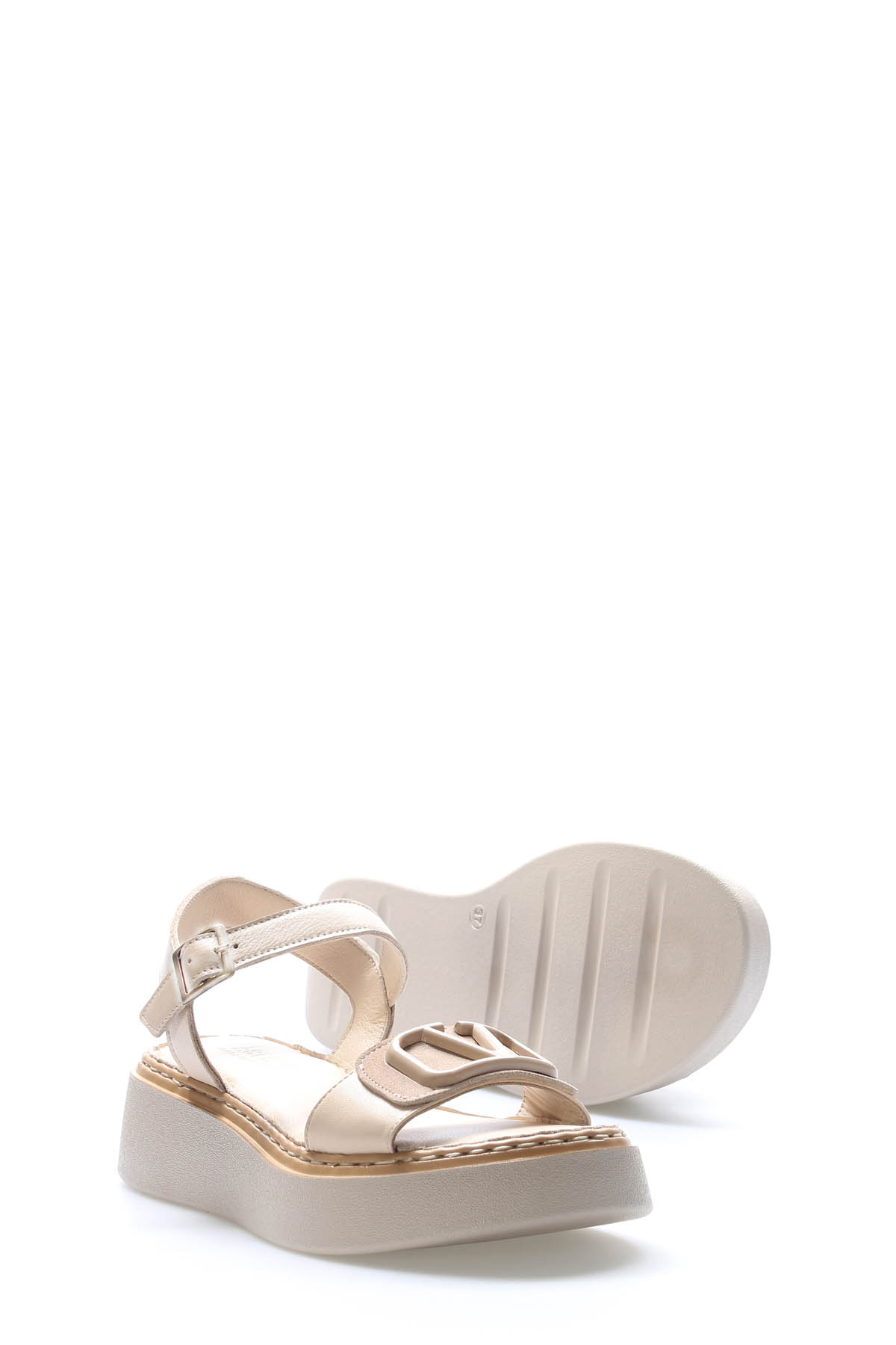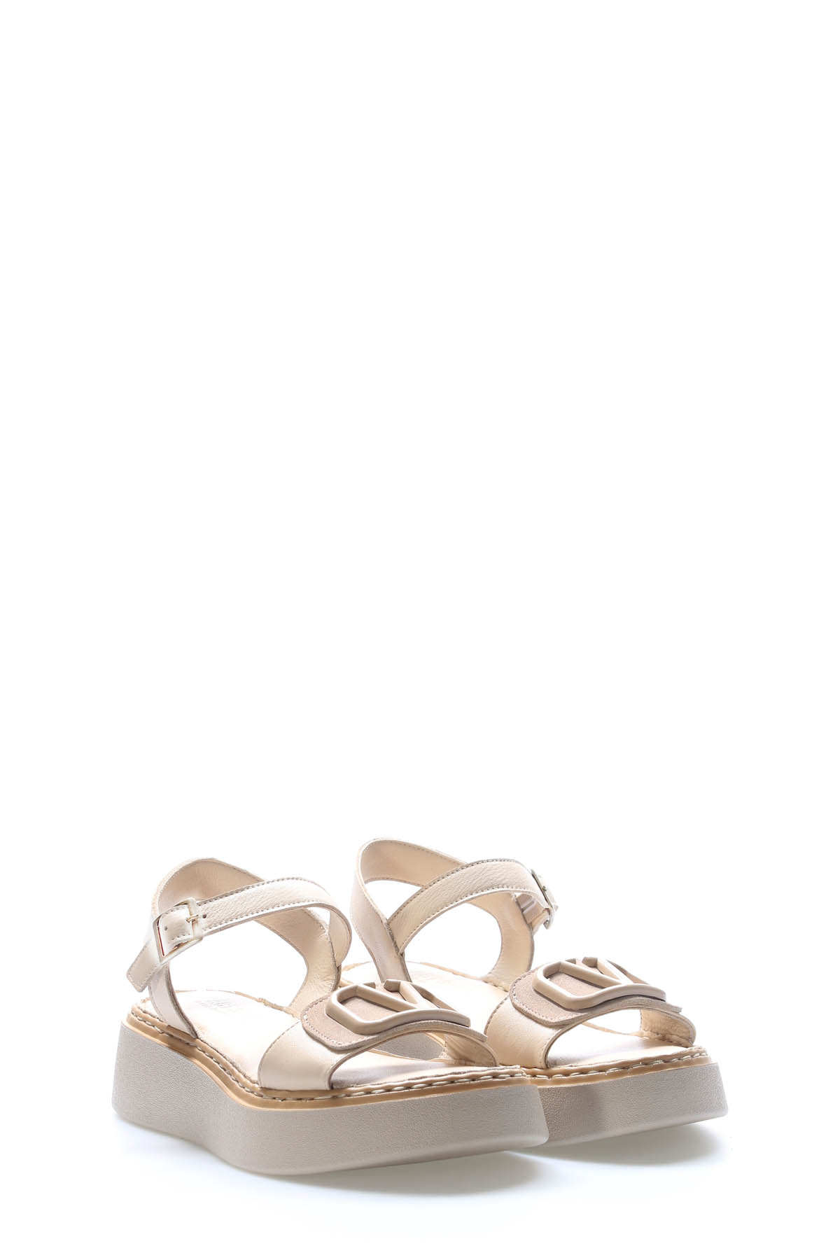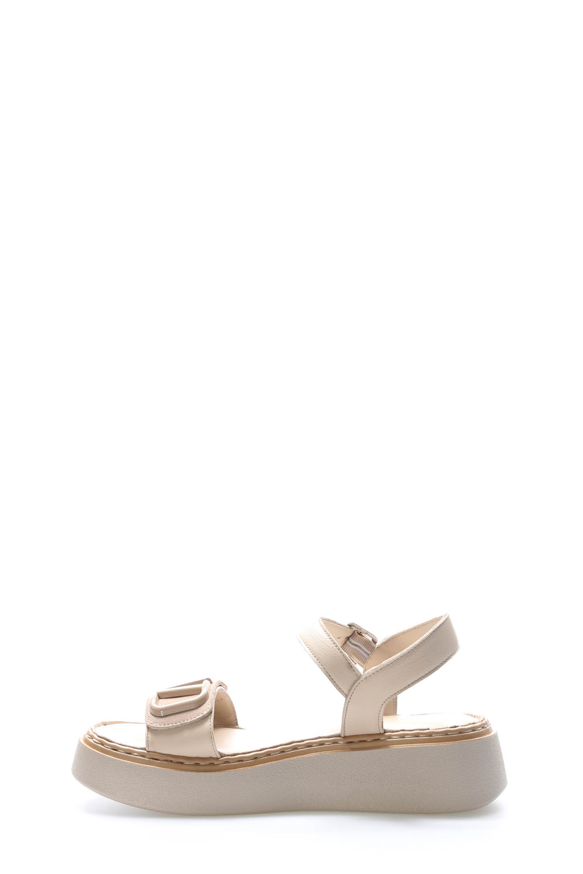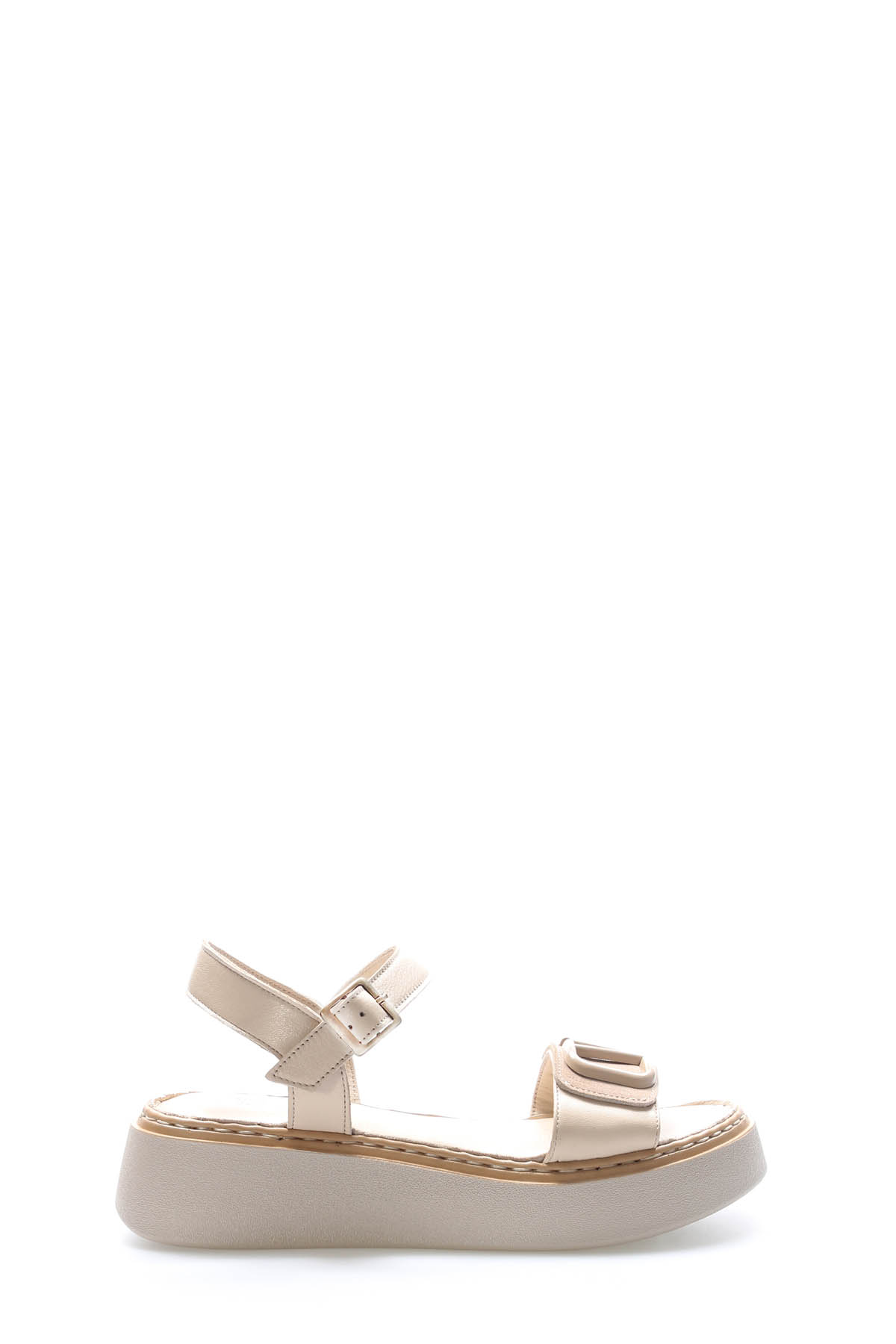 Tugerdi Bej Hakiki Deri Hafif Taban Yandan Kemerli Tokalı Klasik Kadın Sandalet TG096212611559