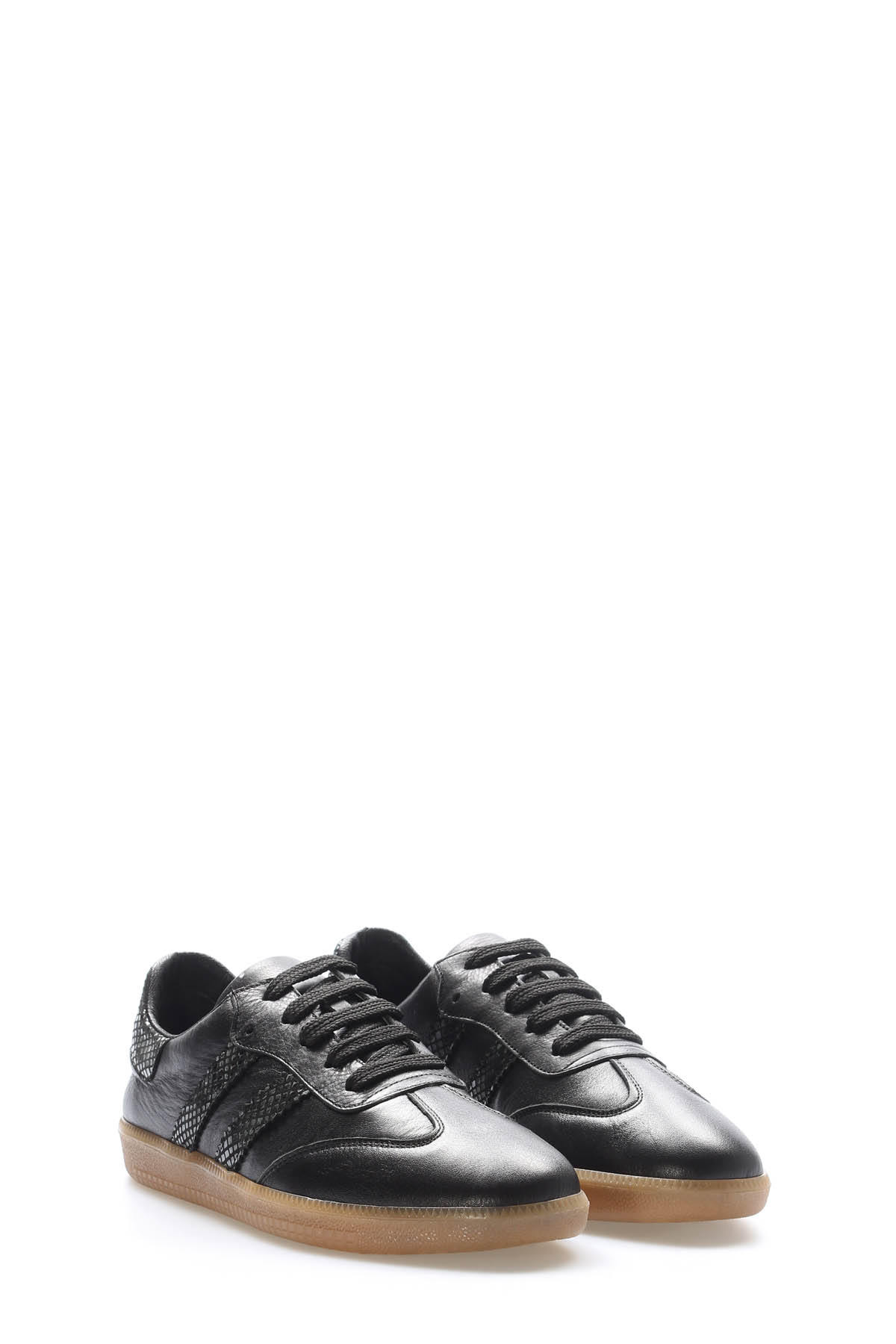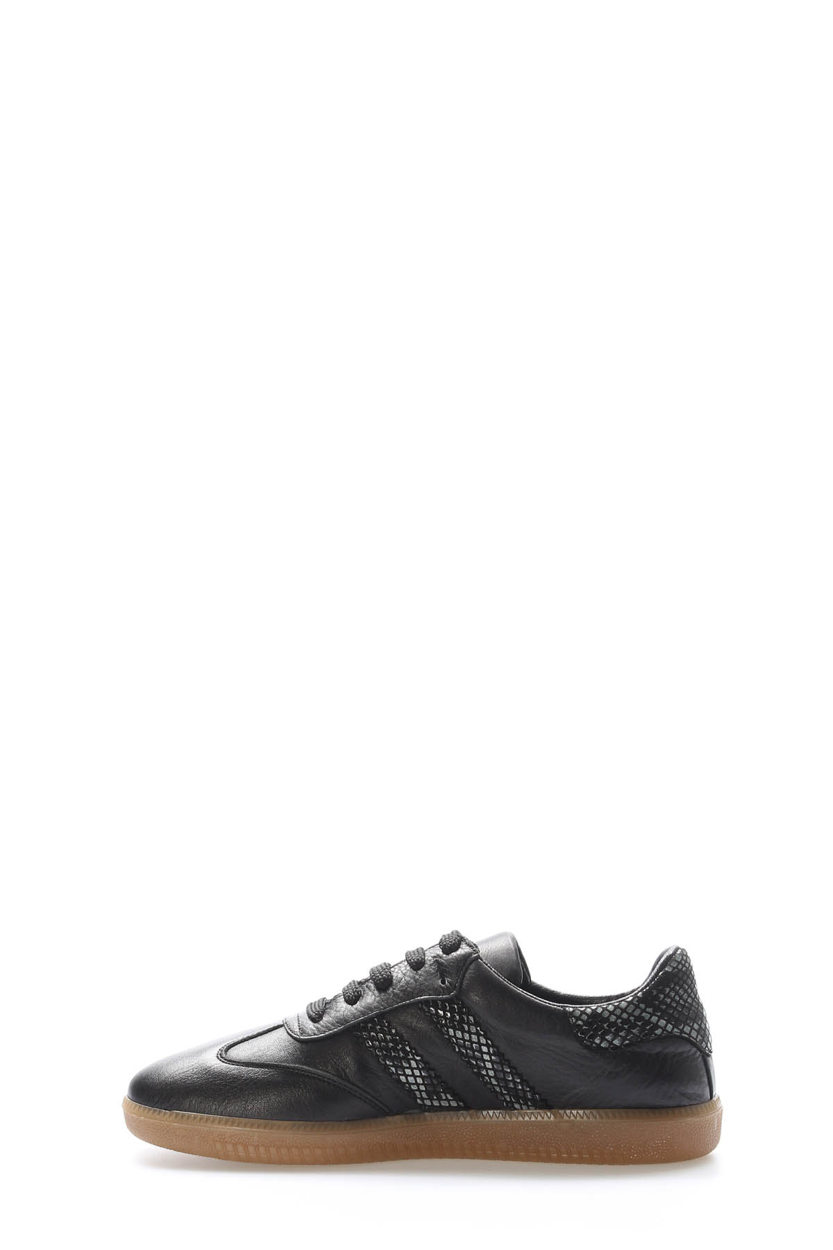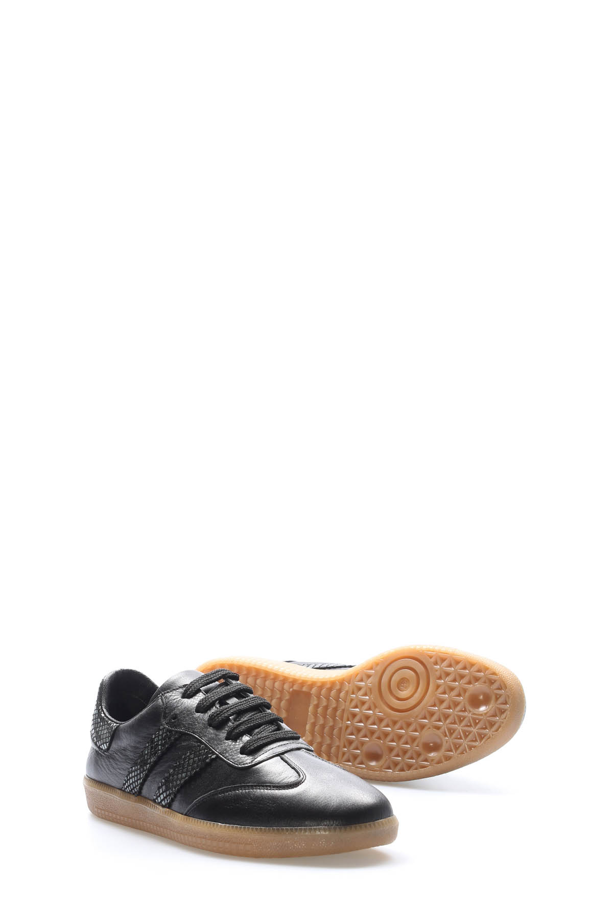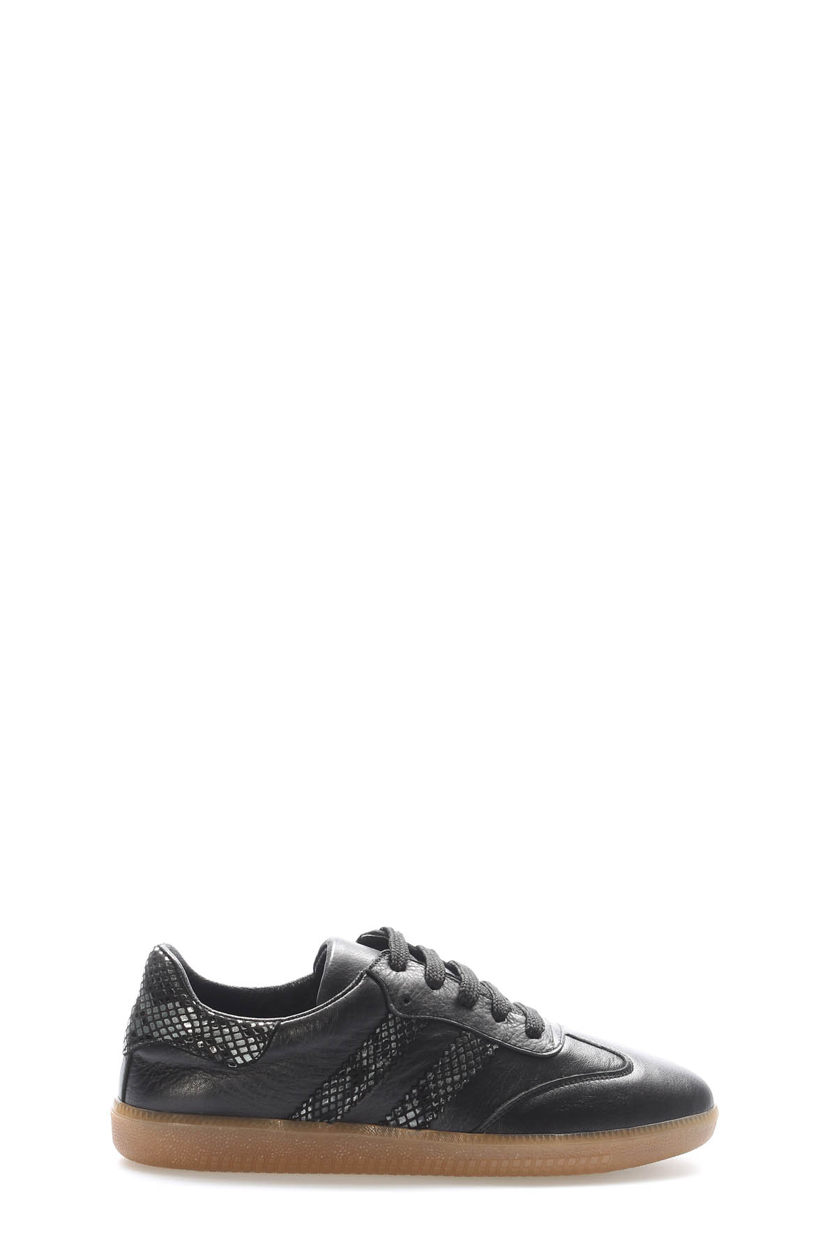 Tugerdi Siyah Platin Hakiki Deri Bağcıklı Hafif Taban Kadın Casual Ayakkabı TG091822612734